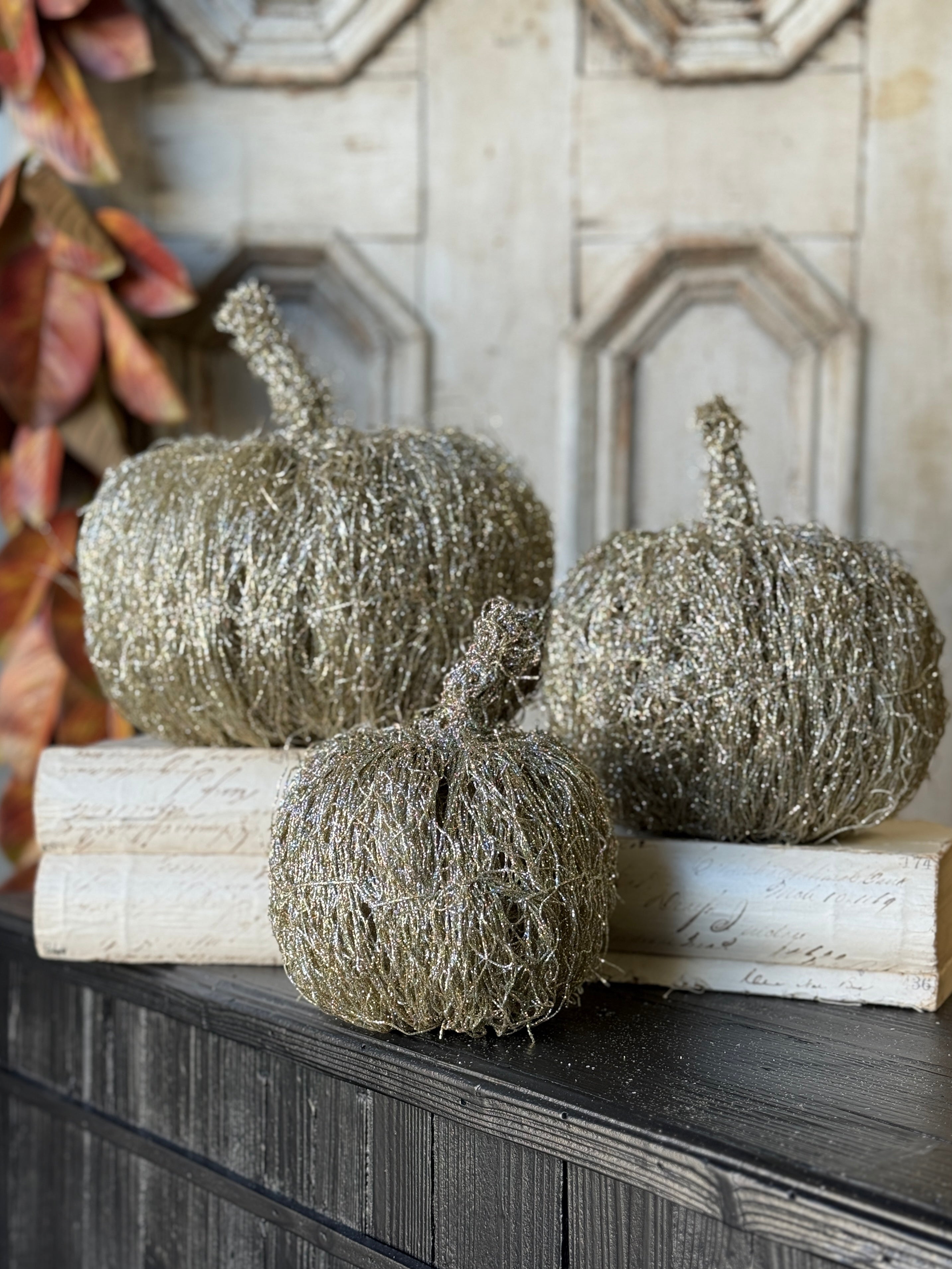 The Sparkling Spellbound Pumpkins add a sense of razzle-dazzle to your displays with their glittering finish and lovely shape. Available in three sizes, each sold separately.
