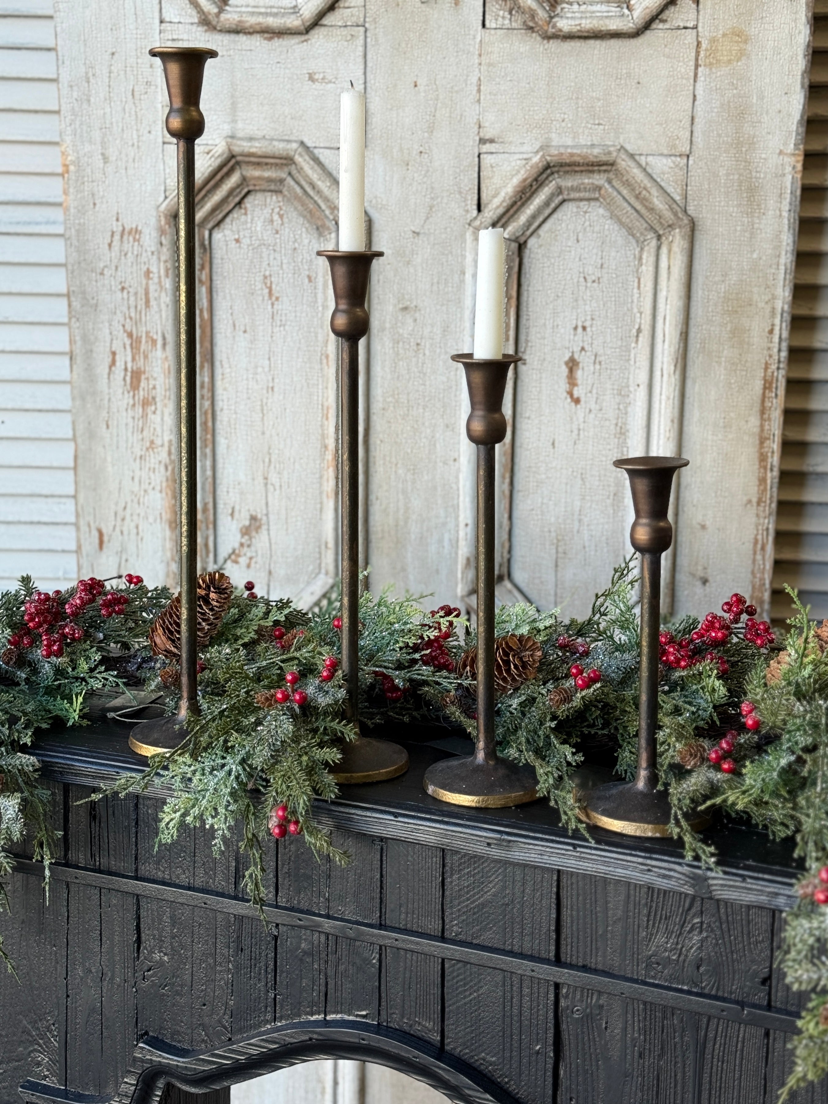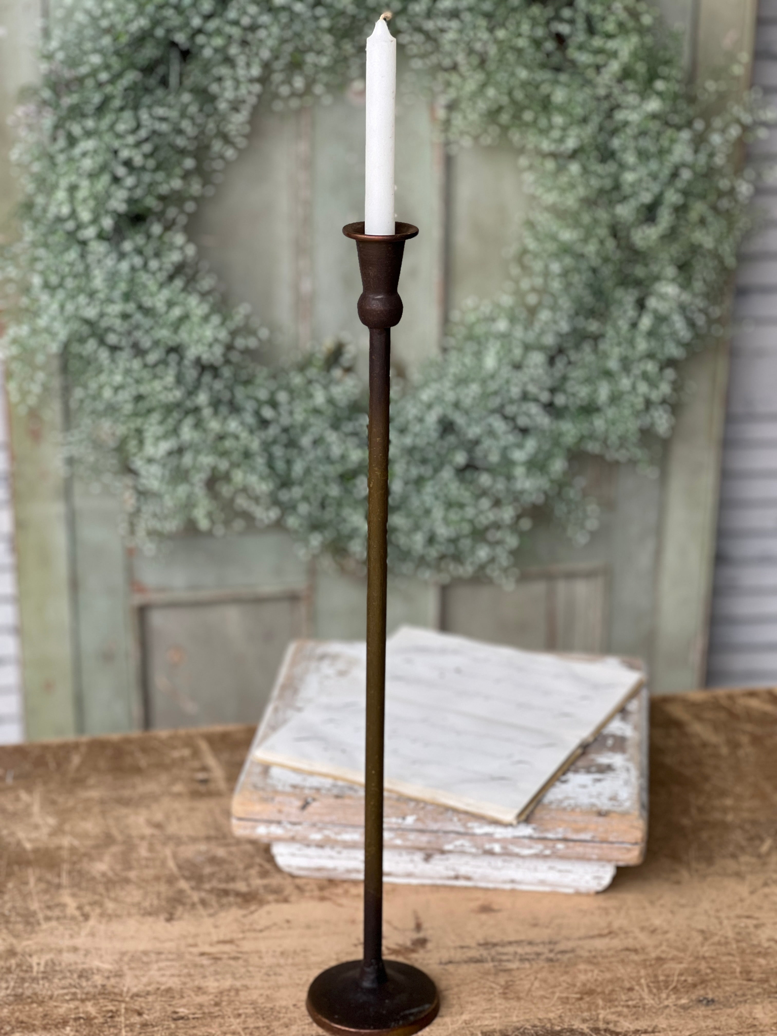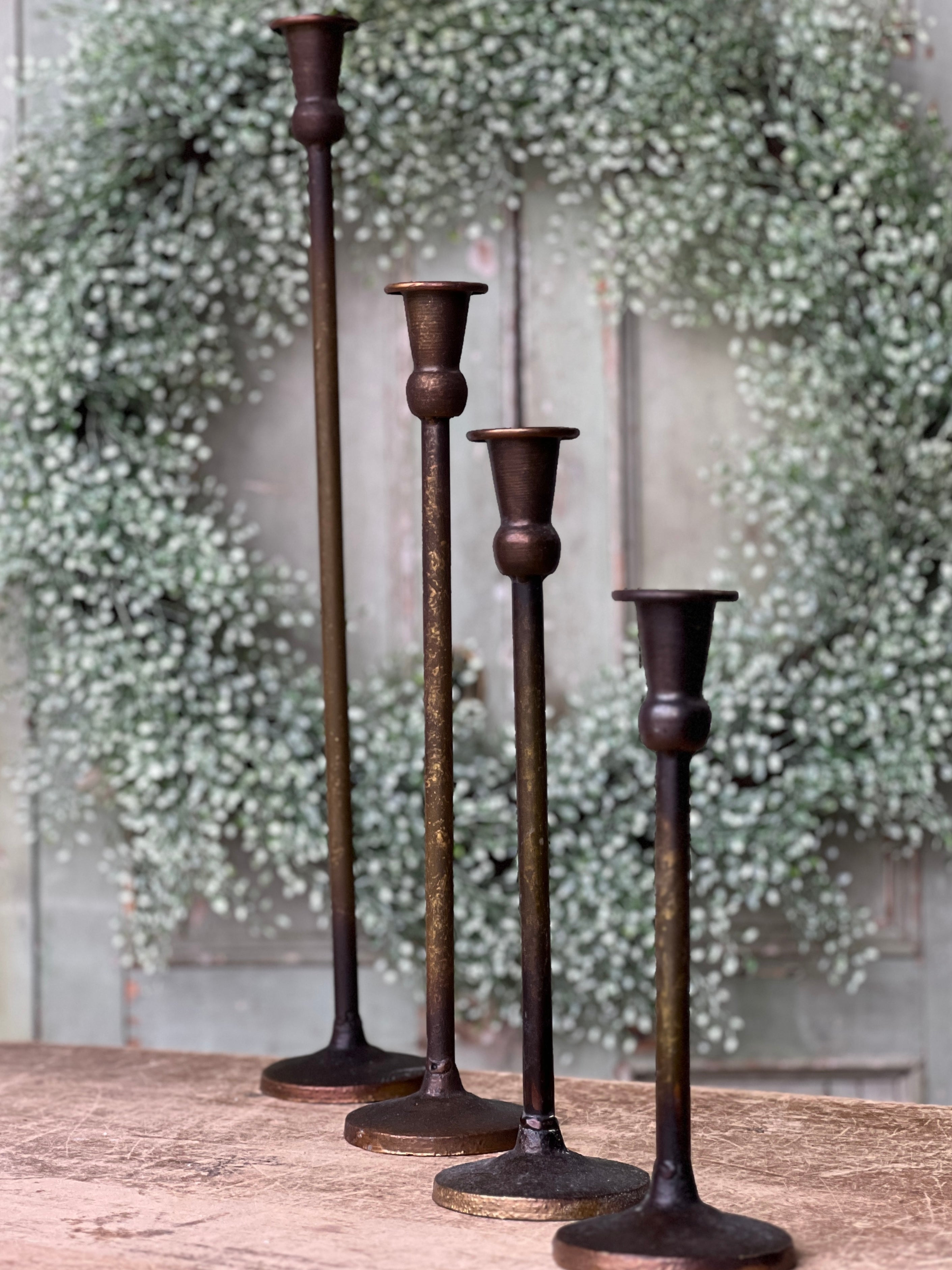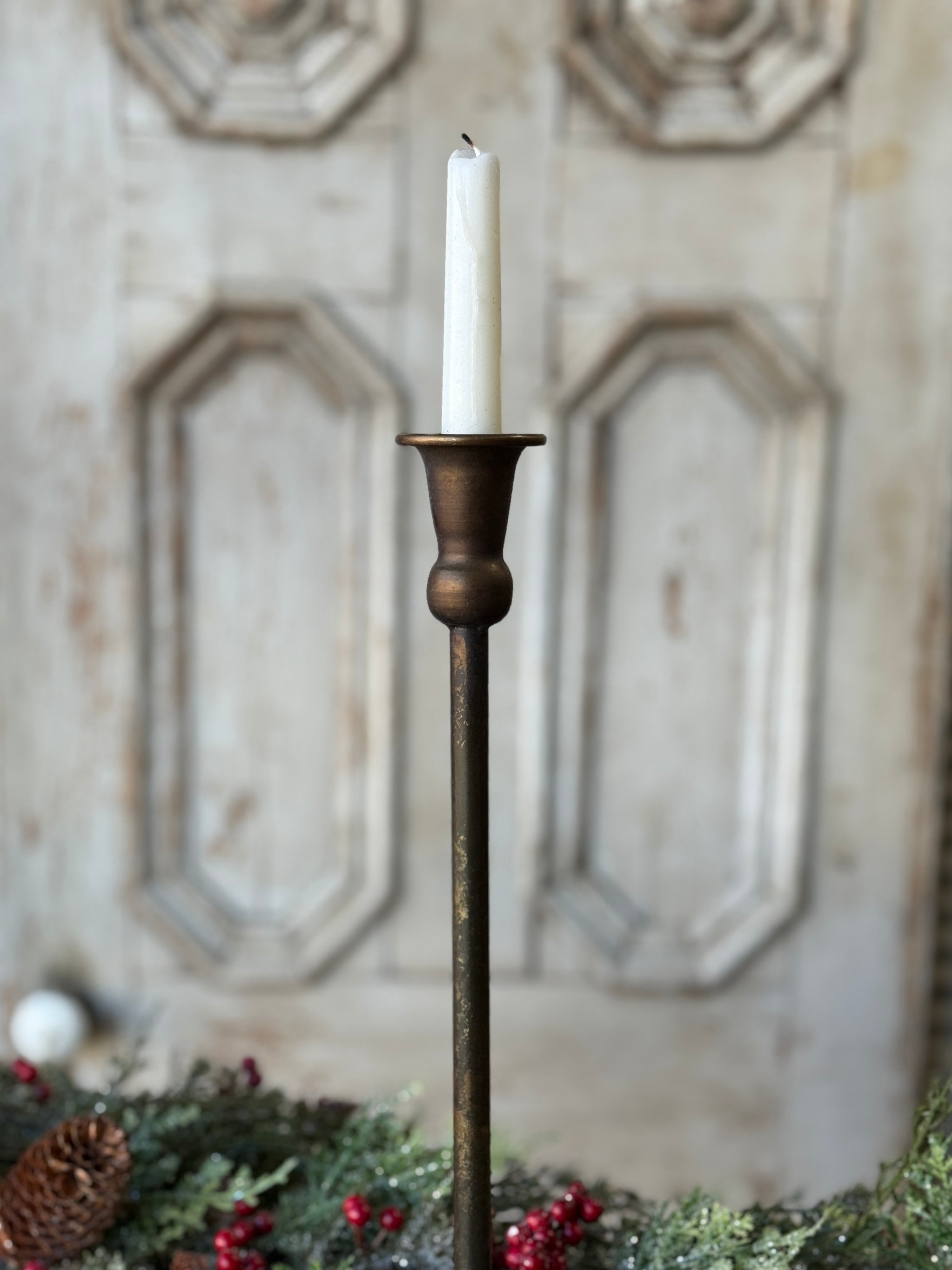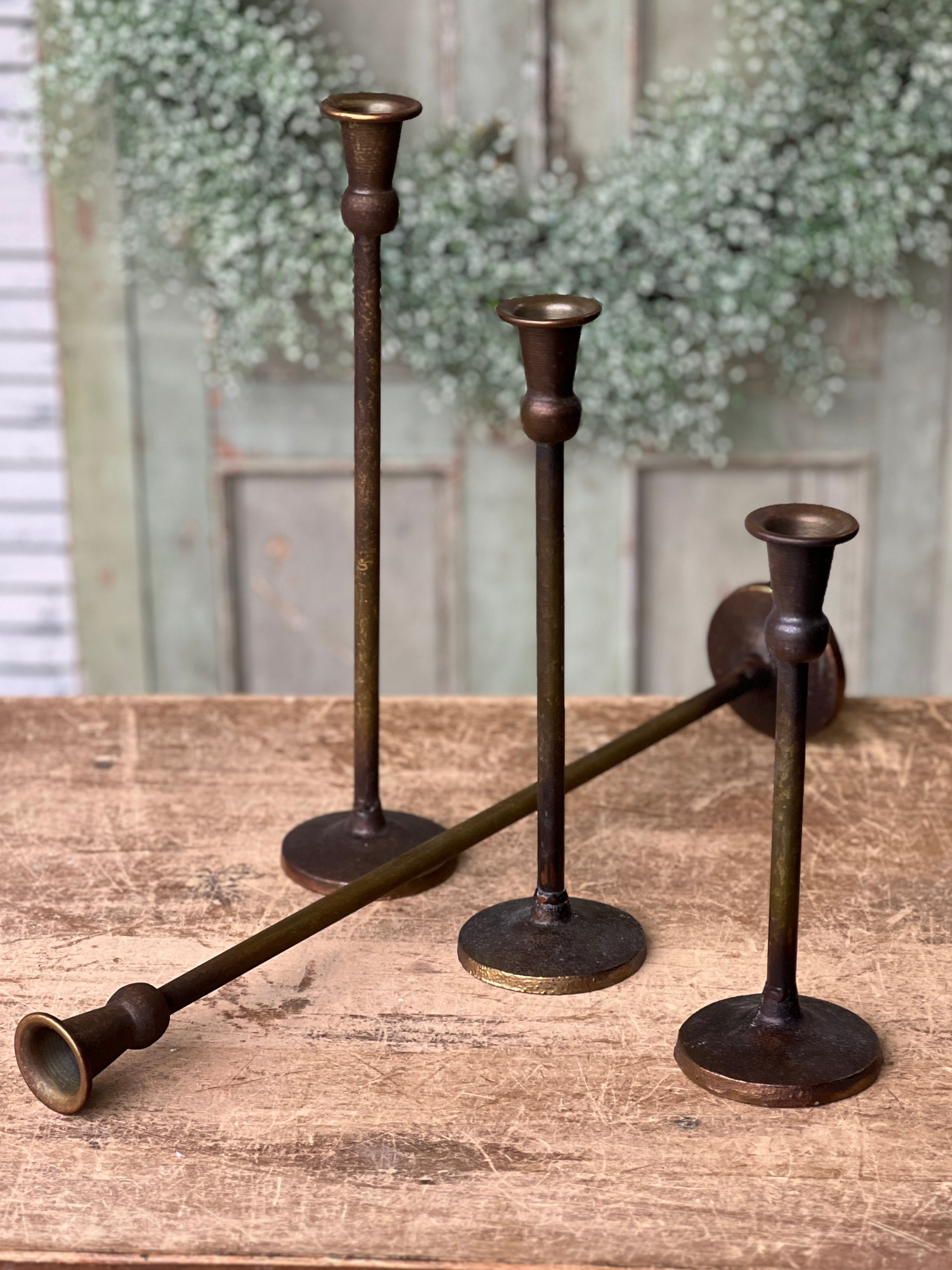 Slender taper holders in a lovely antique brass finish add an elegant feel to any space or season! Available in four sizes, each sold separately.