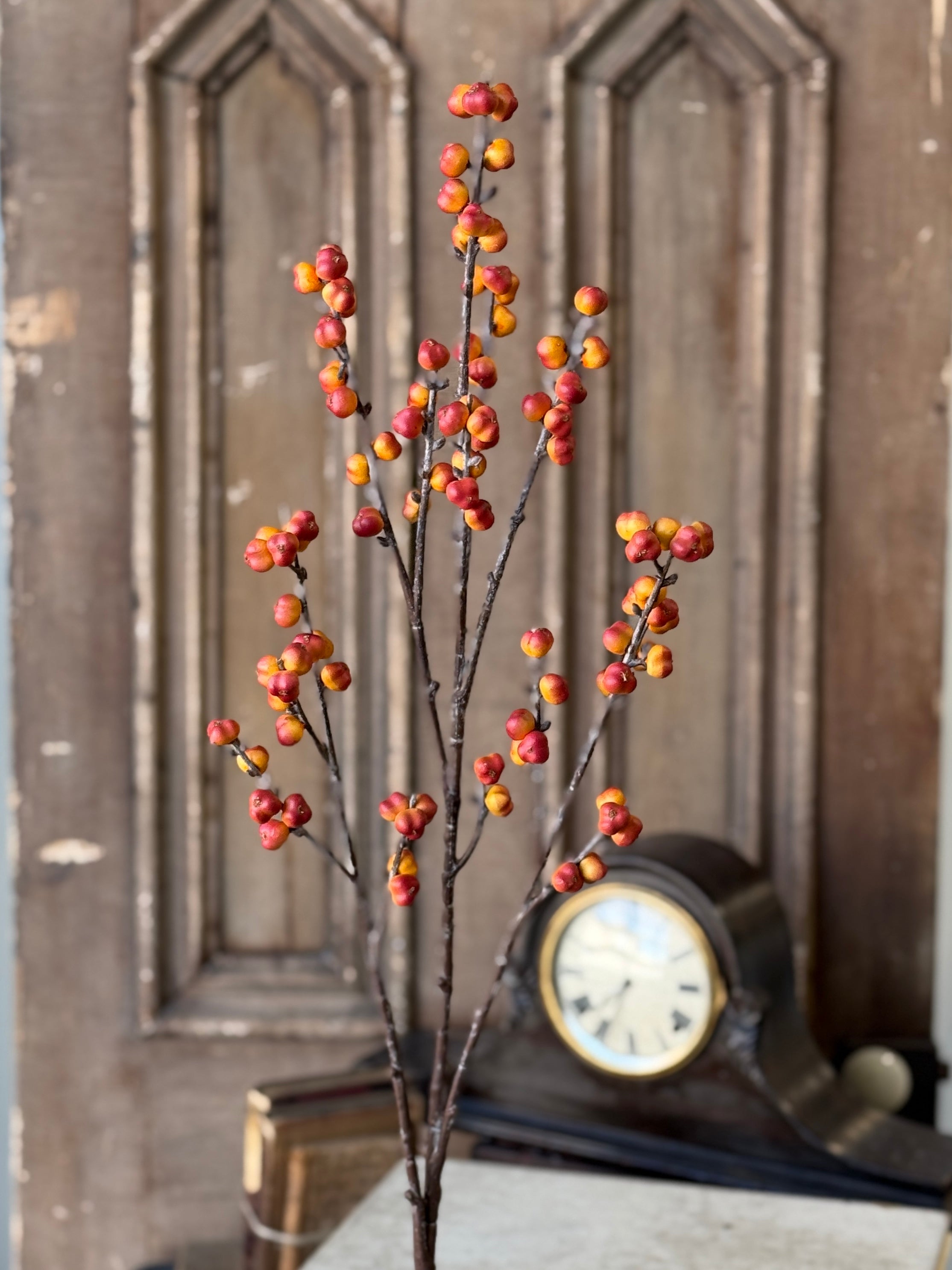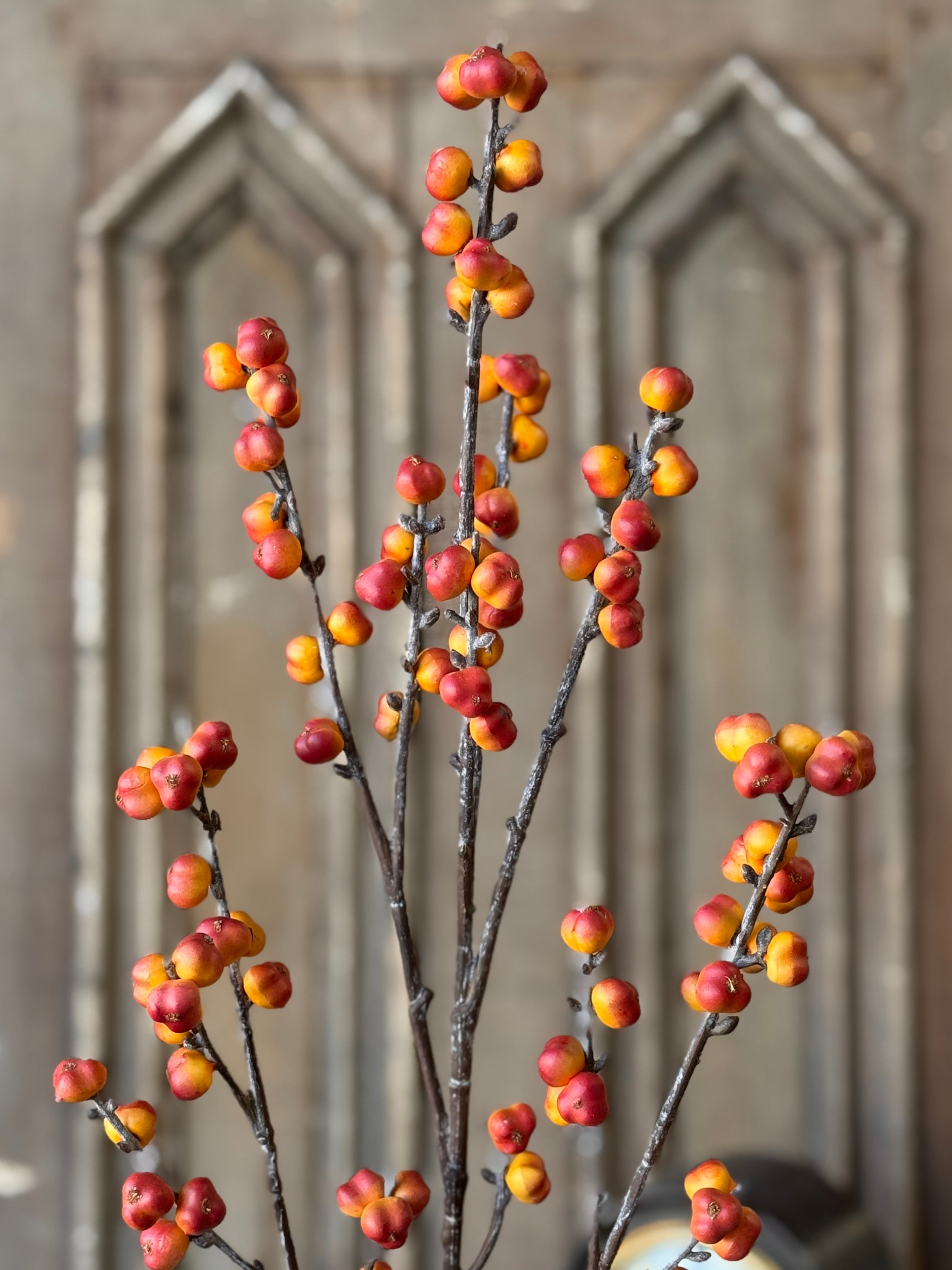 Forked branches are dotted with eye catching berries in tonal shades. A great way to add a dash of color and versatility to your line. Available in two colors, each sold separately.
