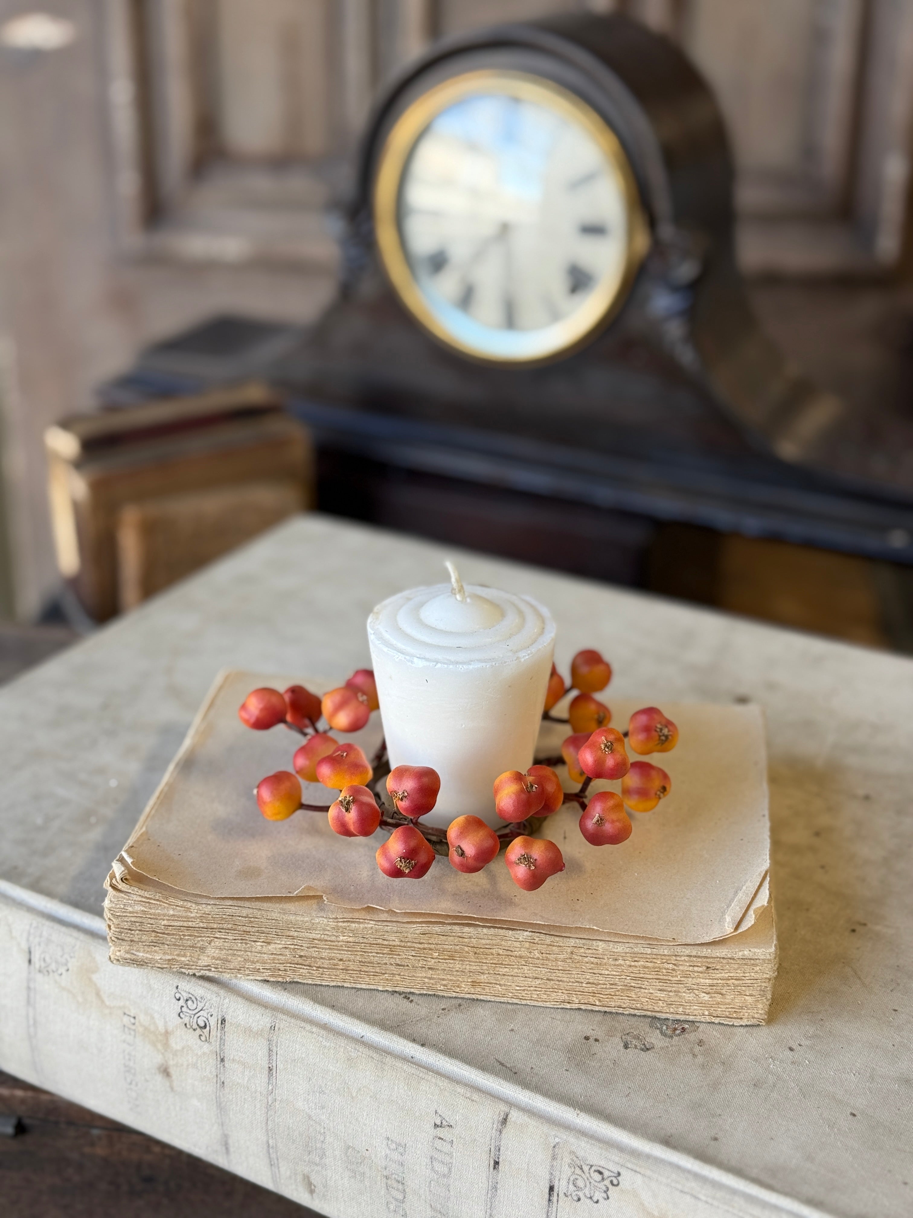 Cool toned eucalyptus foliage with showy orange berries and a splash of small orbs makes a beautiful autumnal statement that transitions easily from season to season.