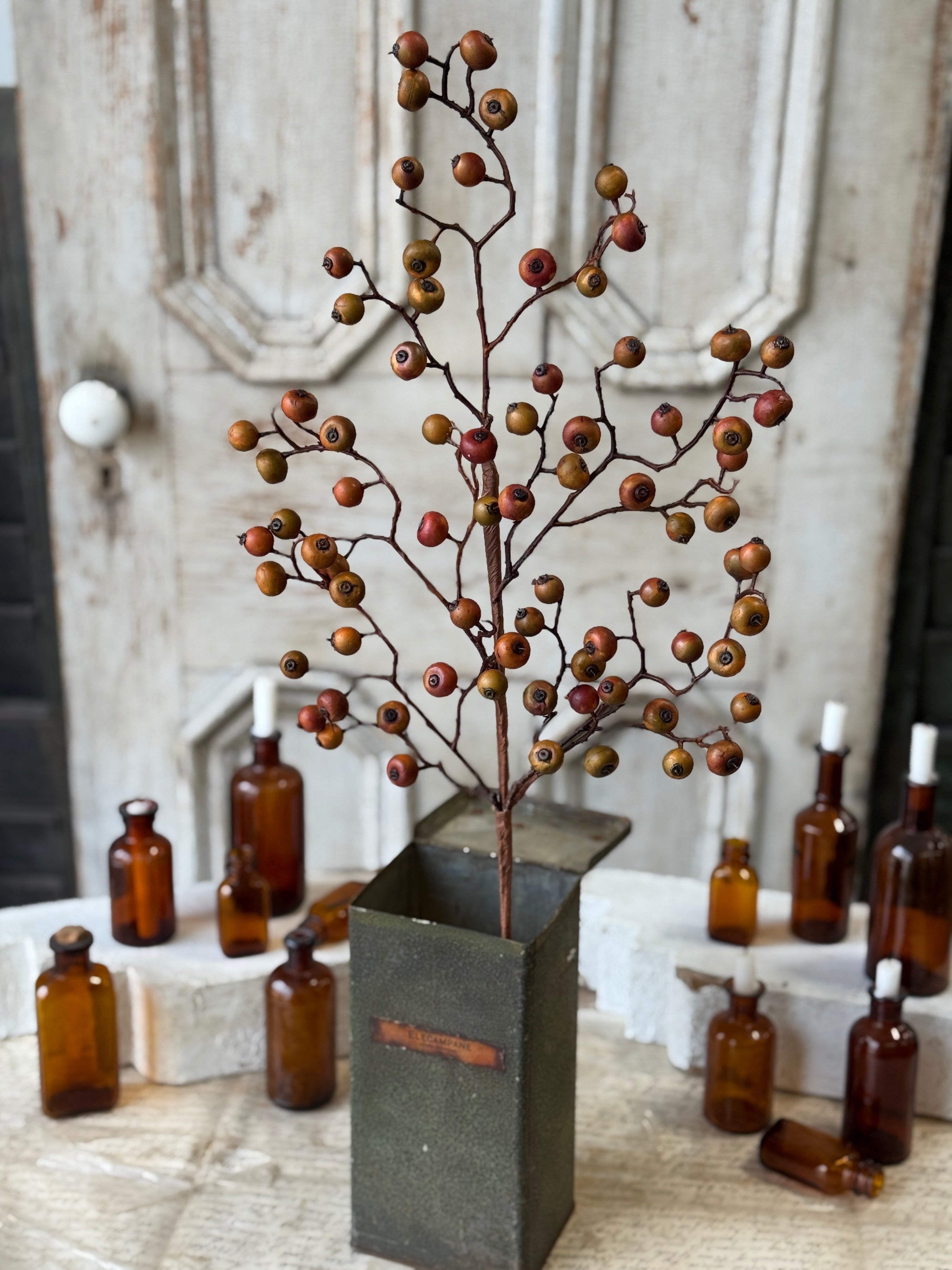 Colorful berries are peppered along branching stems accompanied by textured paper leaves in shifting tones. Available in two colors, each sold separately.