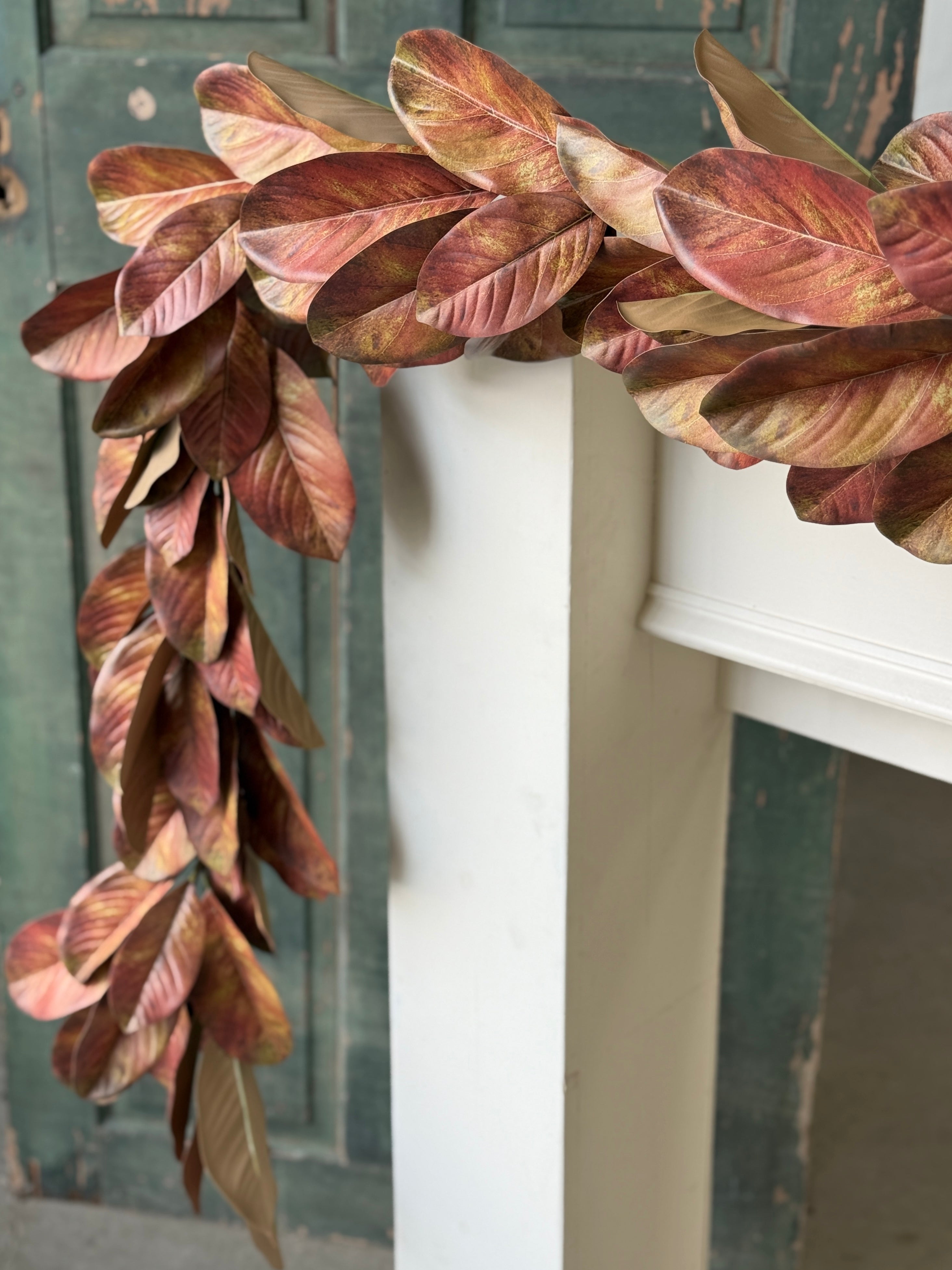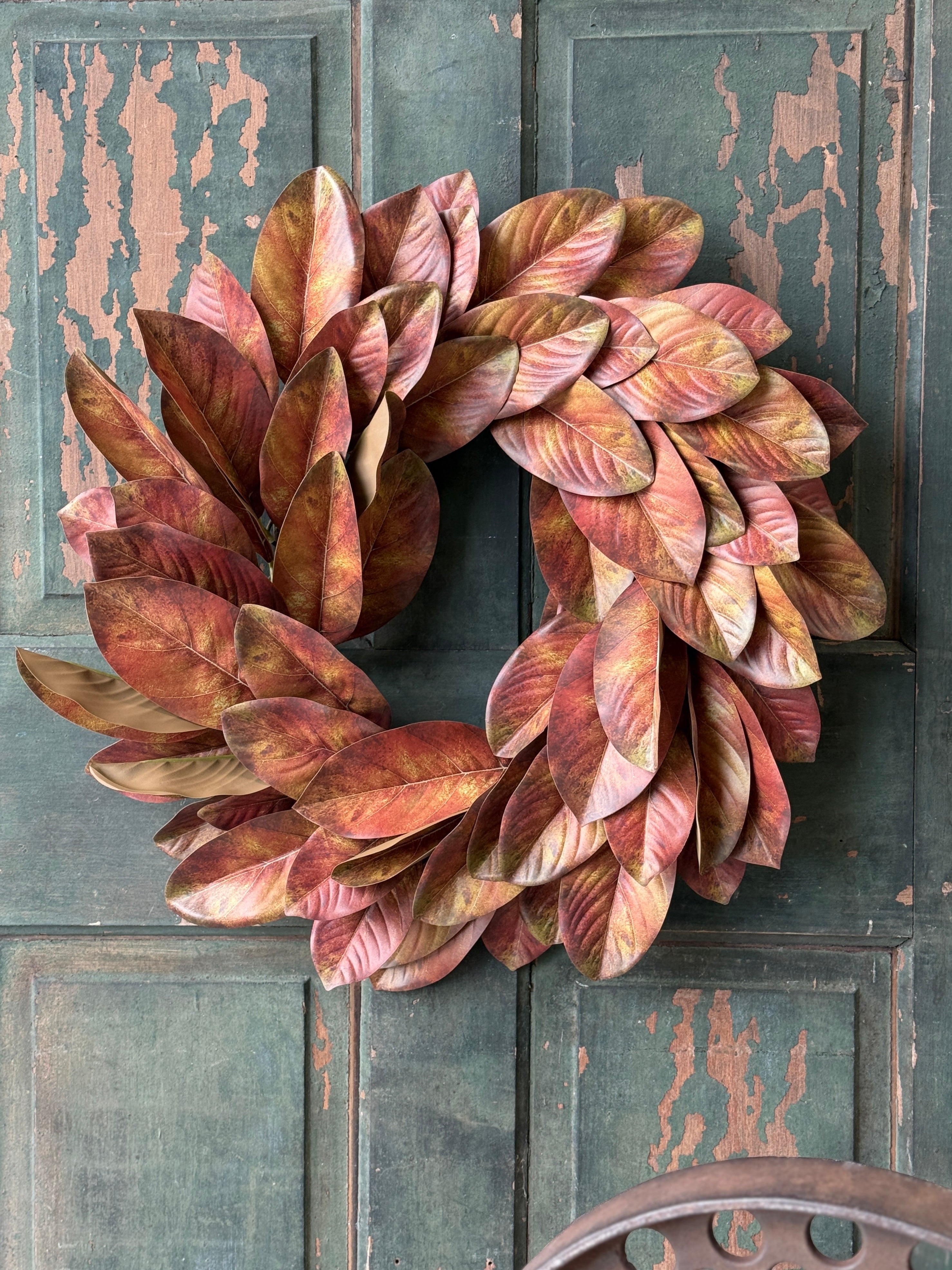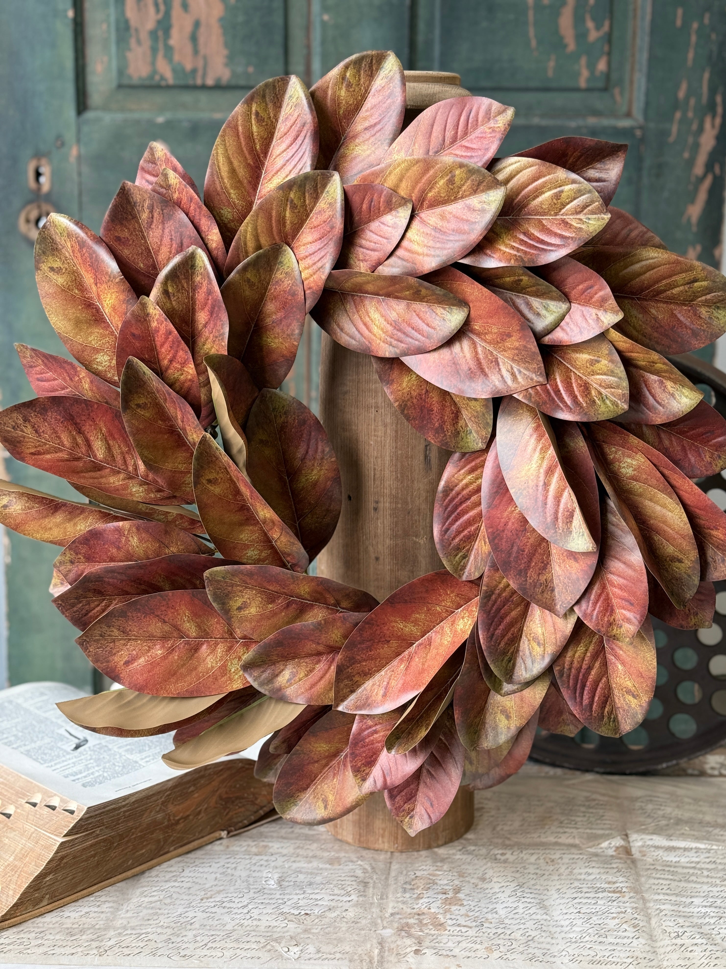 The Rustling Magnolia collection adds an elegant dash of color to displays with its showy, colorful magnolia leaves in striking tones.