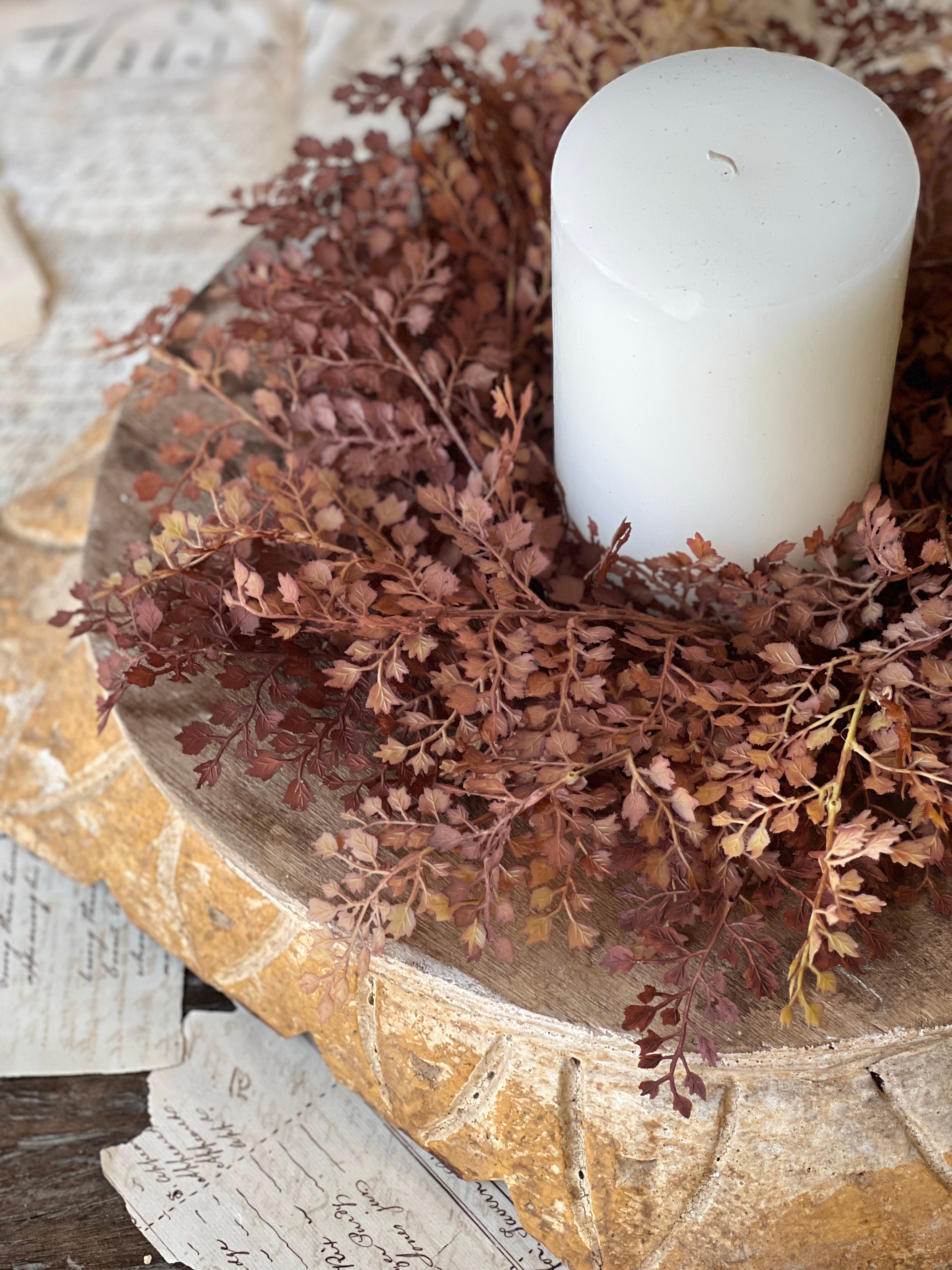 Barren branches coil around one another an intriguing thicket type style to form a rustic and natural looking candle ring. Faux bark accents make this collection even more intriguing.