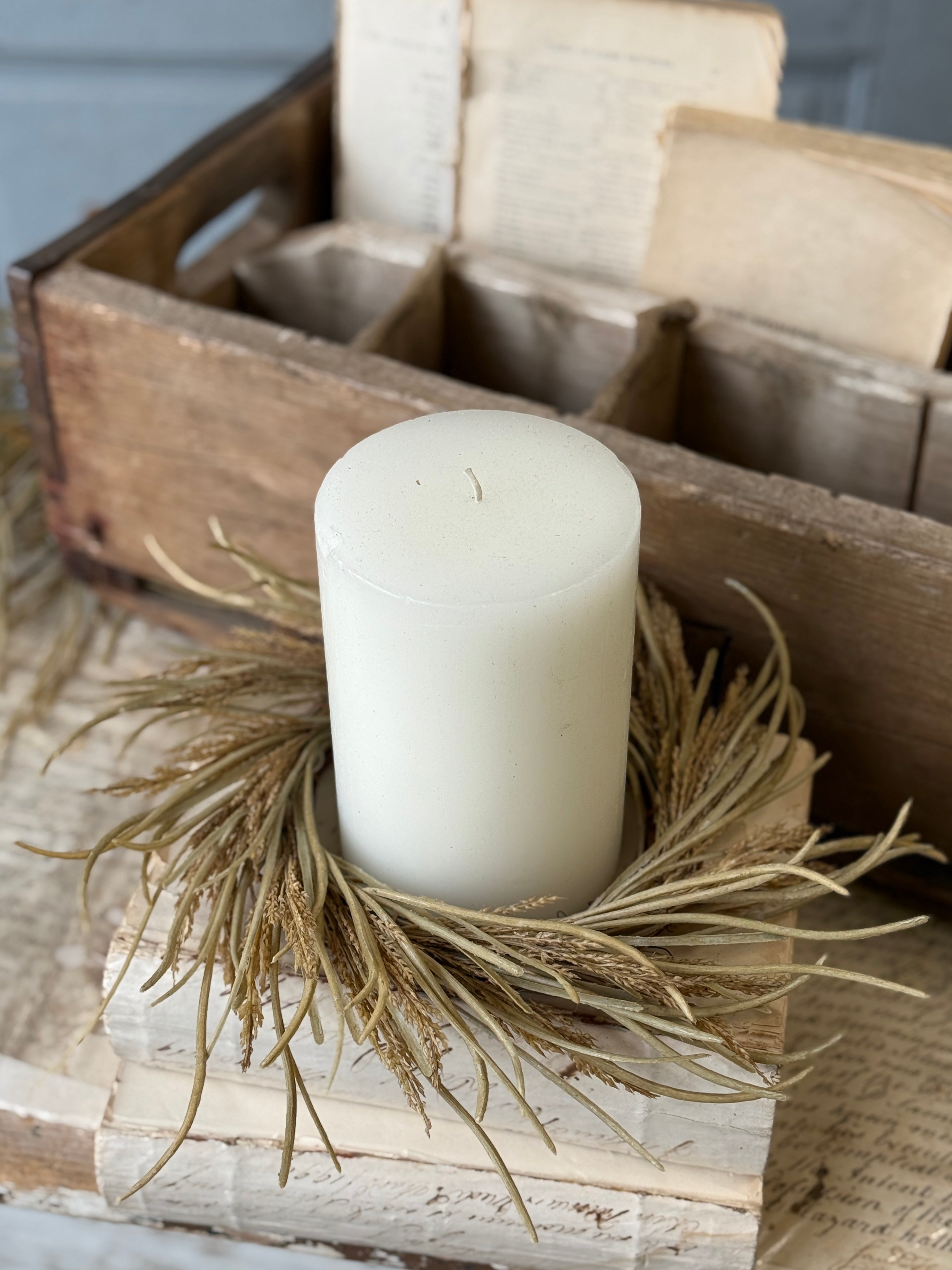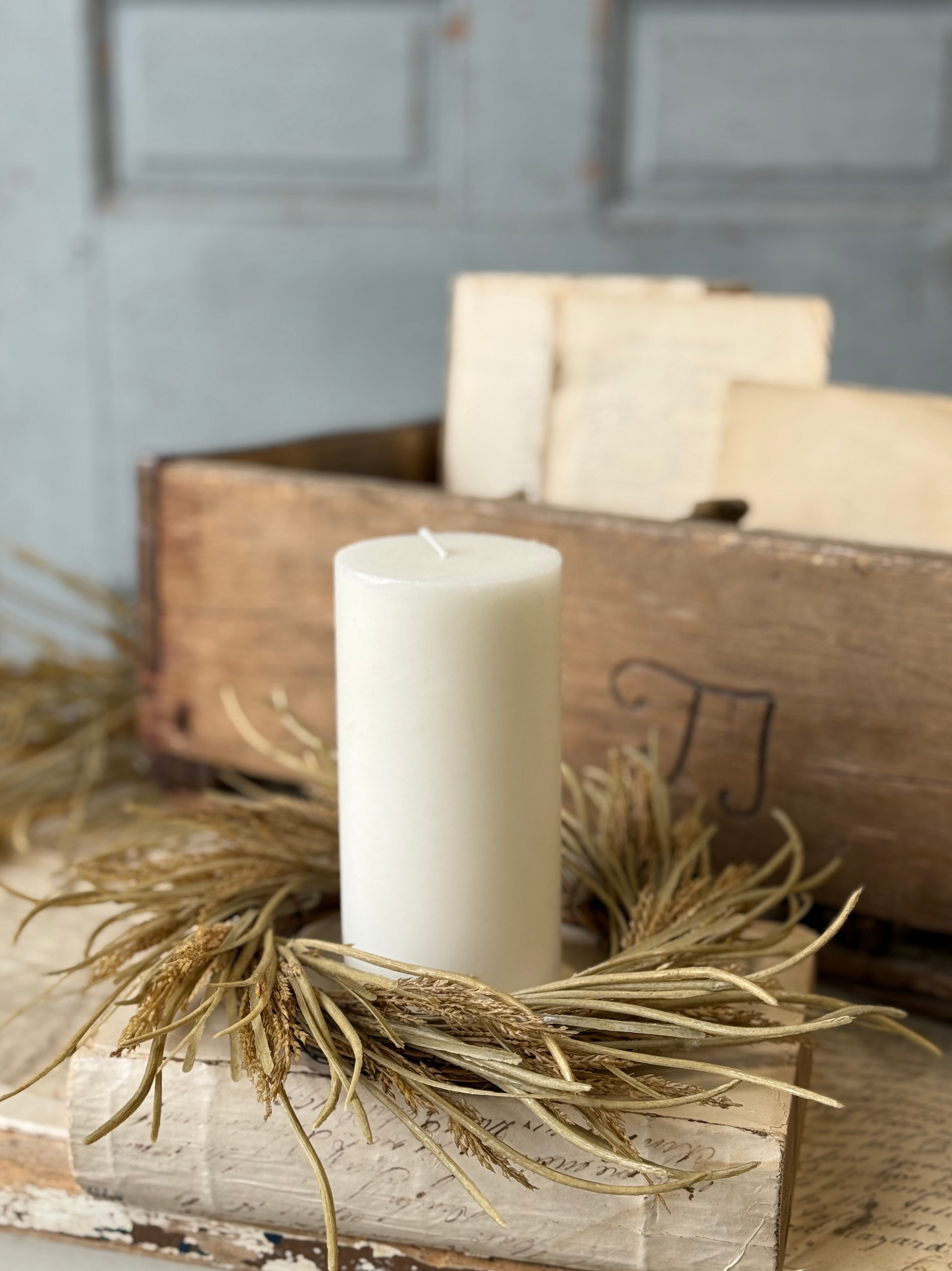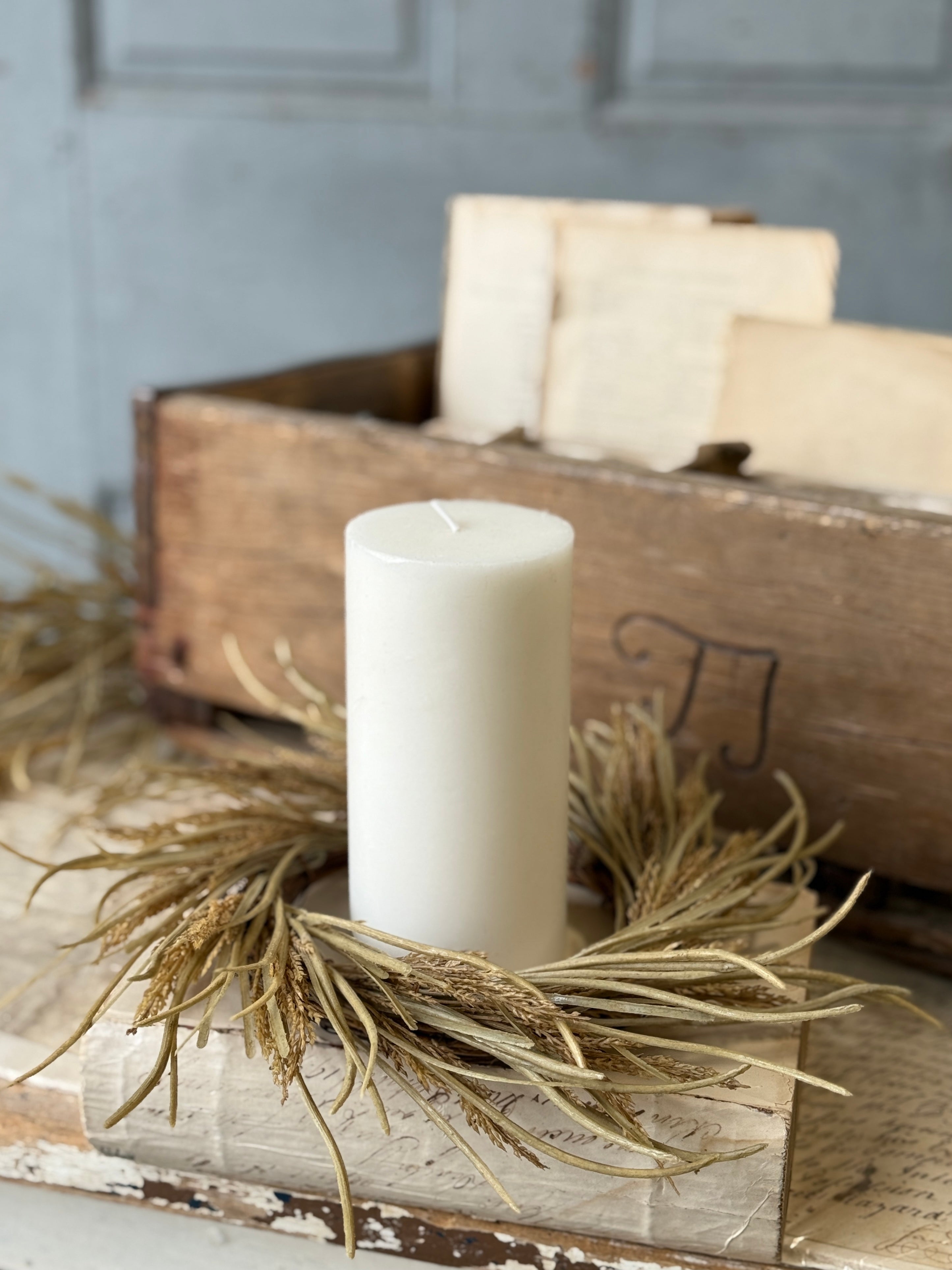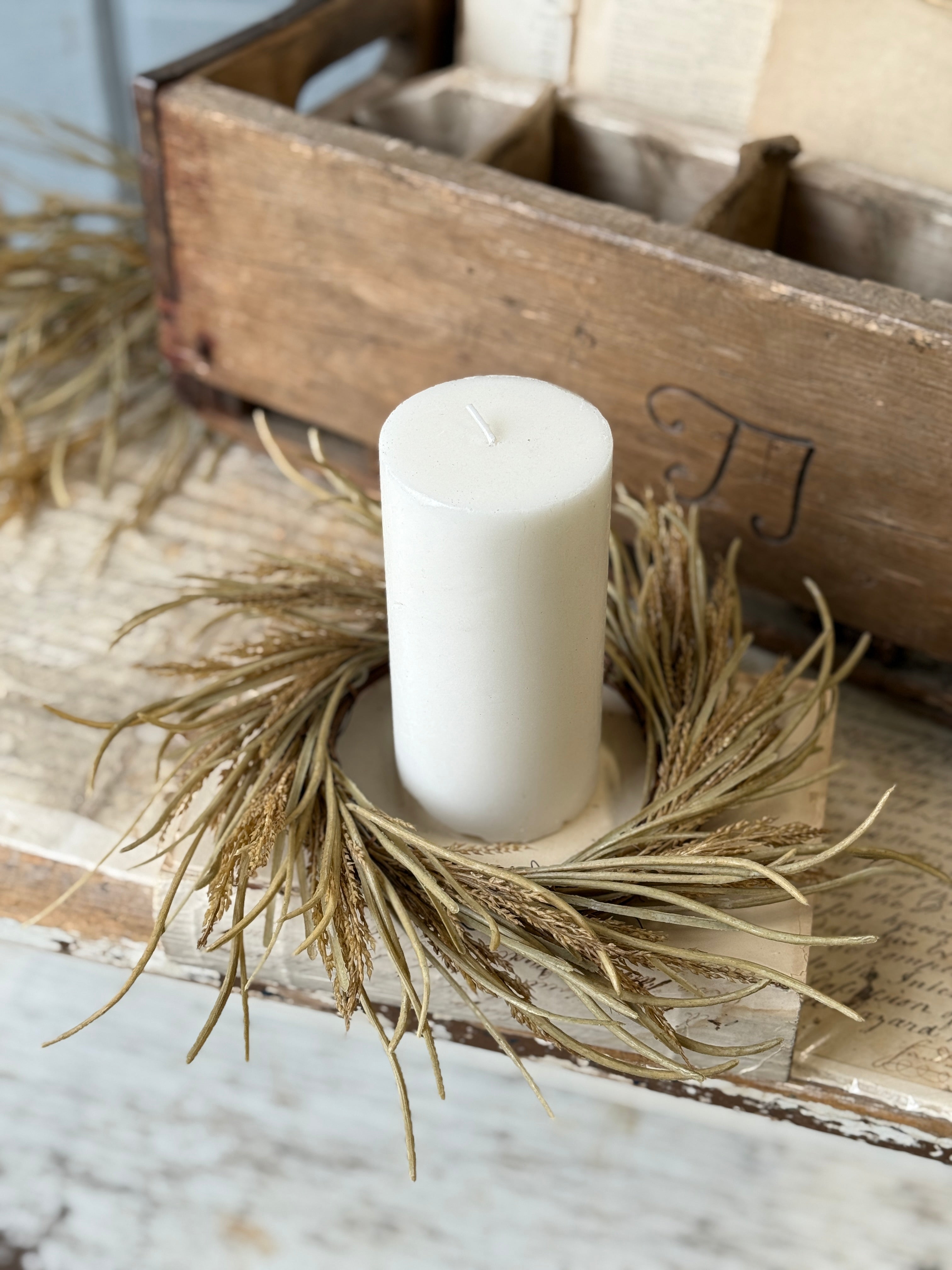 The Wheaten Waves collection delivers a seasonal punch of texture to all of your displays! Pretty wheat-like shoots top stalks accented with tendrils of pretty foliage.