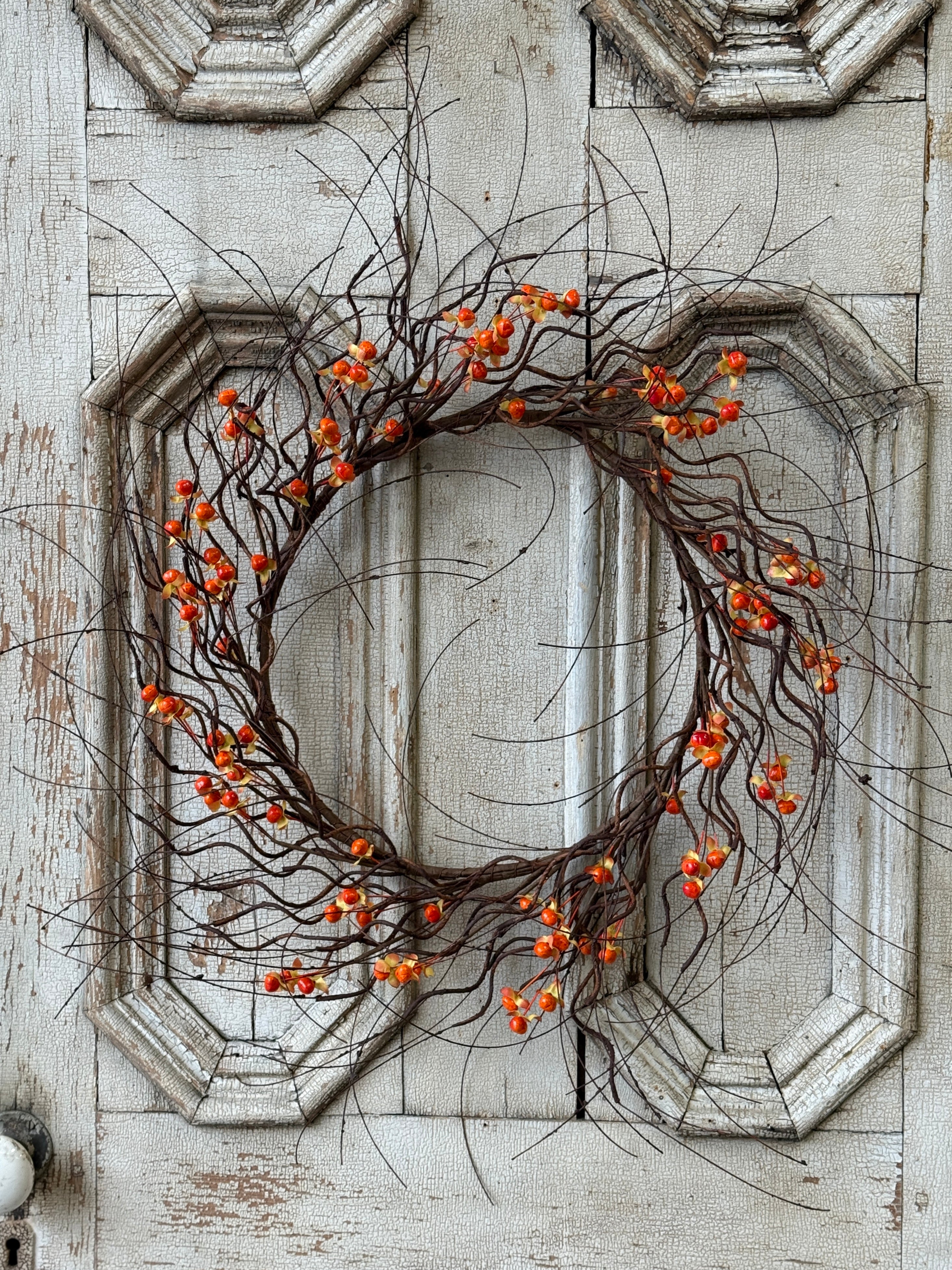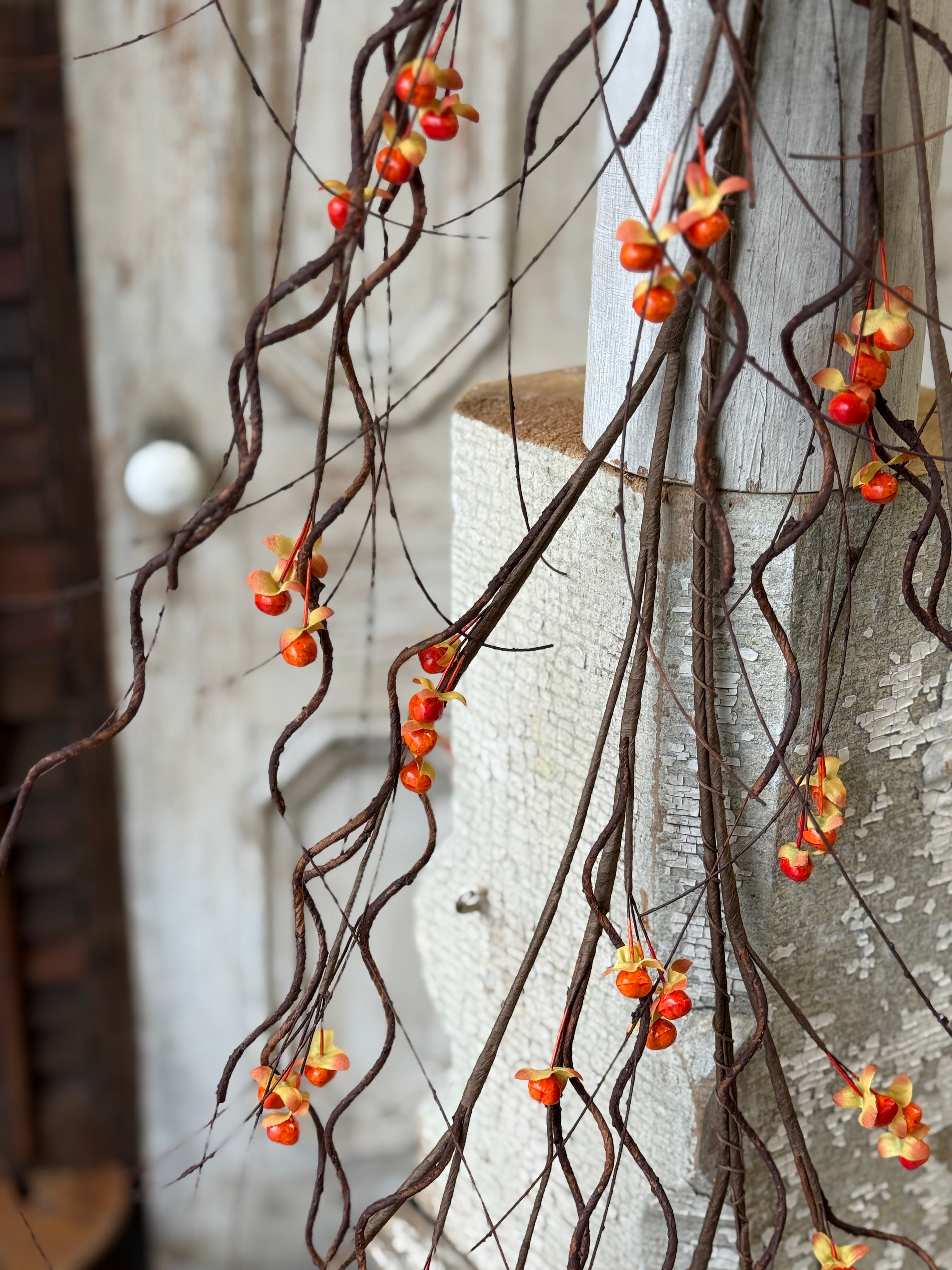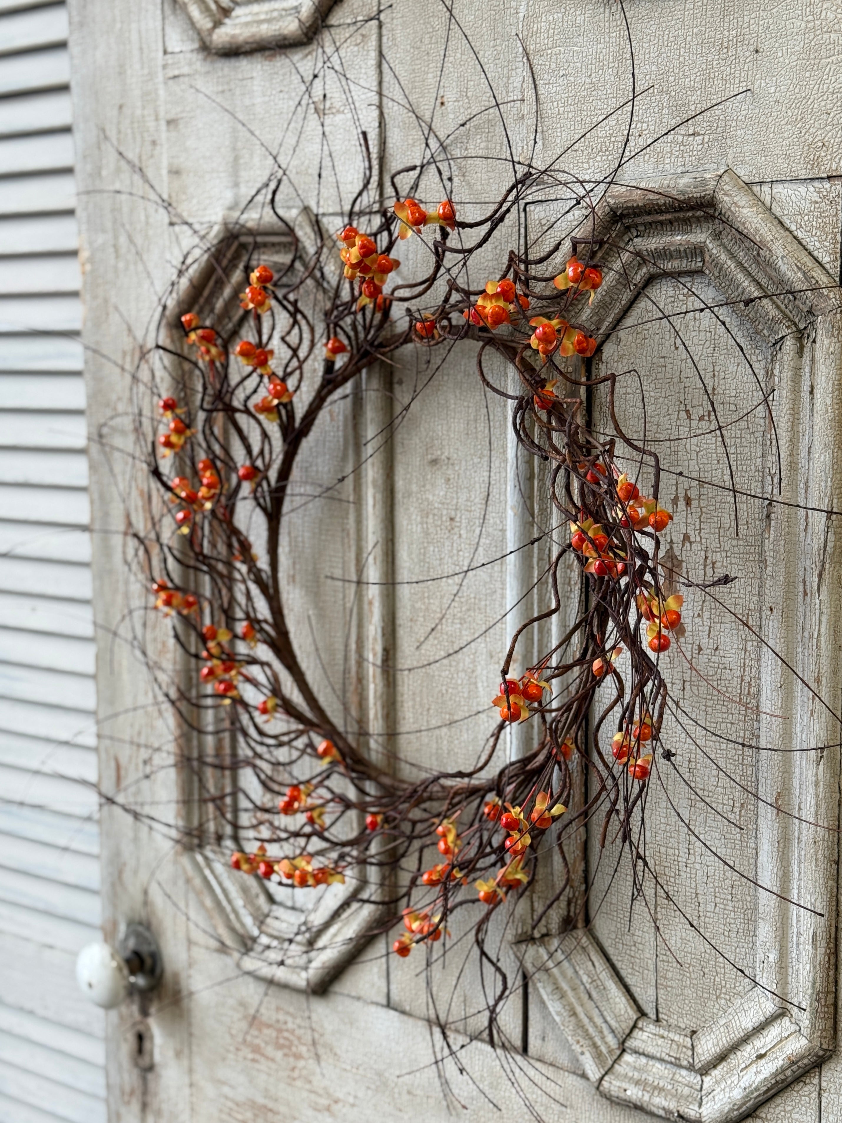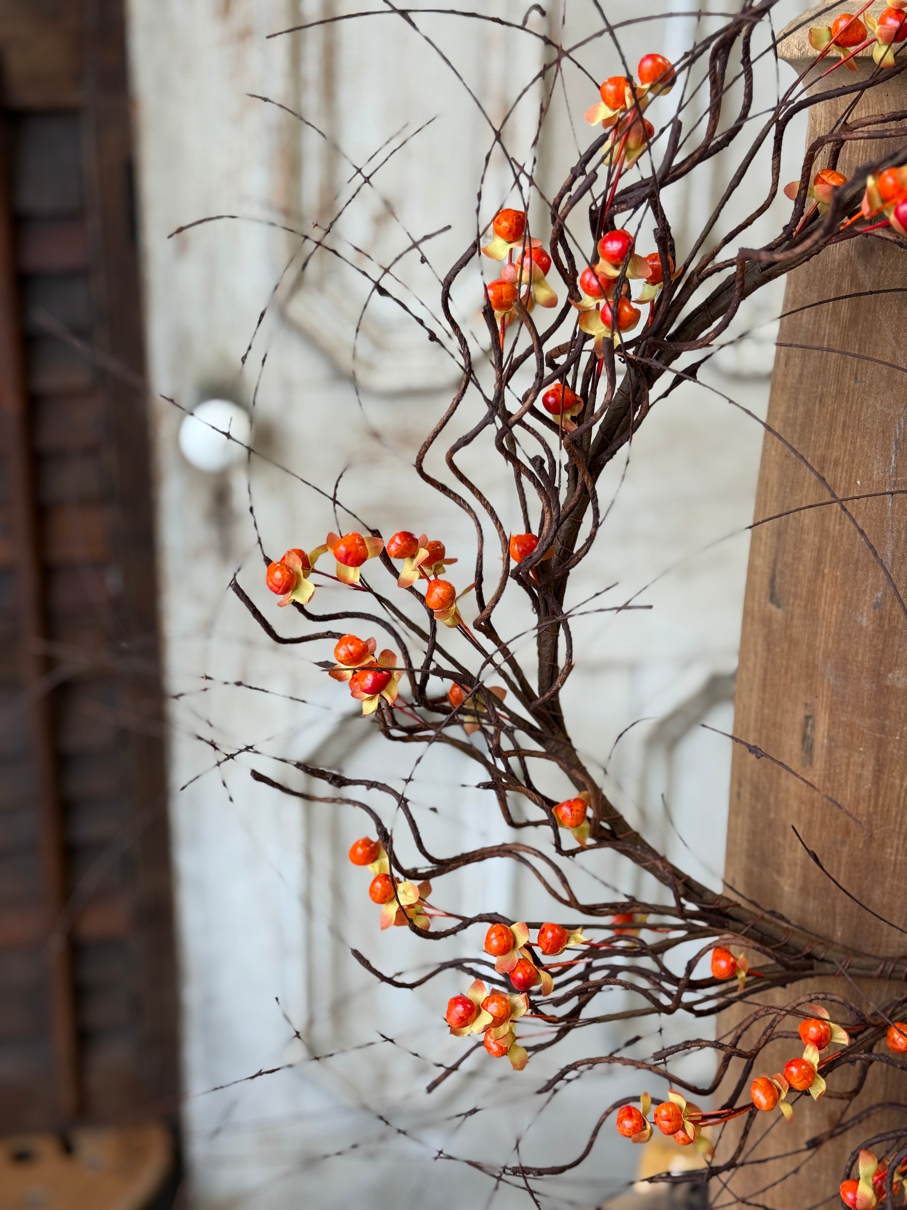 Twisting tendrils are interspersed with bright bittersweet berries to make a wild and wonderful collection full of texture and interest.