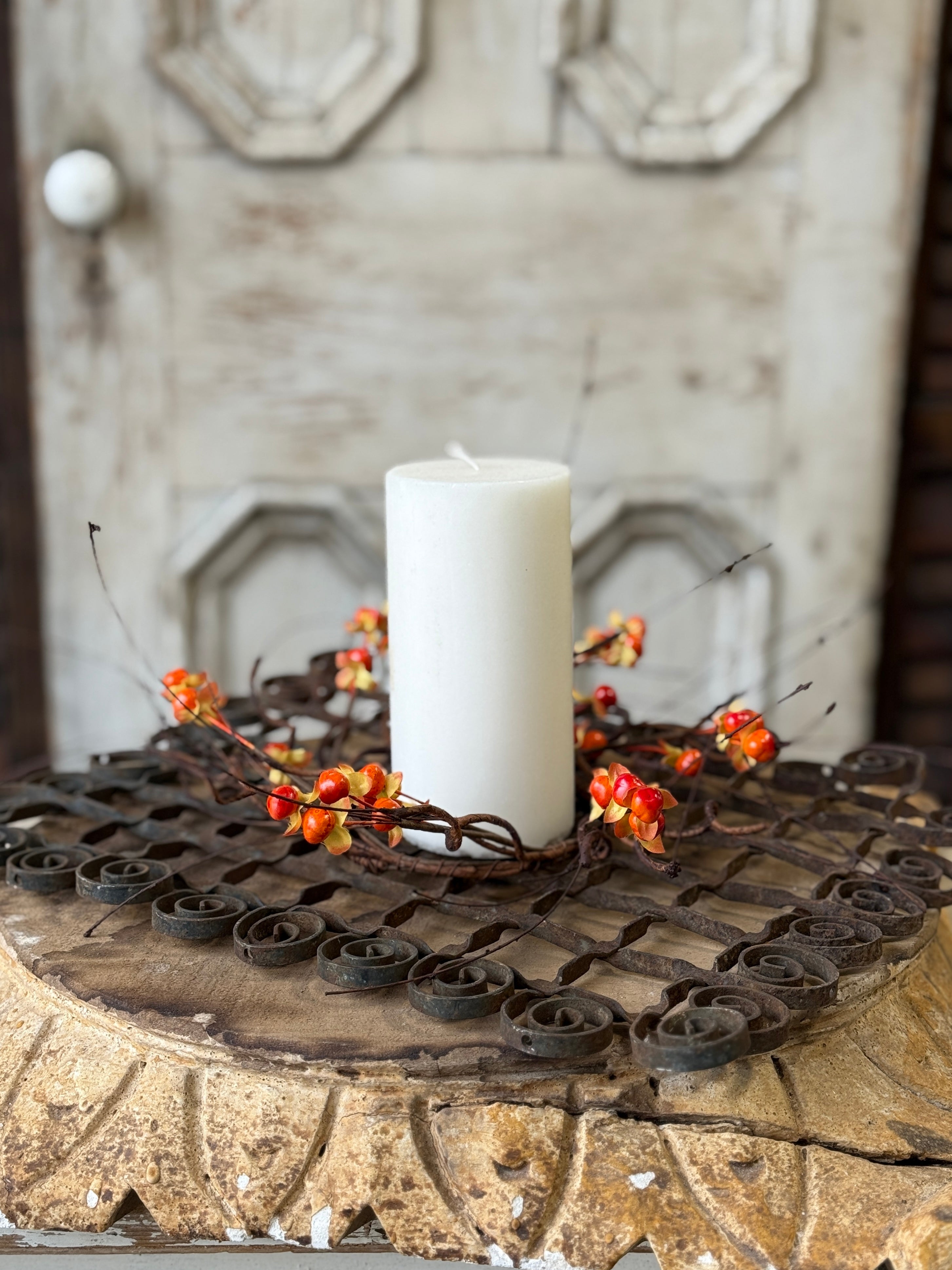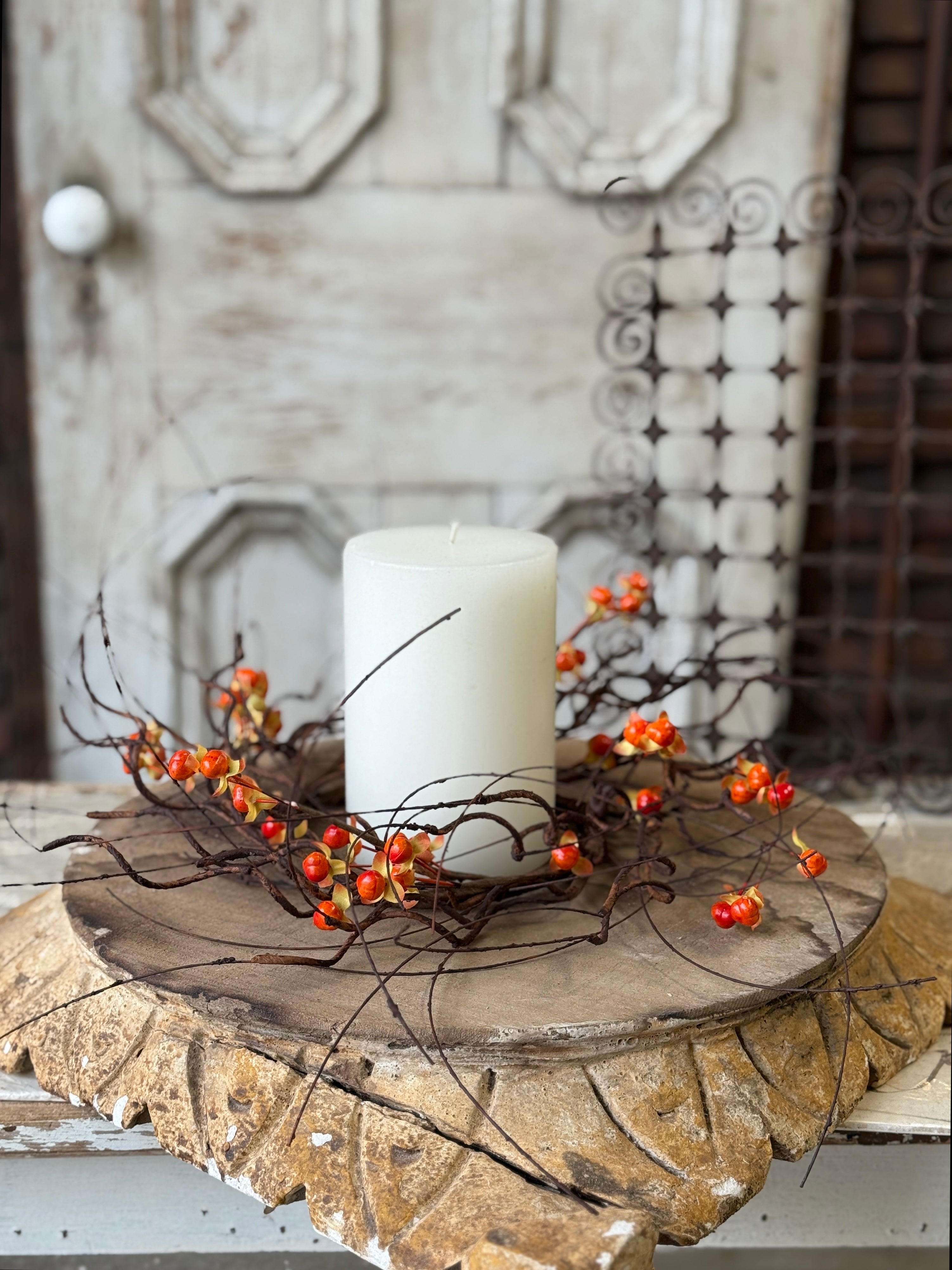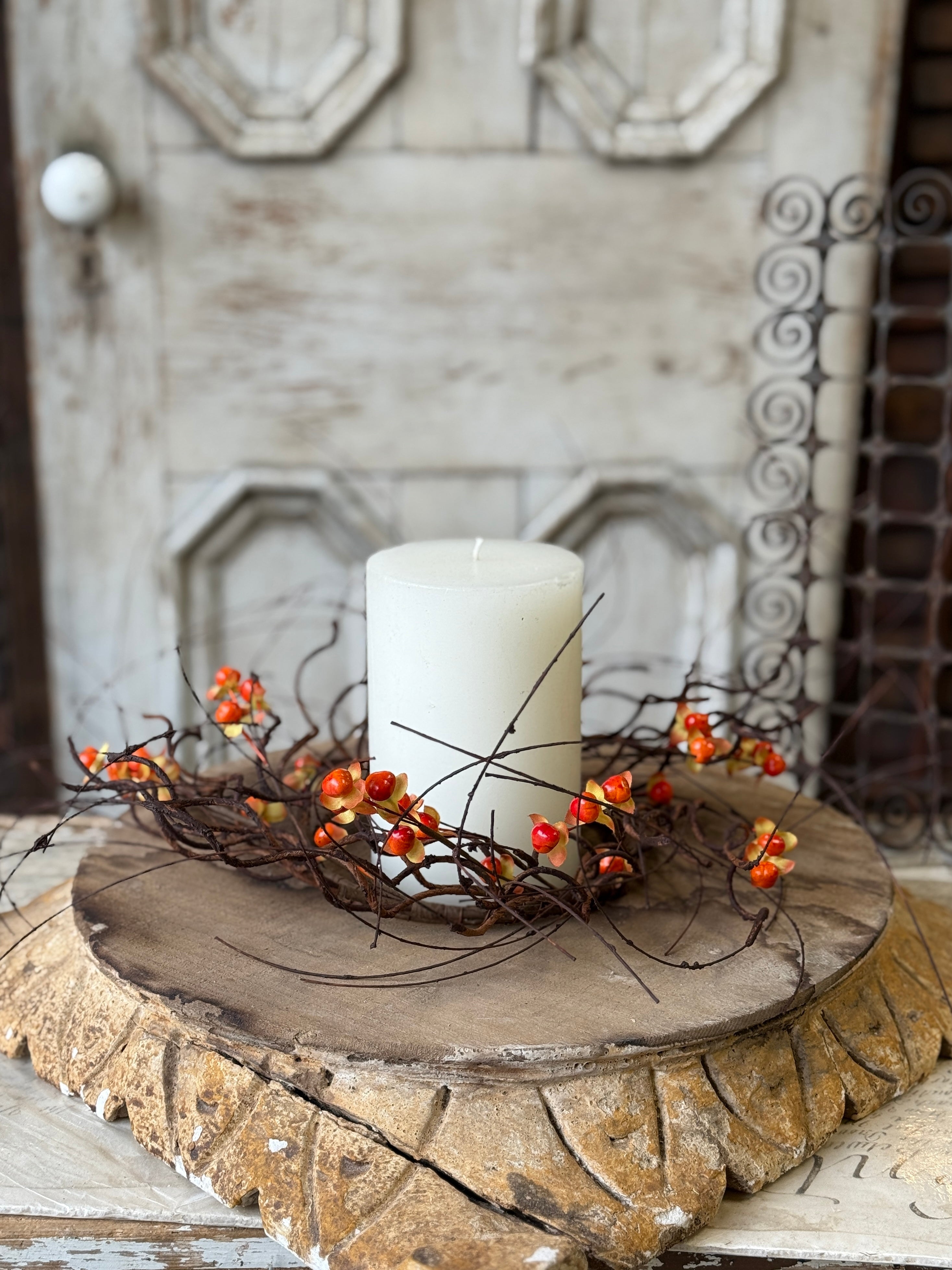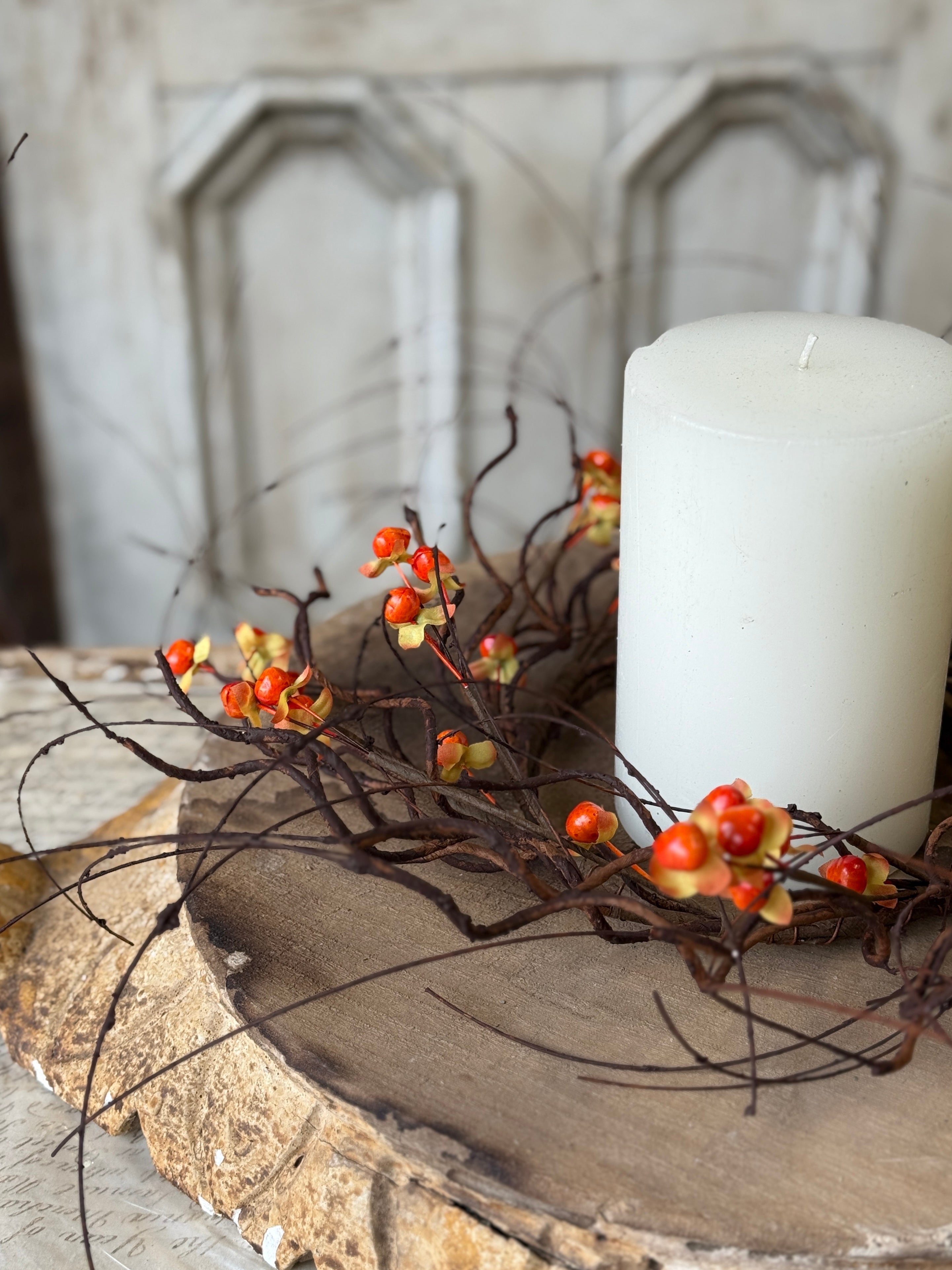 Twisting tendrils are interspersed with bright bittersweet berries to make a wild and wonderful collection full of texture and interest.