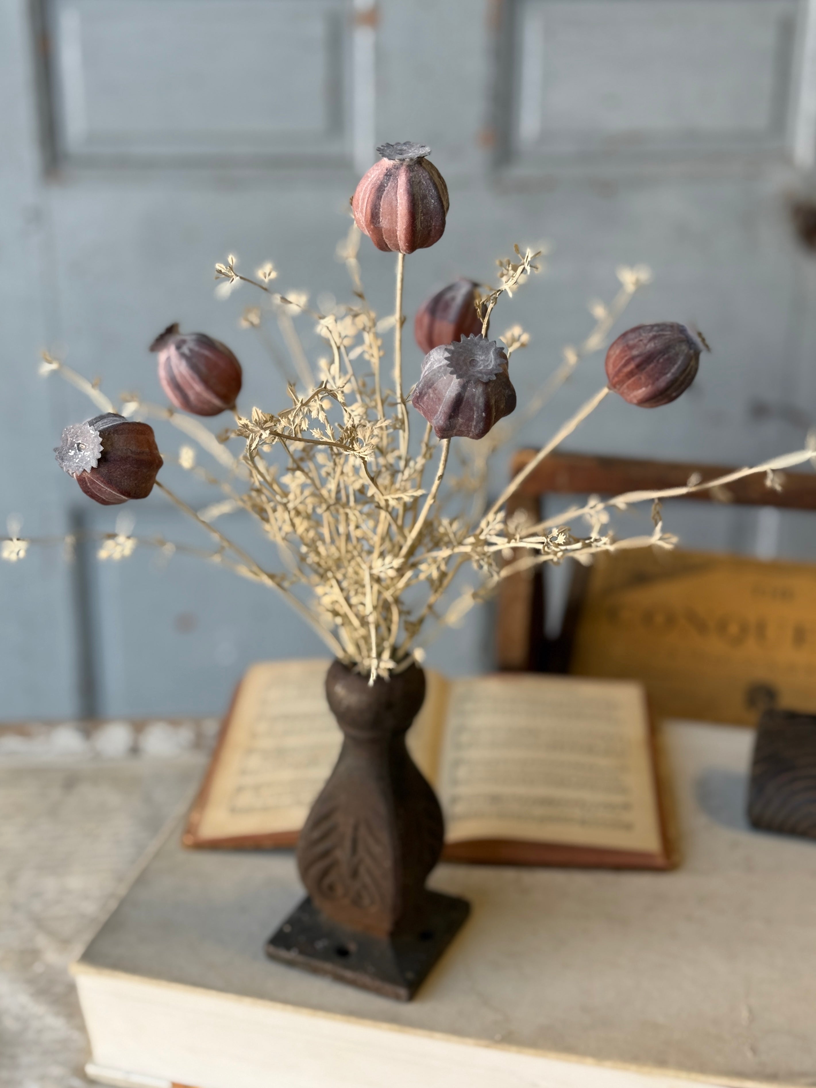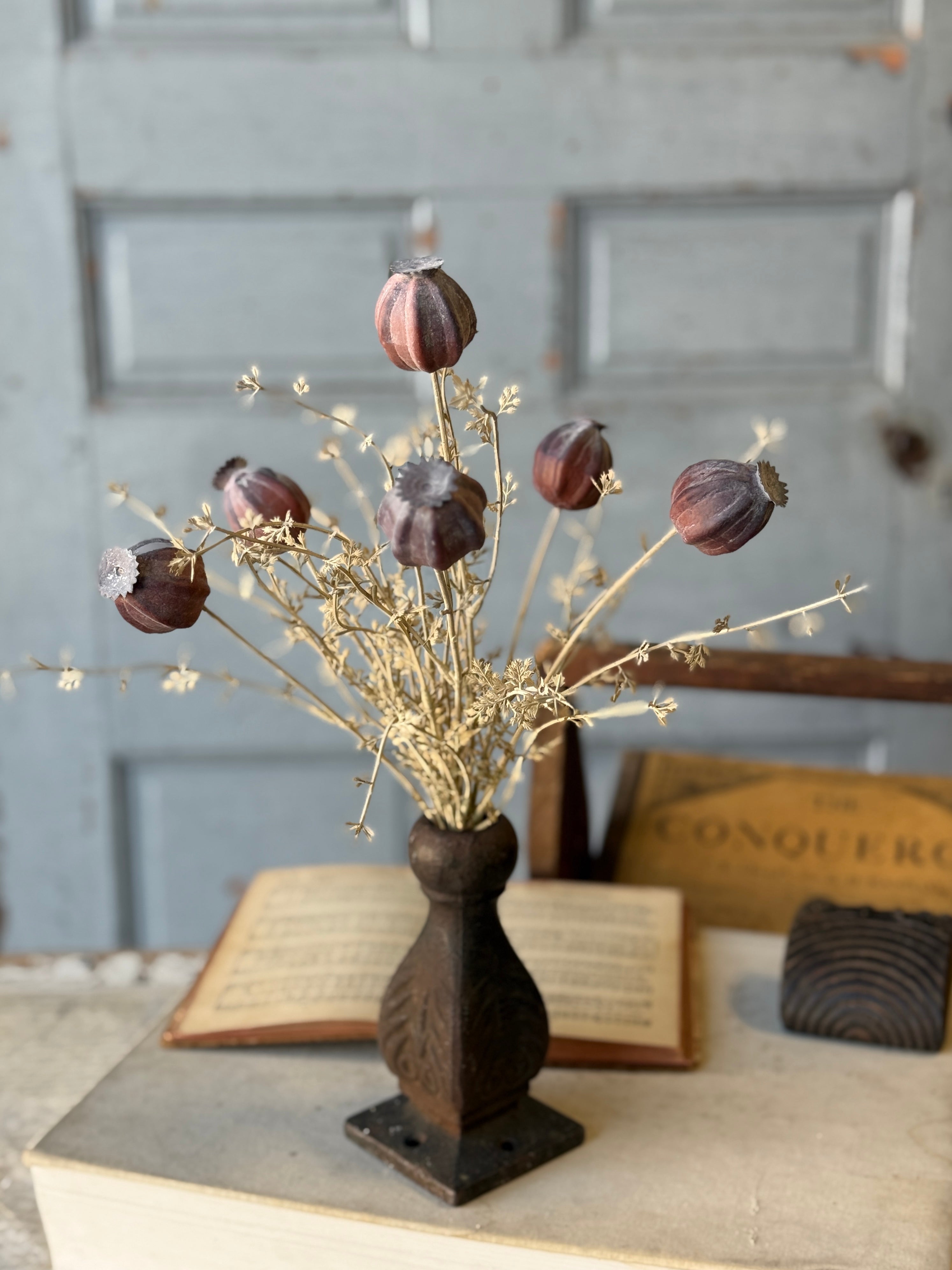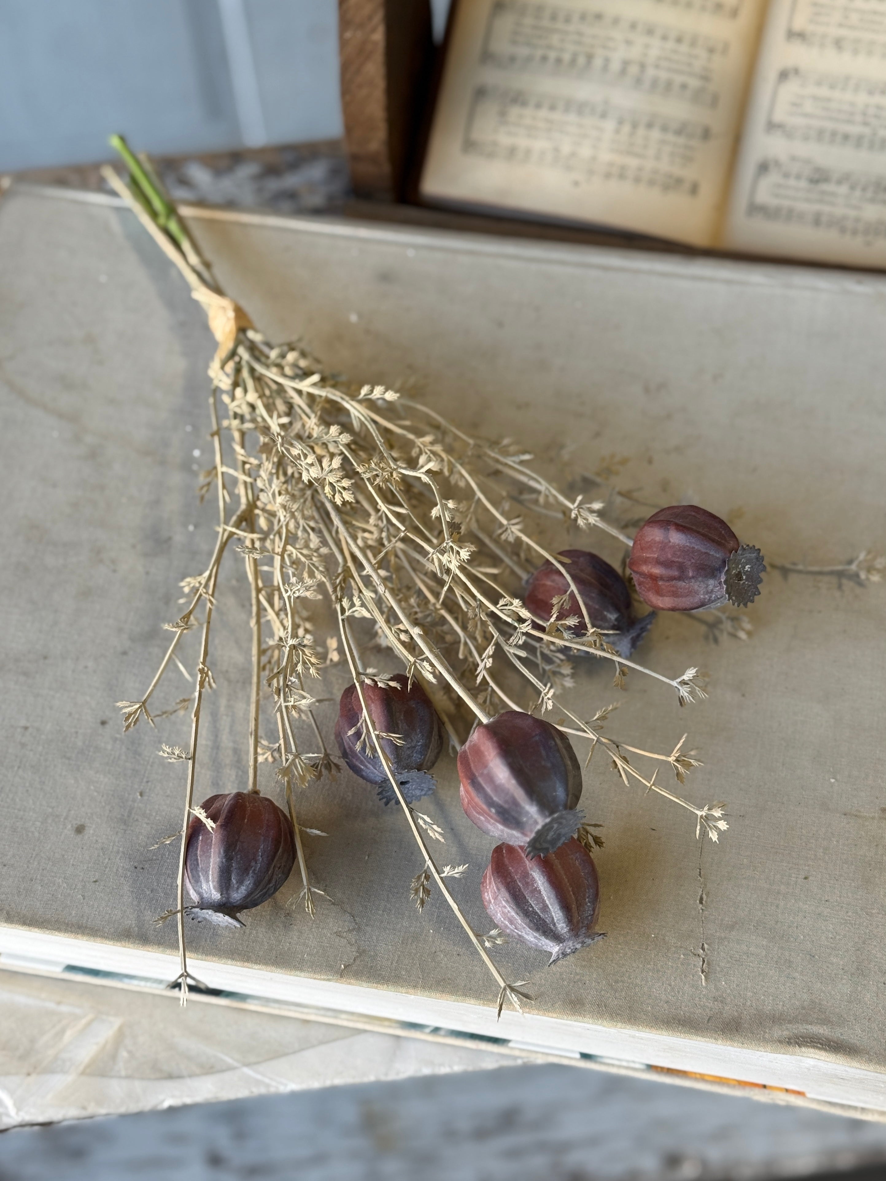 Nodding stems are topped with showy seed heads that add a wonderful textural element to vignettes and displays. Available in three colors, each sold separately.