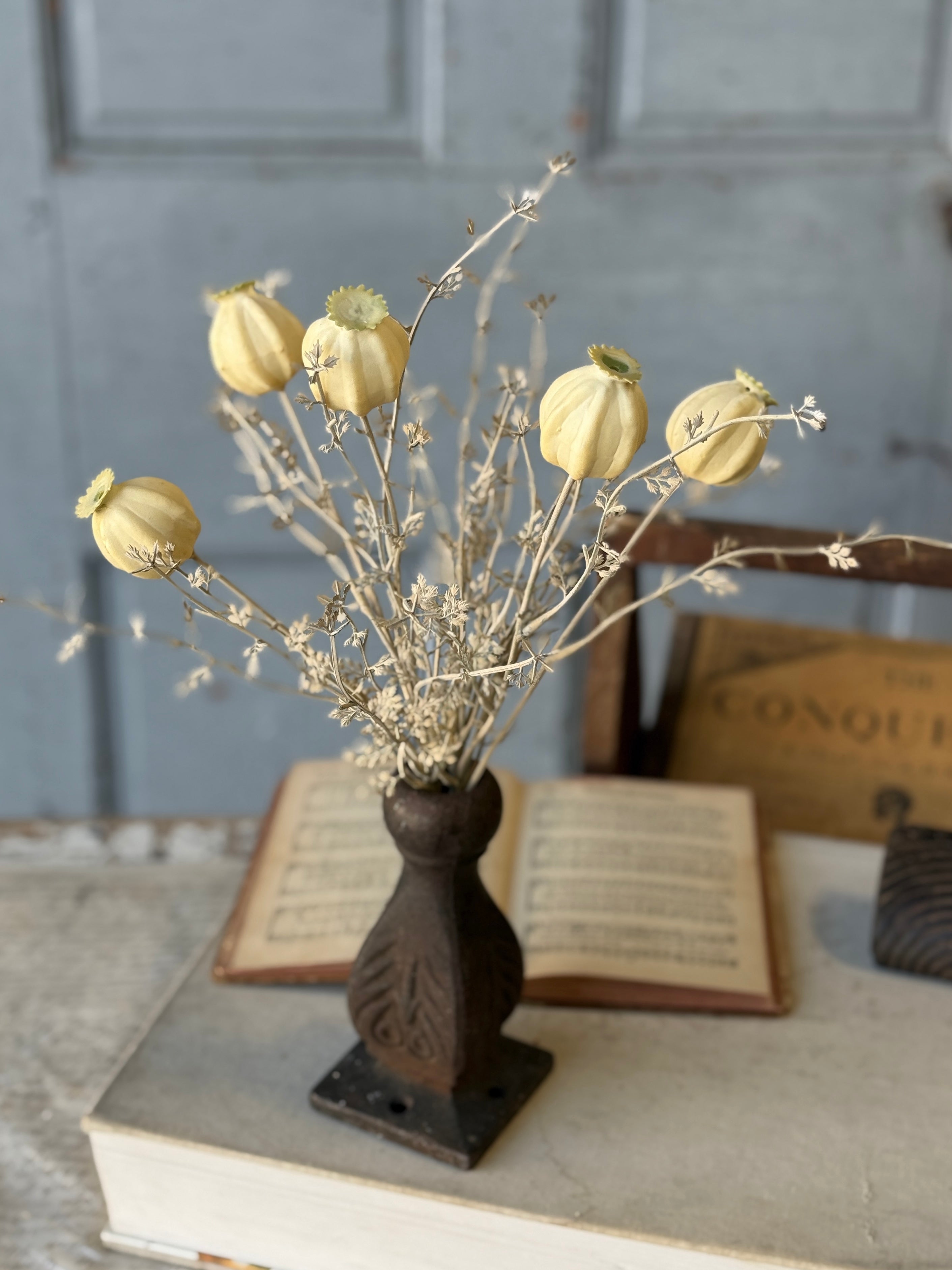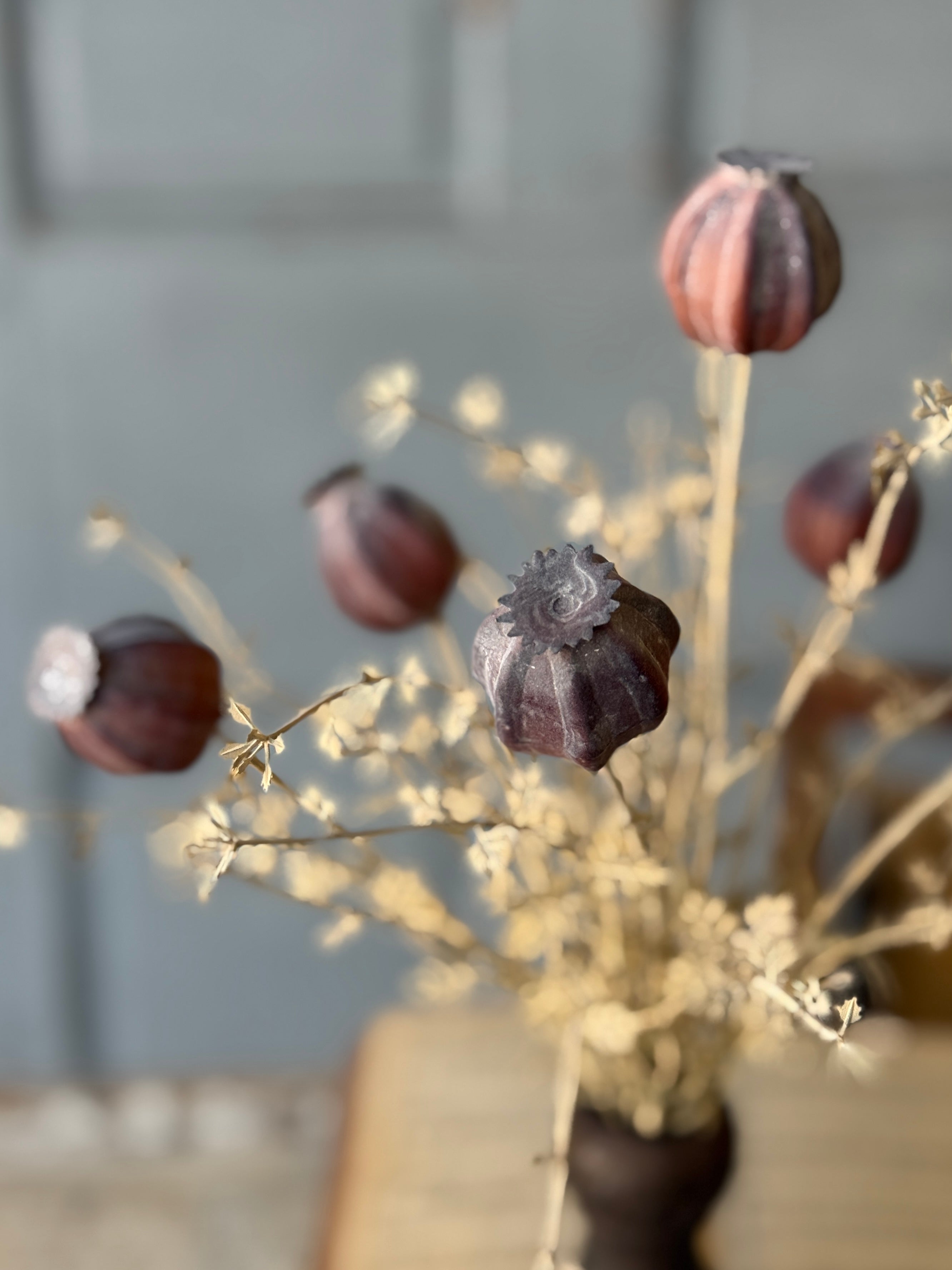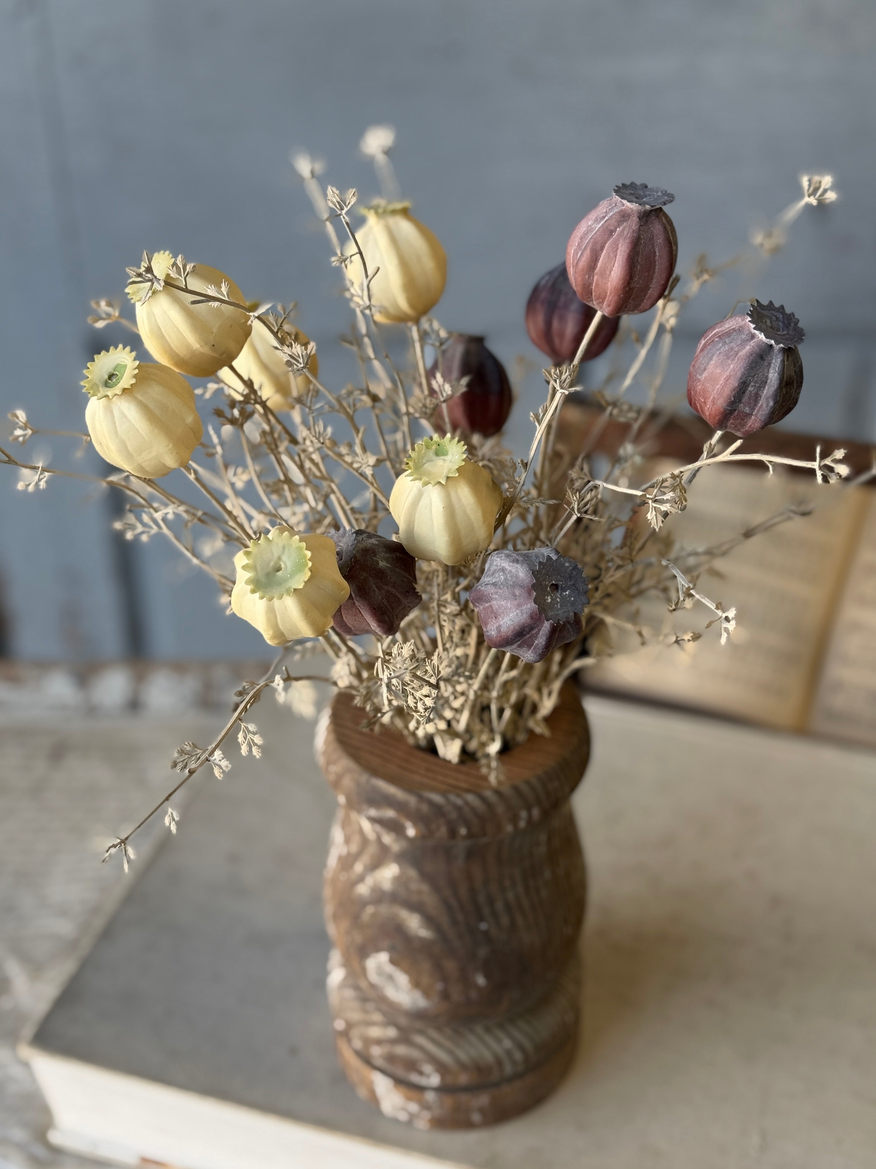 Nodding stems are topped with showy seed heads that add a wonderful textural element to vignettes and displays. Available in three colors, each sold separately.