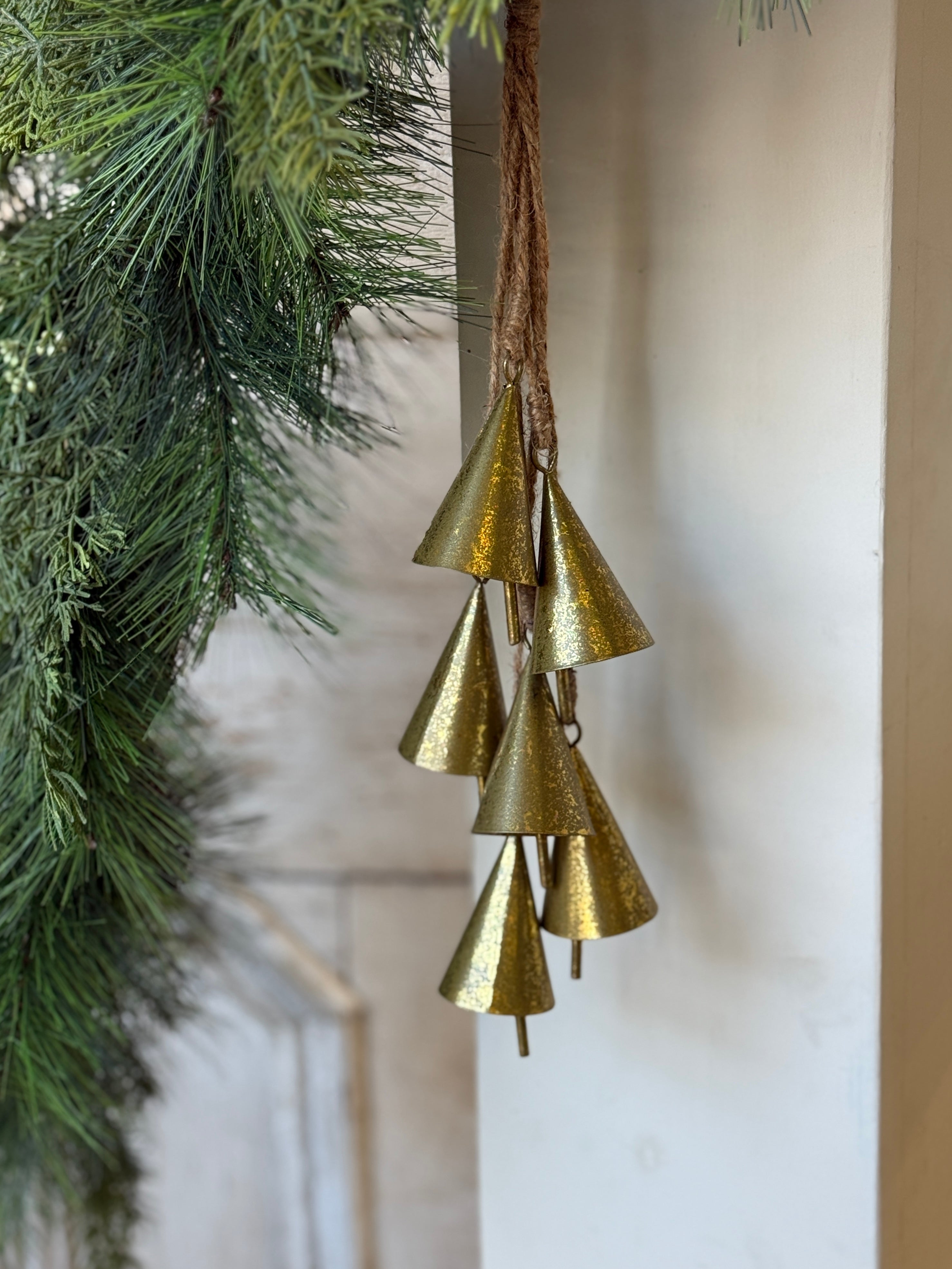A delightful collection featuring conical metallic bells with a distressed finish that are sure to add a bright and cheerful note to any displays. Beautiful enough to stand alone as a decorative item, but also looks fantastic combined with greenery.