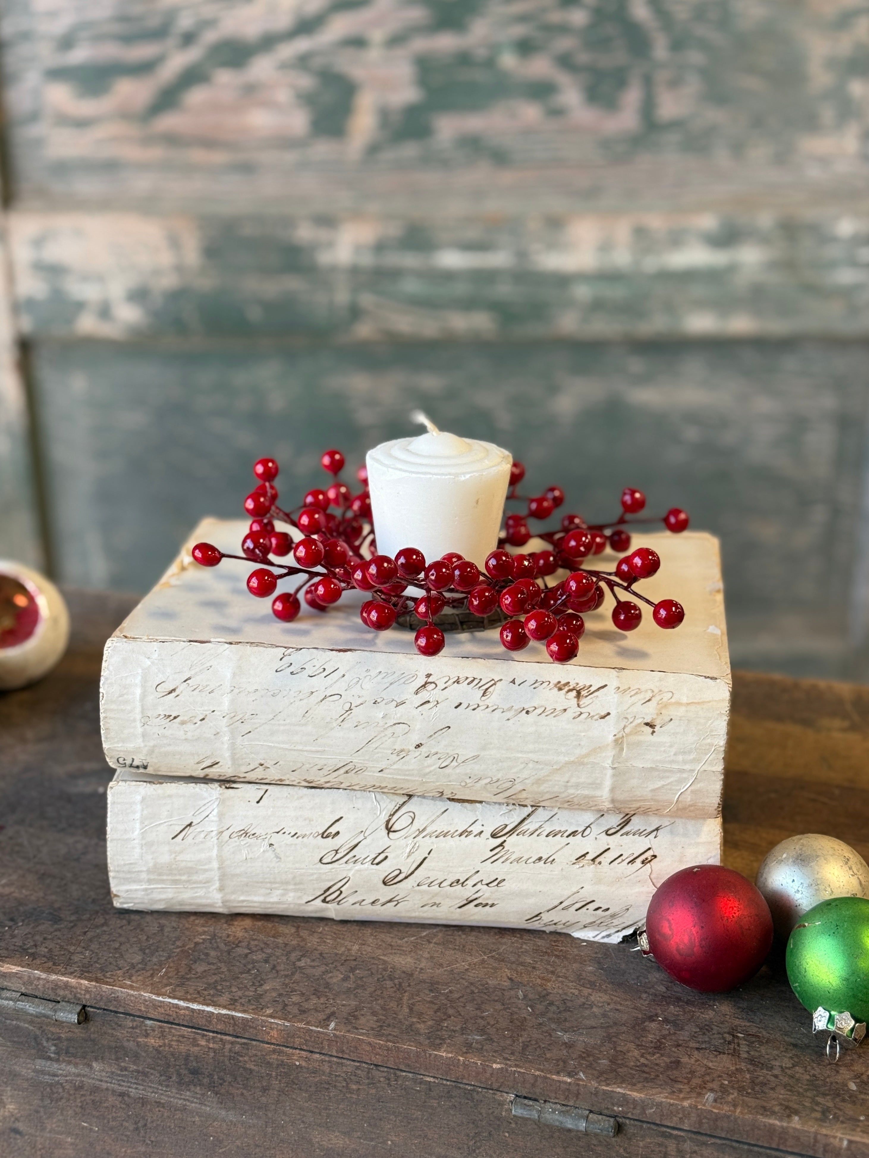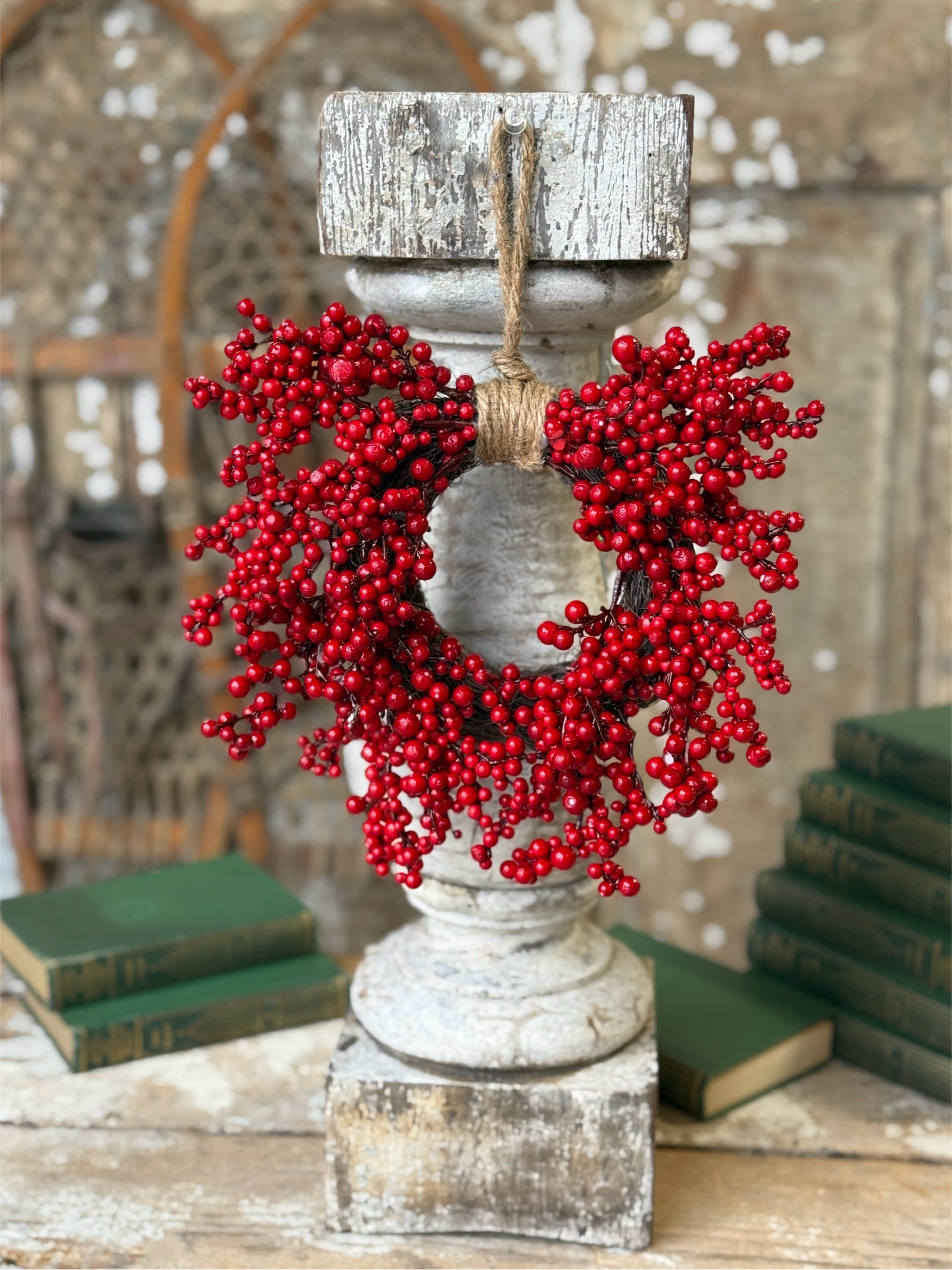 The Winter Sugar Plum collection in charming in both its petite size and vintage look and feel! Large sugared berries are accented with pops of snowy pine and pretty scalloped holly leaves.