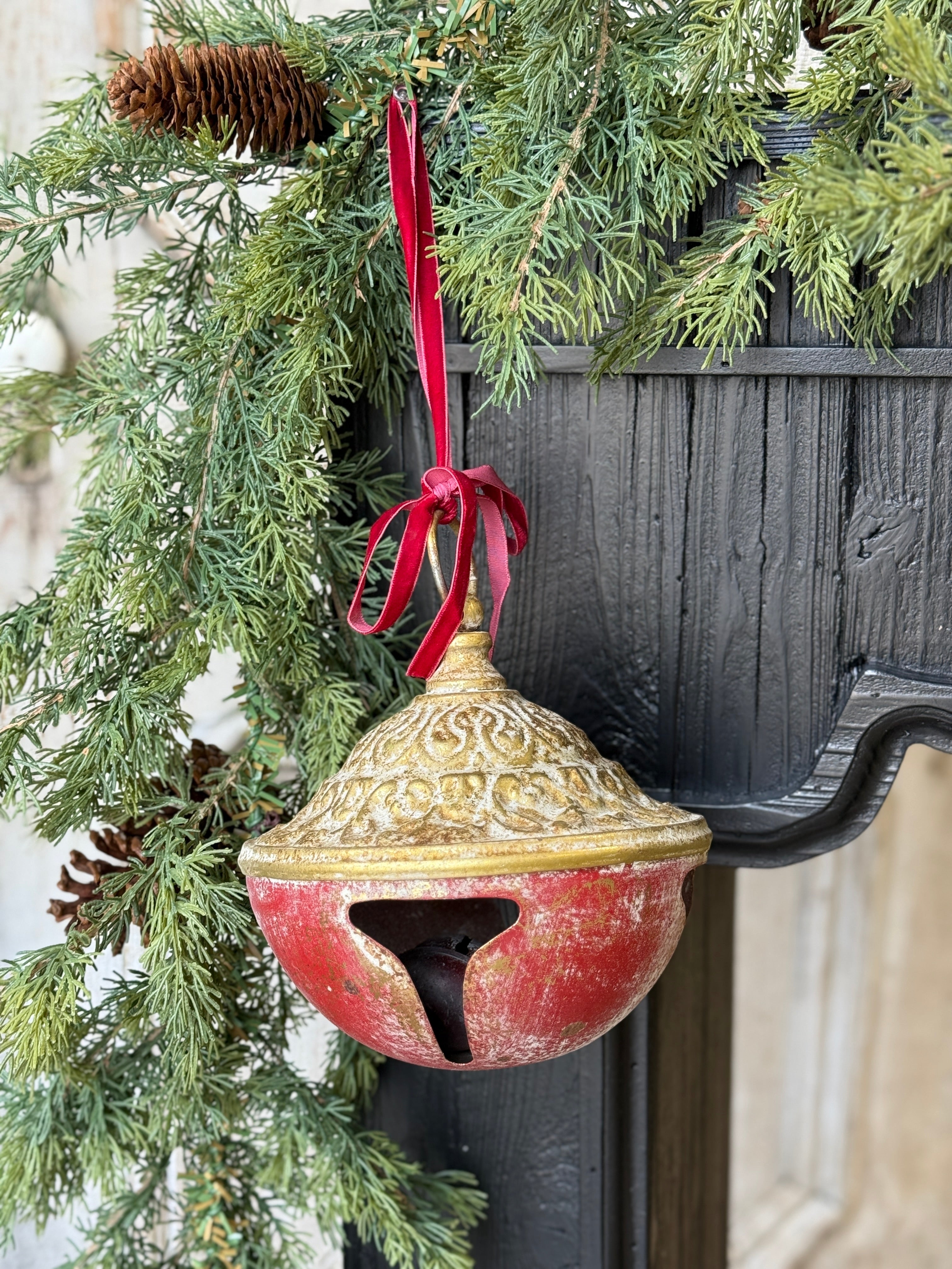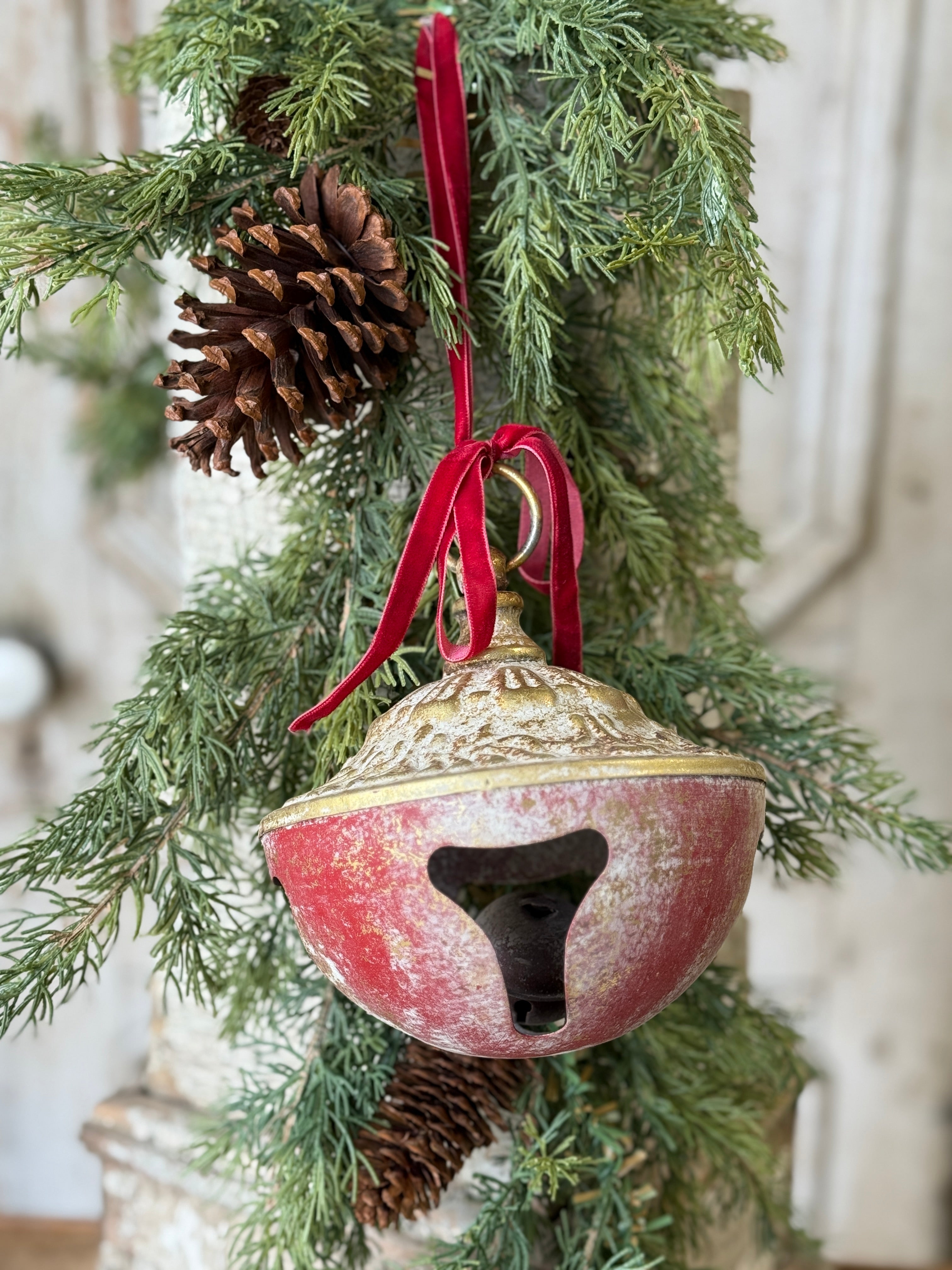 Add a colorful note with the Chorusline Bells. These distressed bells with their charming velvet-like hanger have a nostalgic look and add a vintage feel to displays. Available in two sizes, each sold separately.