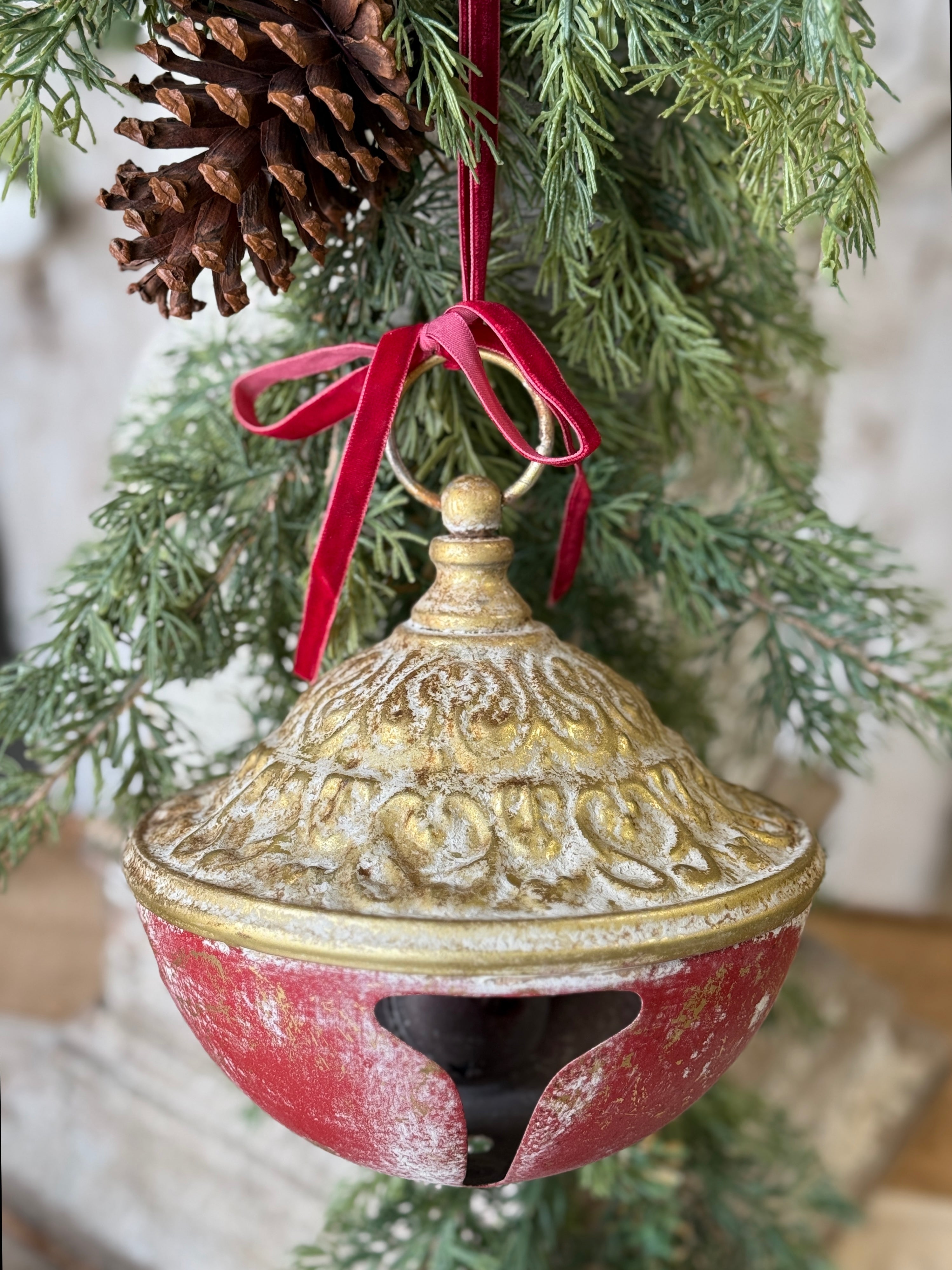 A delightful collection featuring conical metallic bells with a distressed finish that are sure to add a bright and cheerful note to any displays. Beautiful enough to stand alone as a decorative item, but also looks fantastic combined with greenery.