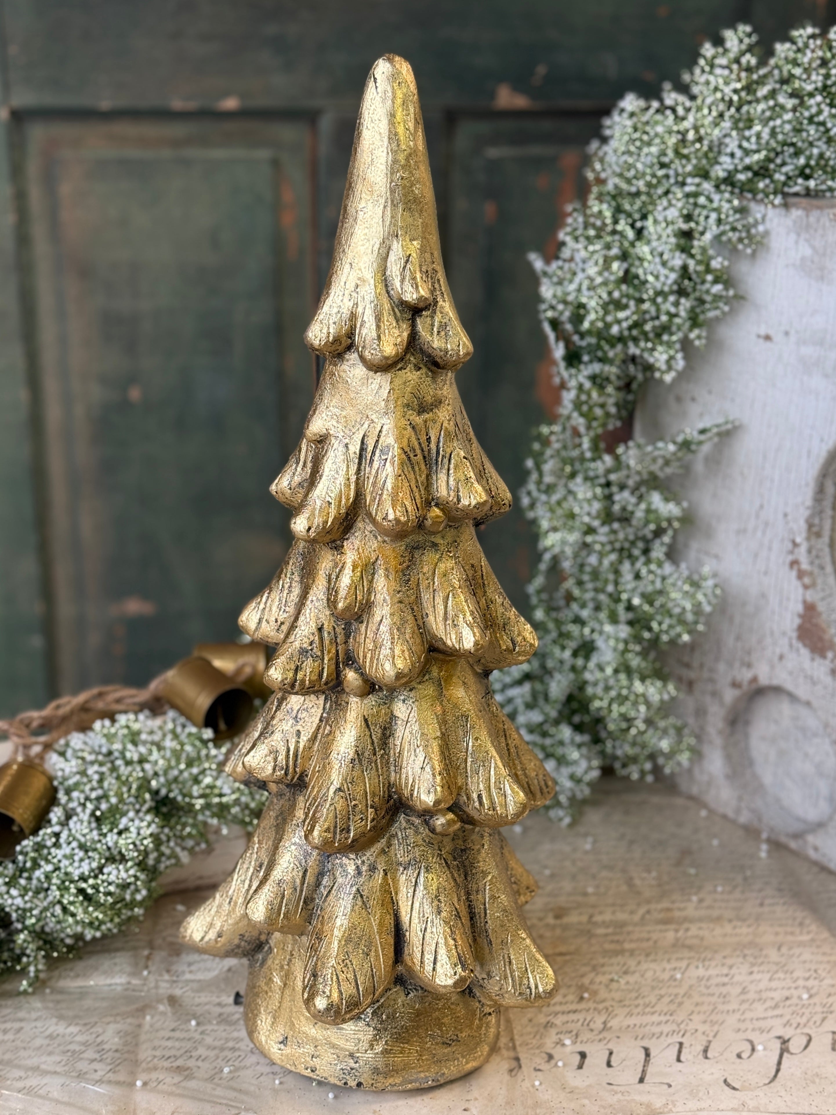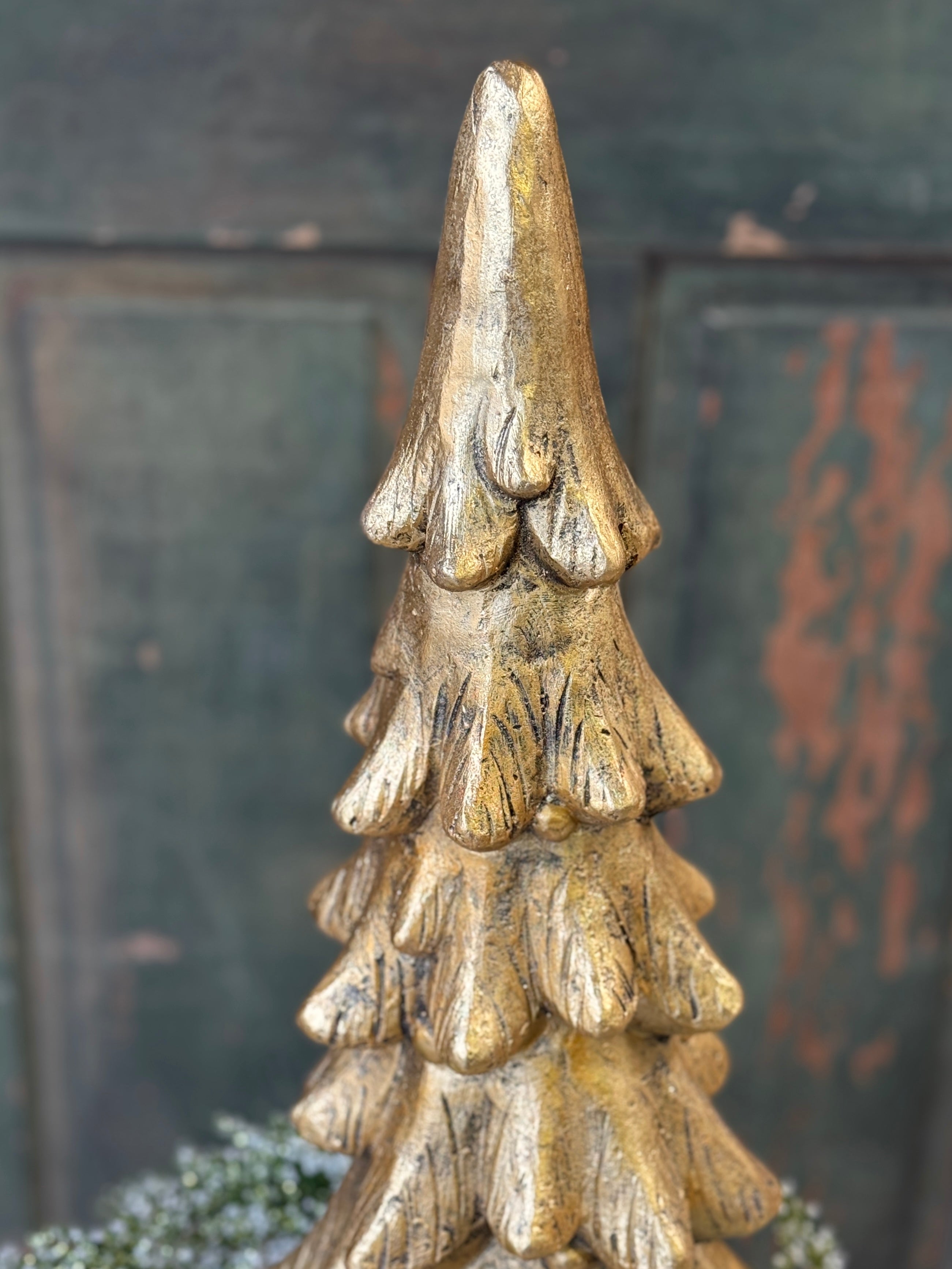 Regal and showy, the Gold Leaf Pine commands attention with its gorgeous distressed finish and eye catching silhouette. Adds an air of grandeur to displays and vignettes effortlessly.