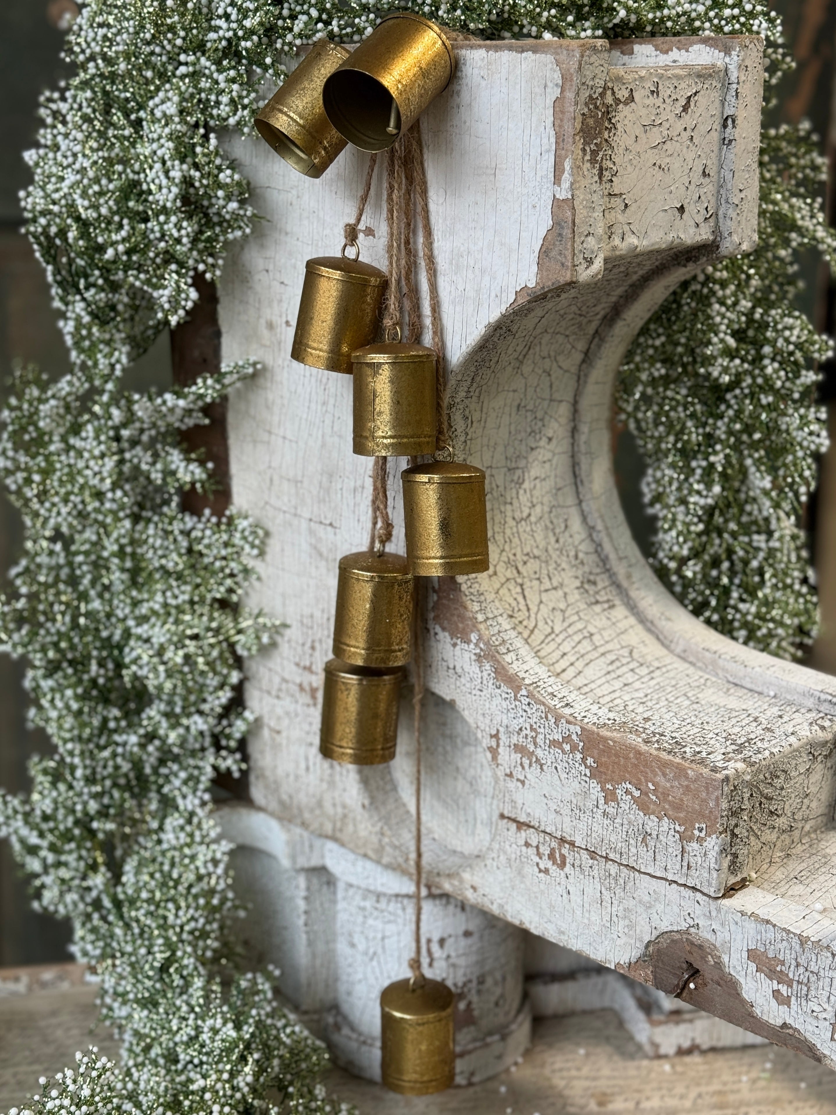 Perfectly distressed gold-toned bells are strung along a rope base. These look beautiful displayed as garlands, but are also versatile enough to style as an accessory in displays. Available in two sizes, each sold separately. *Bells measure approx 1.25”