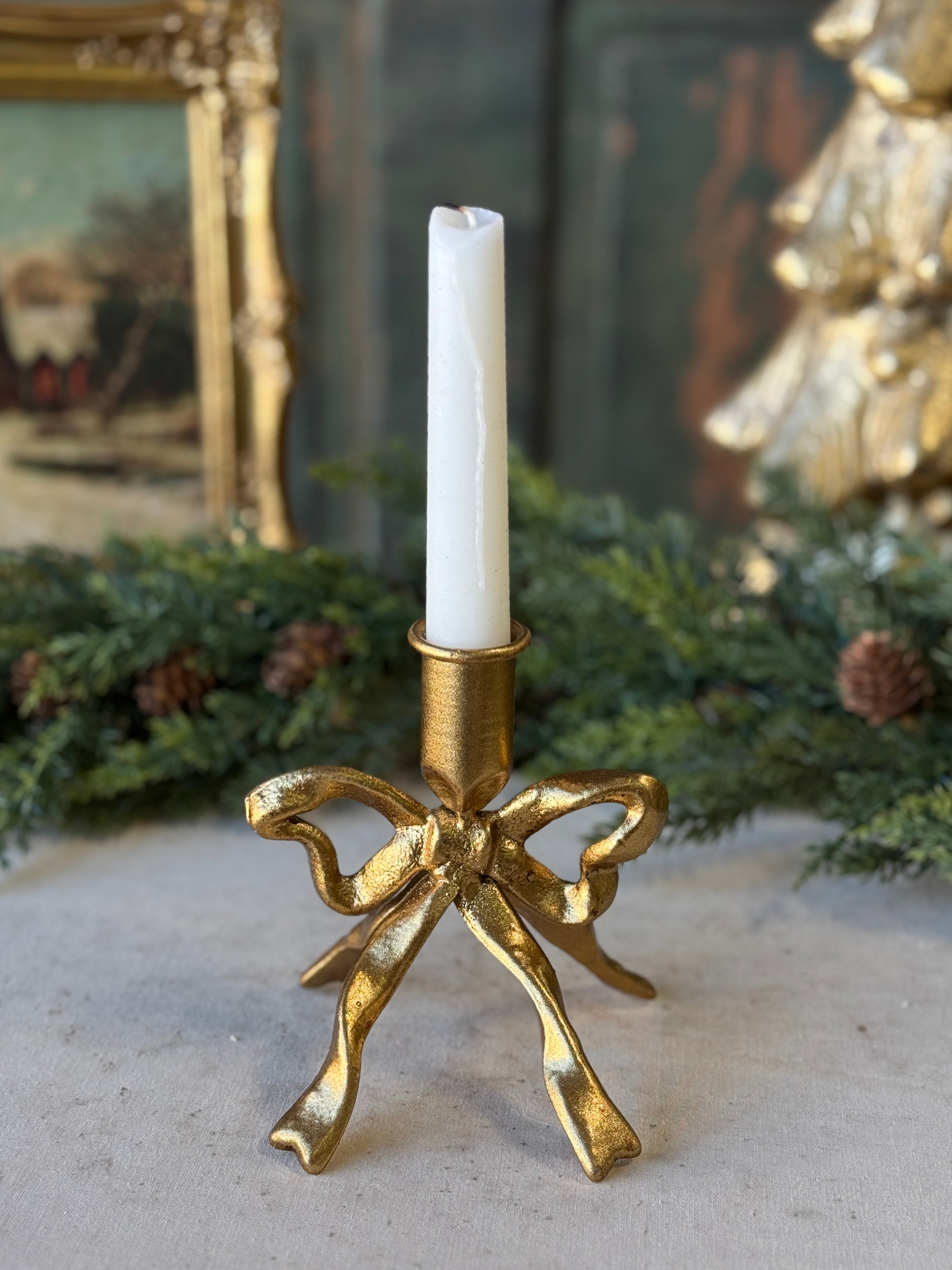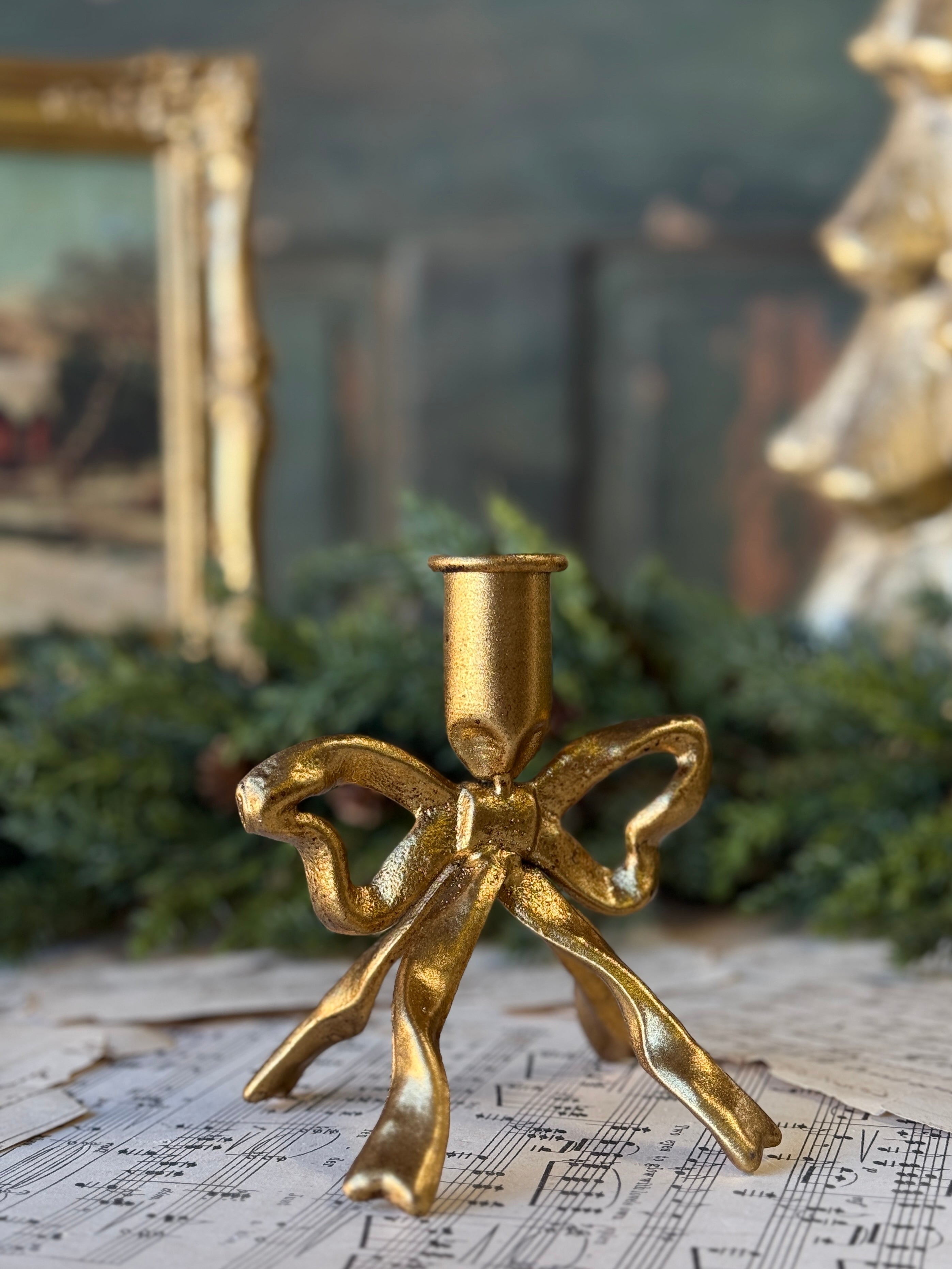 The Gilded Knot Taper Holder adds an immediate dash charm with its winsome gilded finish and fanciful tied bow.