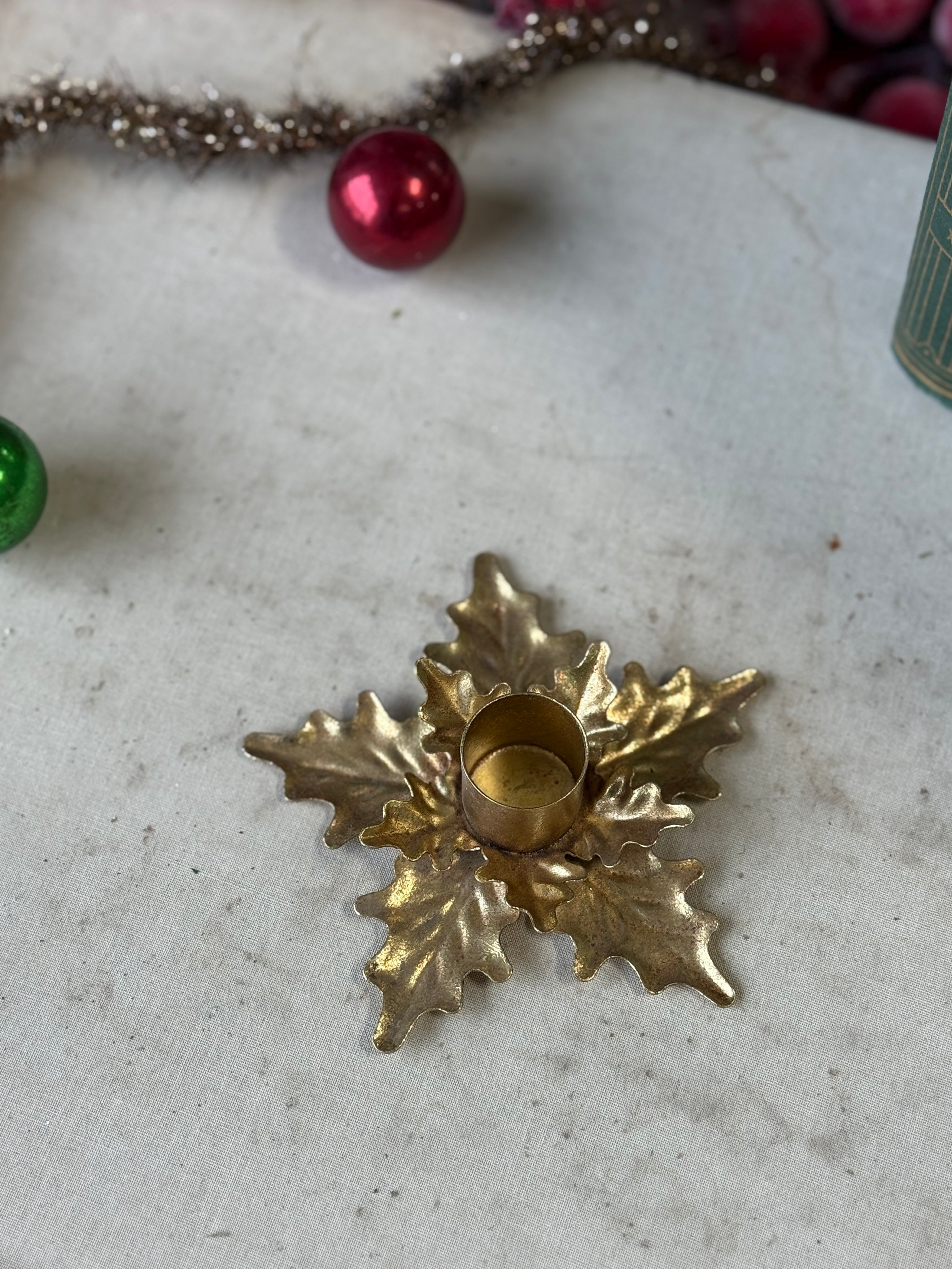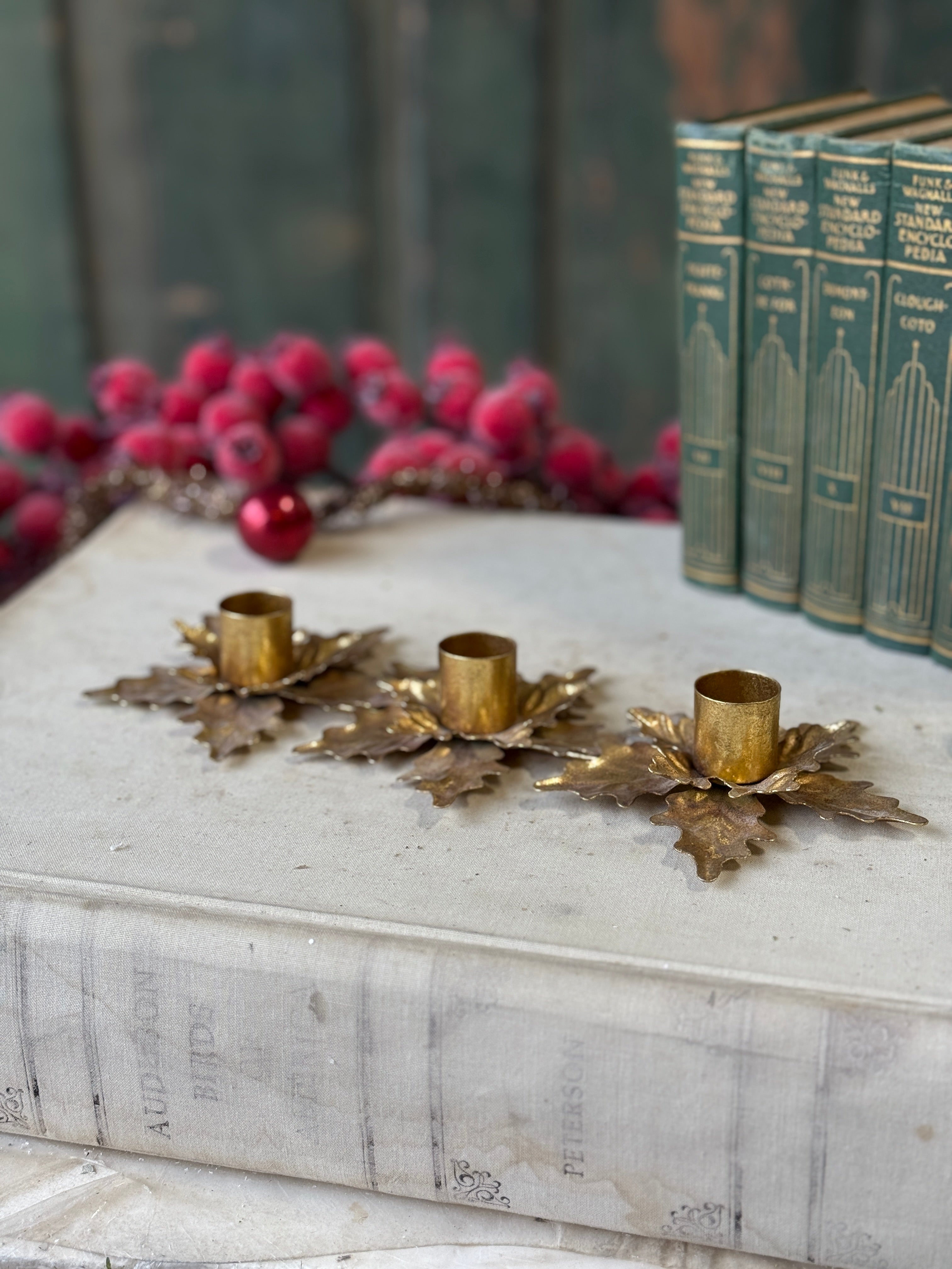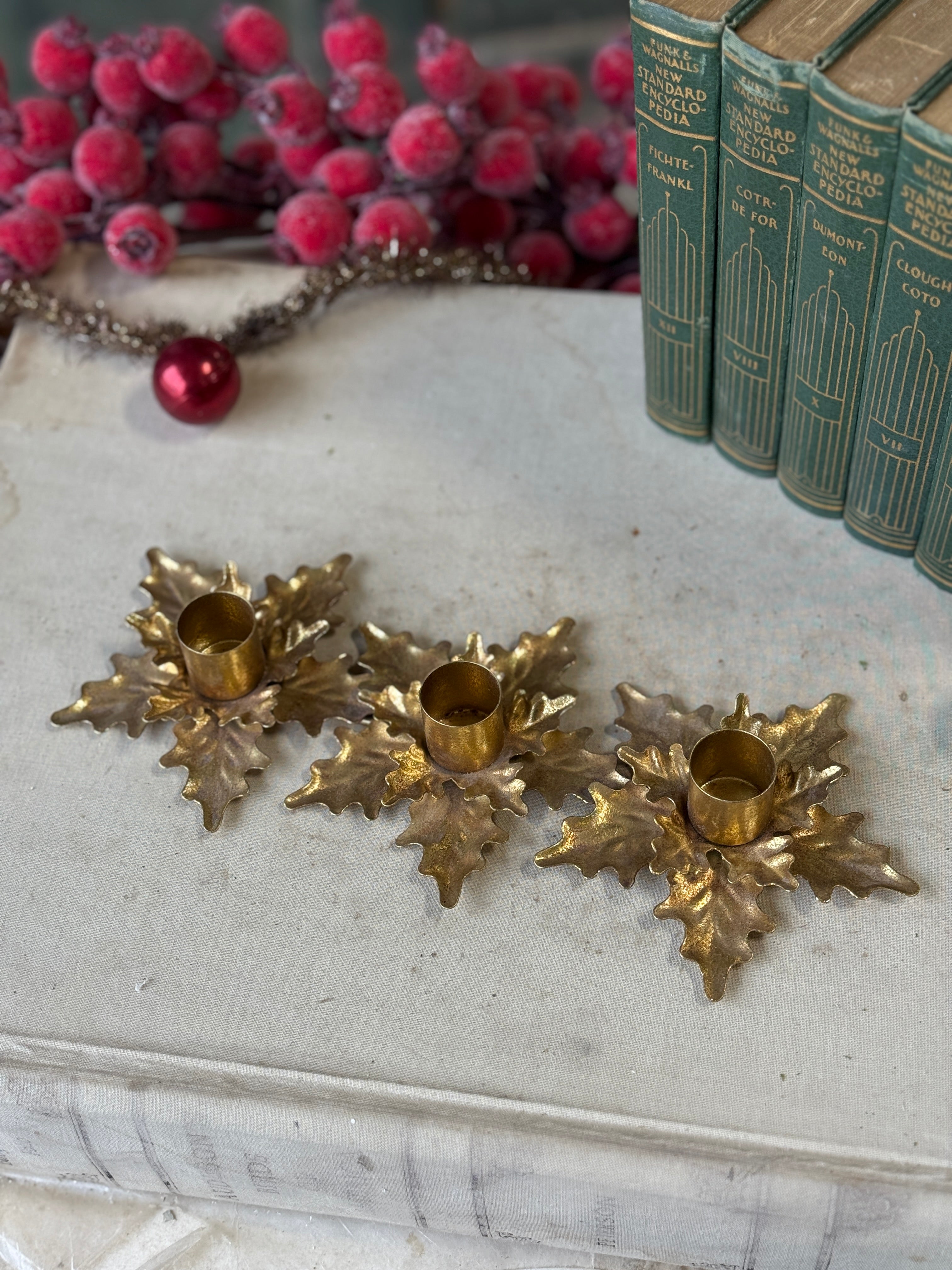 The Golden Poinsettia holders add a nostalgic touch to tablescapes and vignettes with their lovely dual rows of petals and gorgeous gilded finish. Available in two styles, a trio and a single taper option, each sold separately.