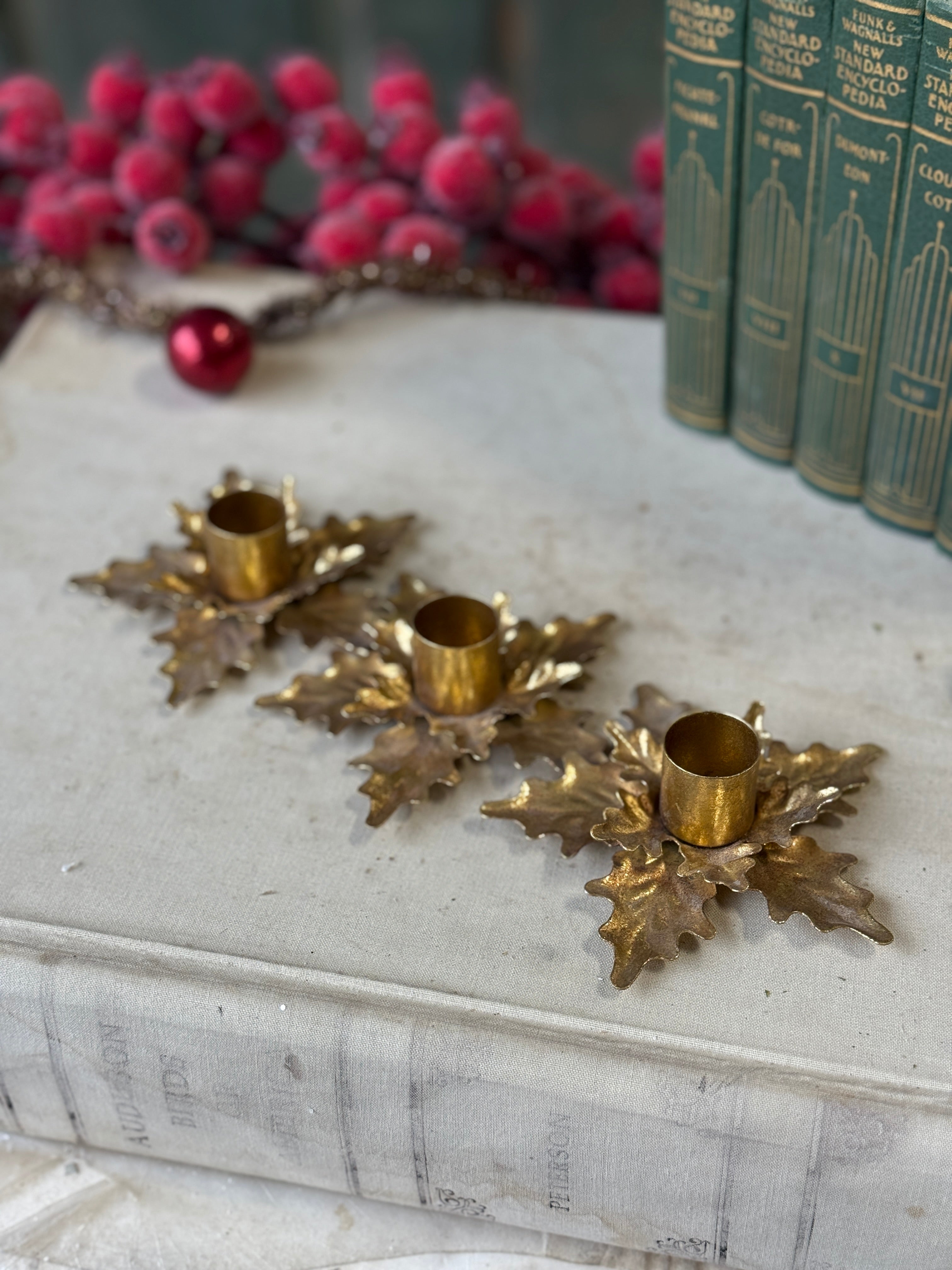 The Golden Poinsettia holders add a nostalgic touch to tablescapes and vignettes with their lovely dual rows of petals and gorgeous gilded finish. Available in two styles, a single and a trio, each sold separately.