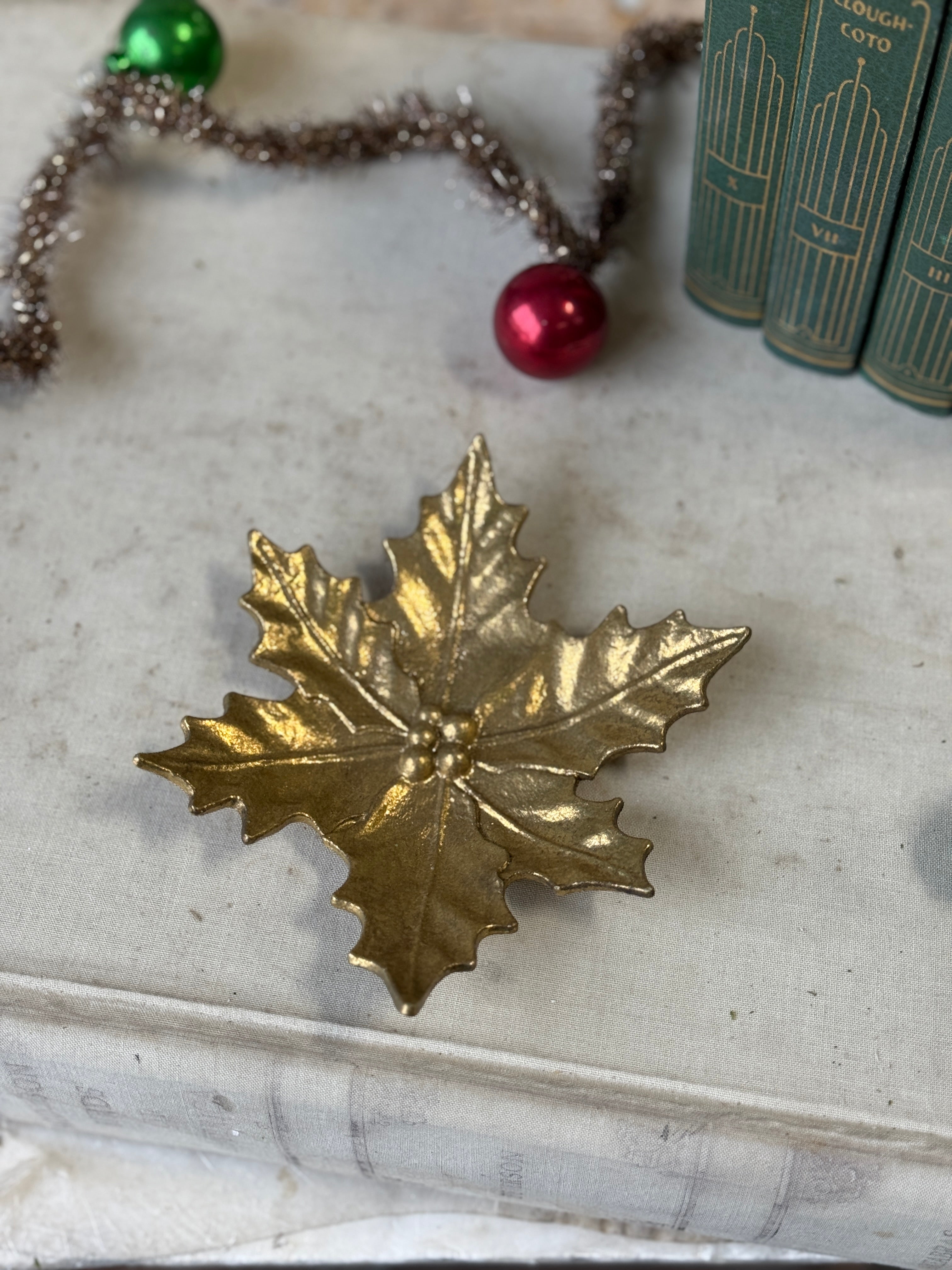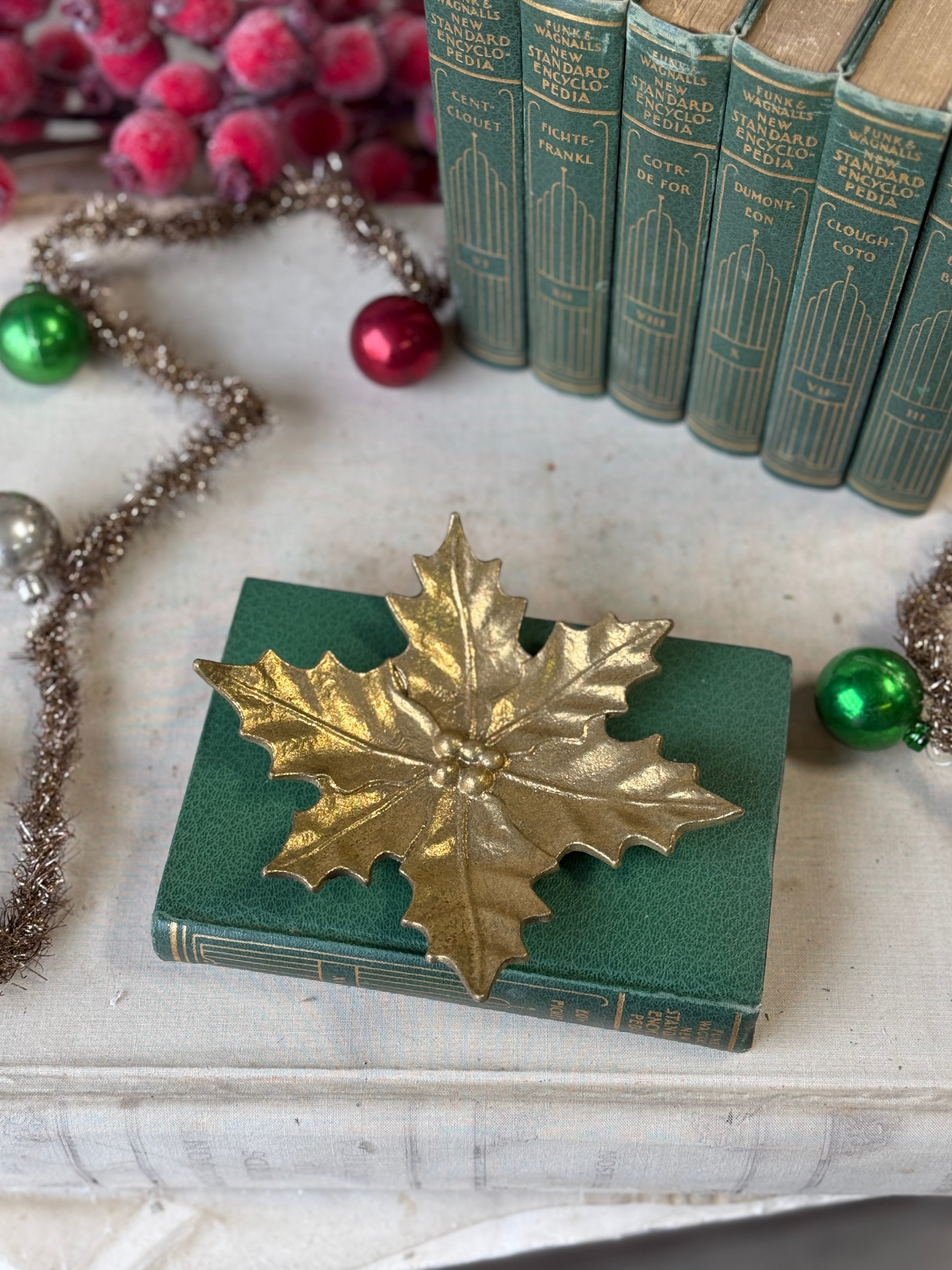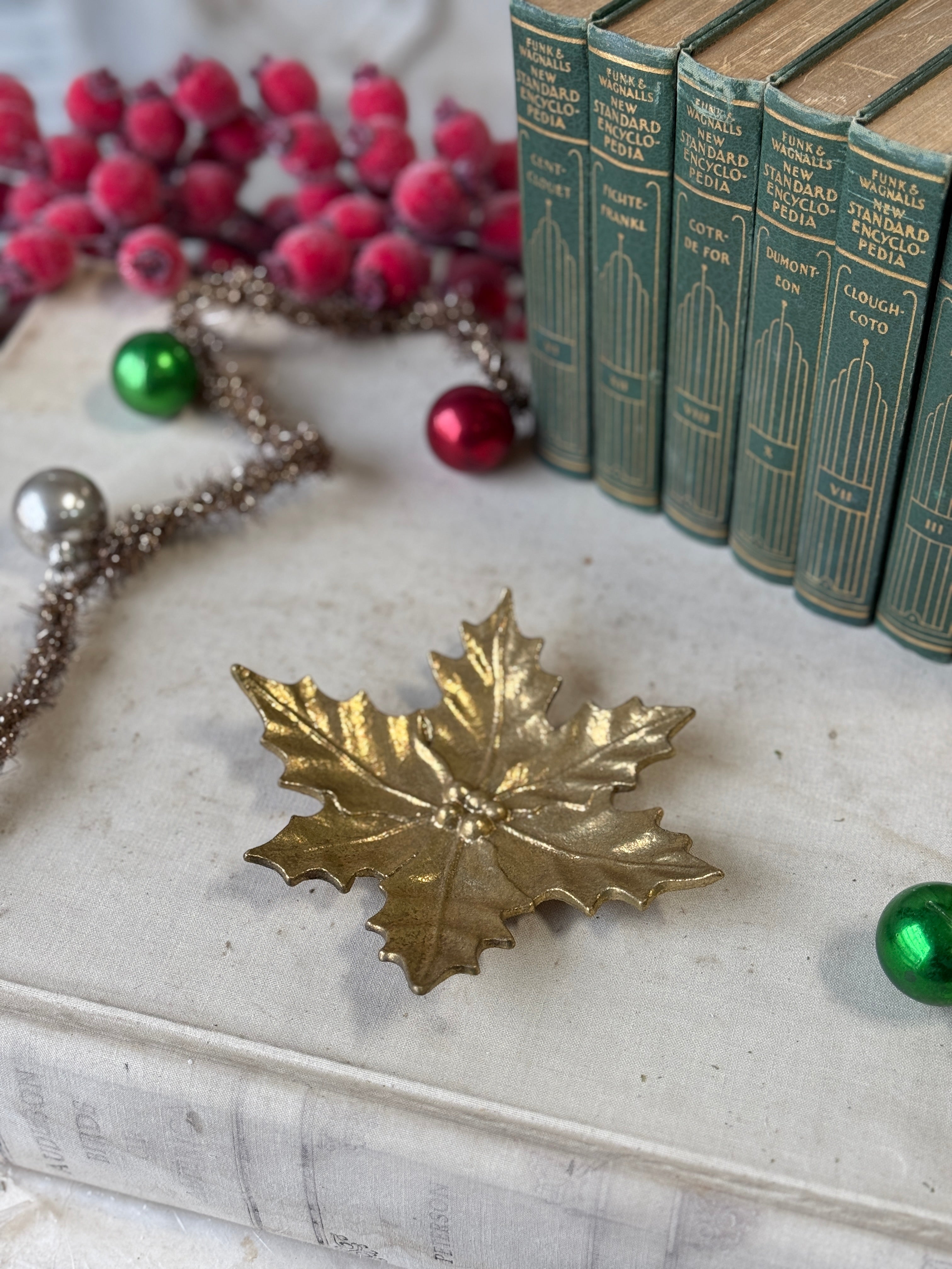 Add this lovely small poinsettia dish to any display or tablescape and elevate the charm exponentially! Its gilded finish adds an immediate dash of elegance and its small size offers a multitude of styling options.