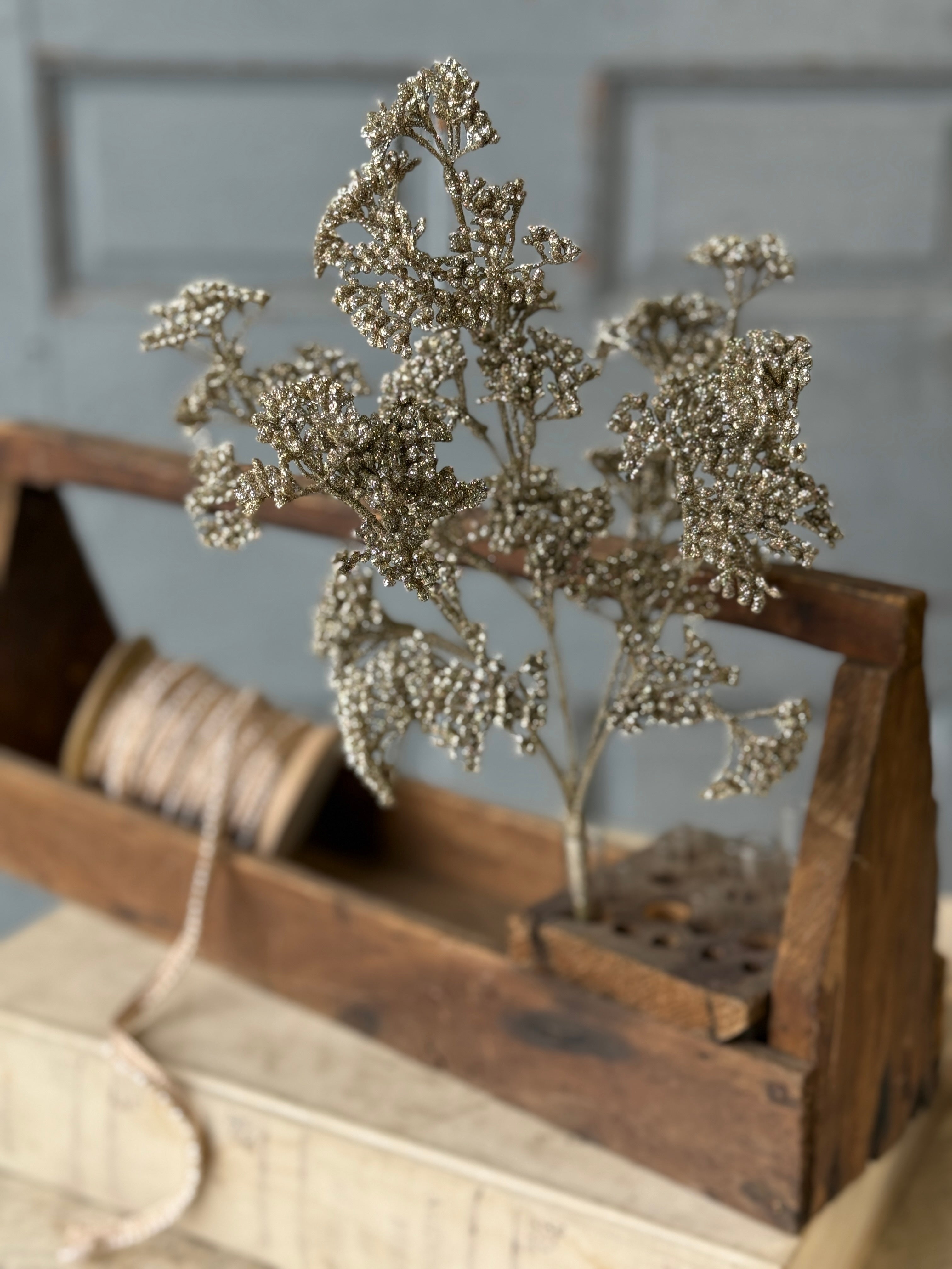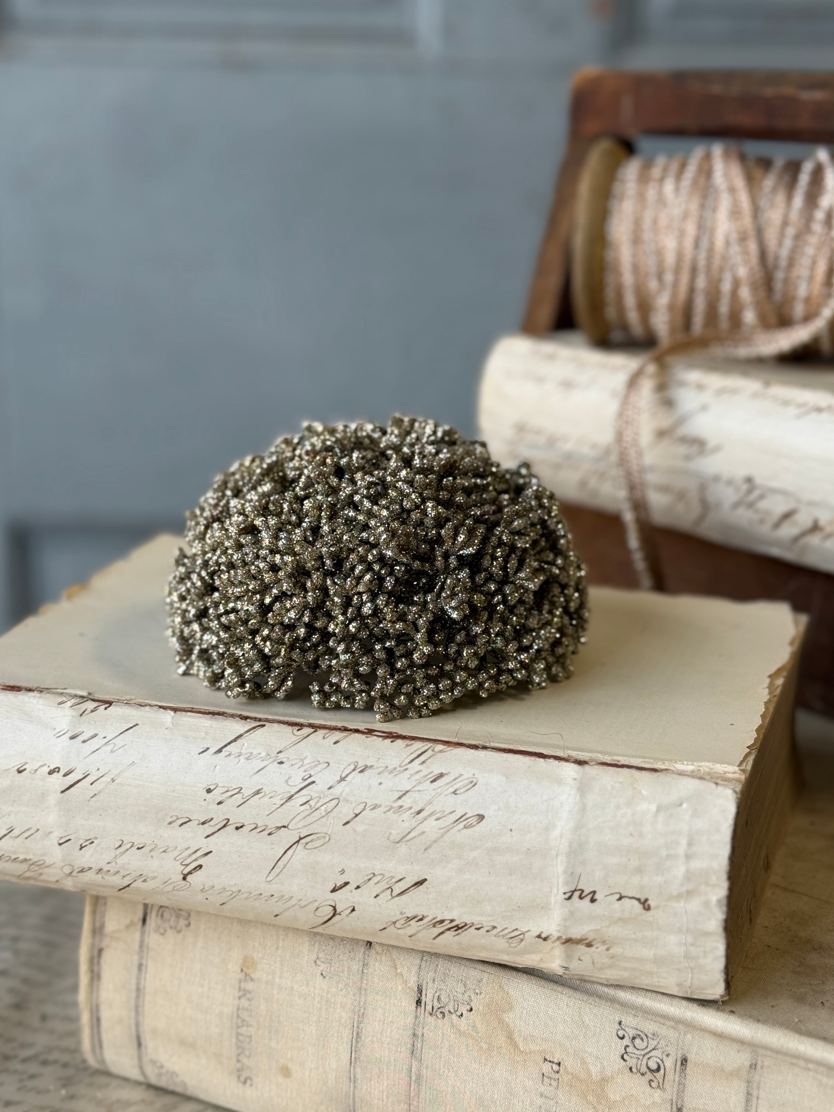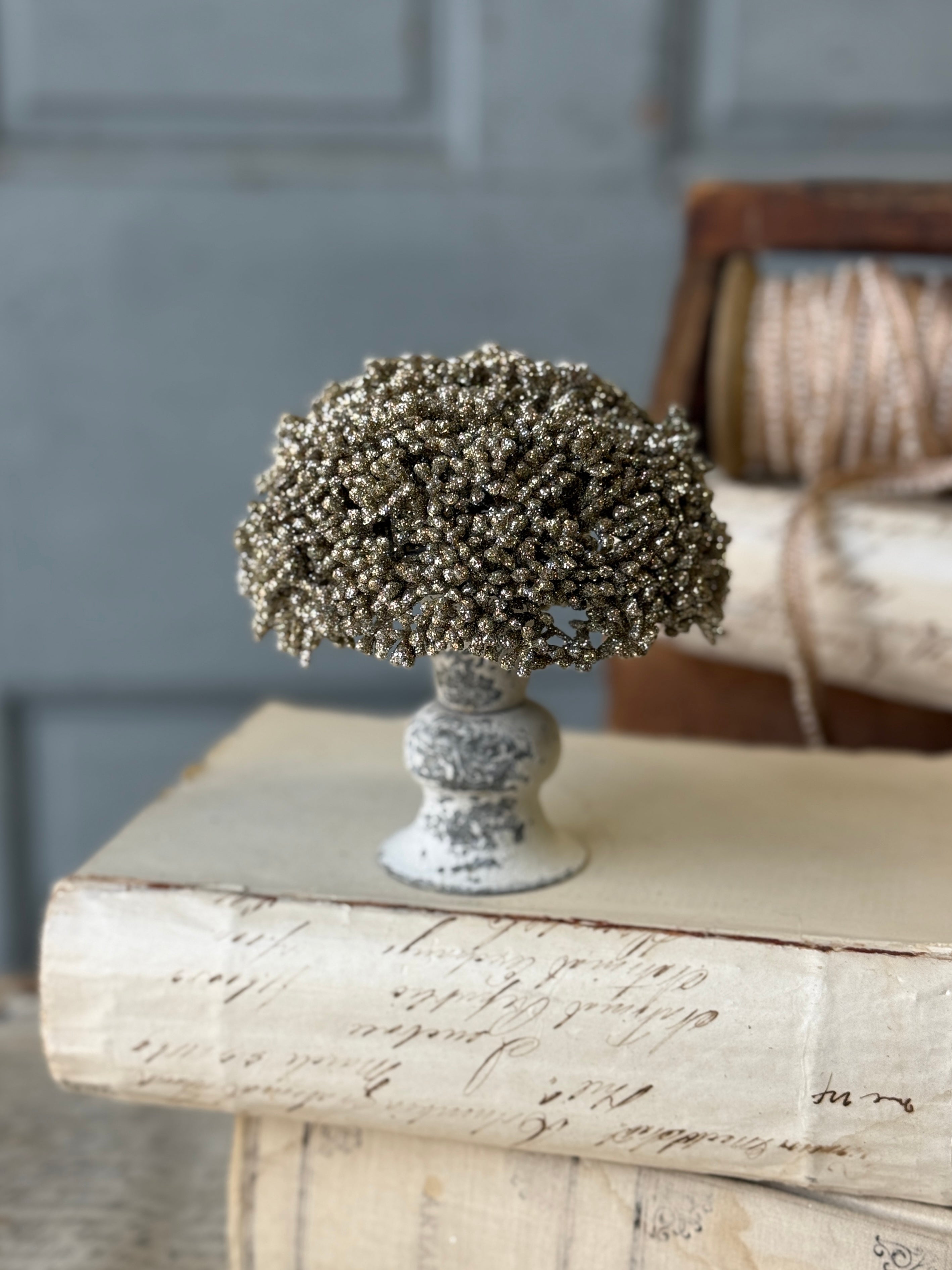 Riots of small leaves course along graceful stems topped with a sheen of mica and glitter to create a serene collection that adds just the right amount of shimmer to your displays.