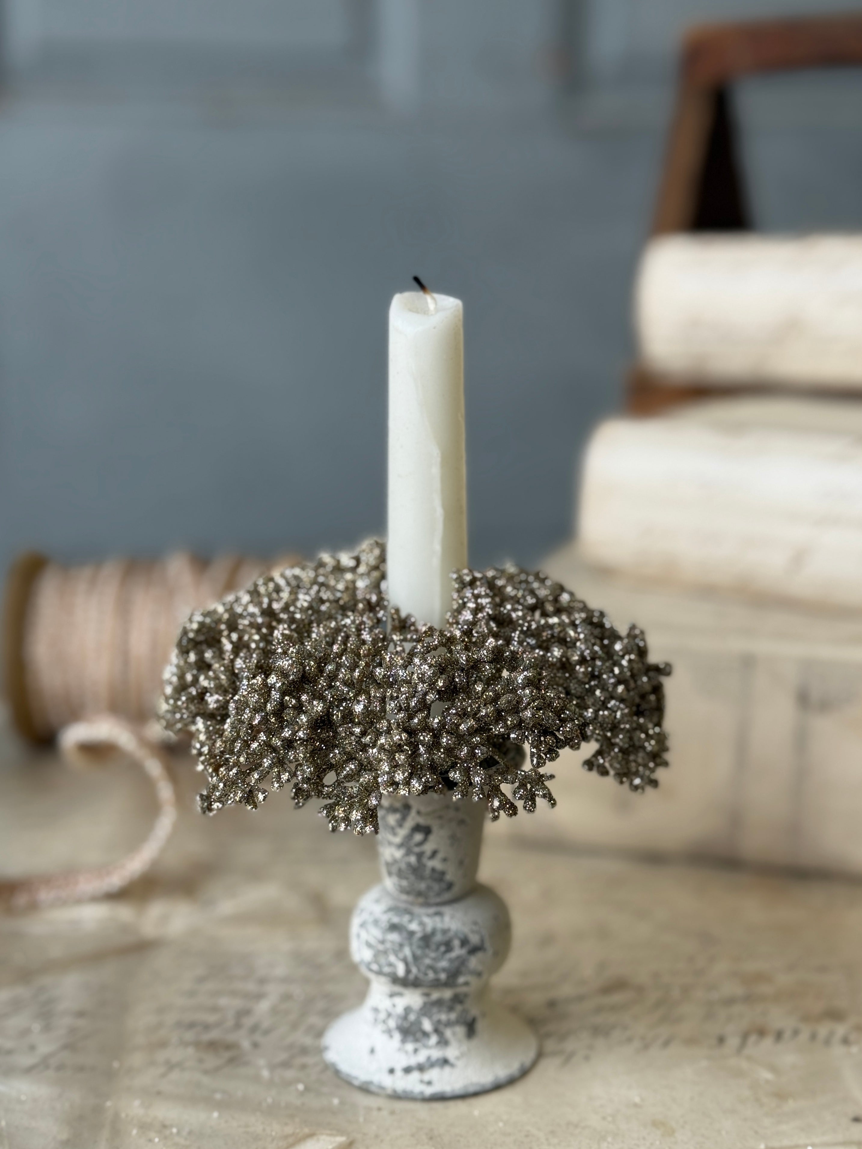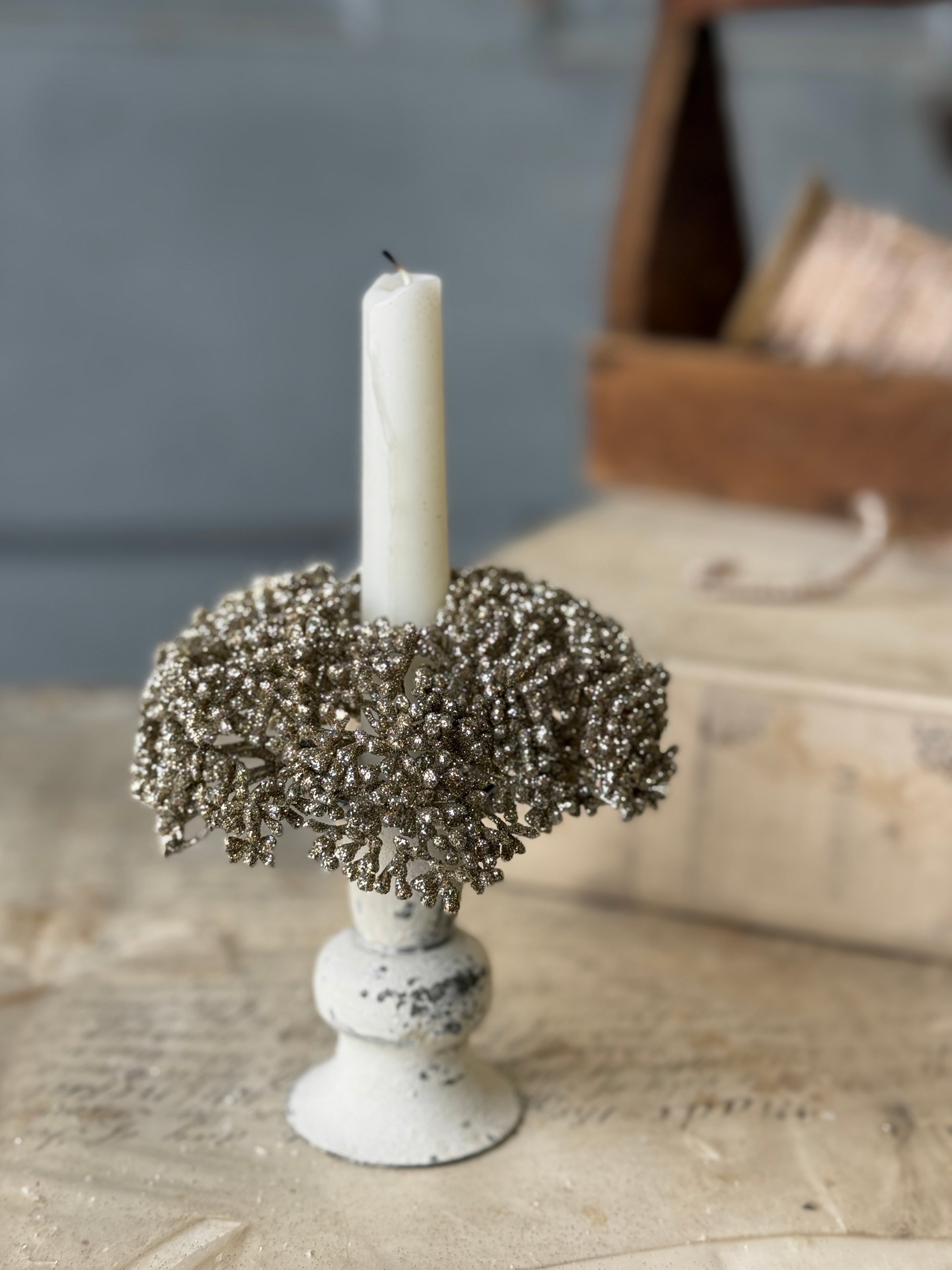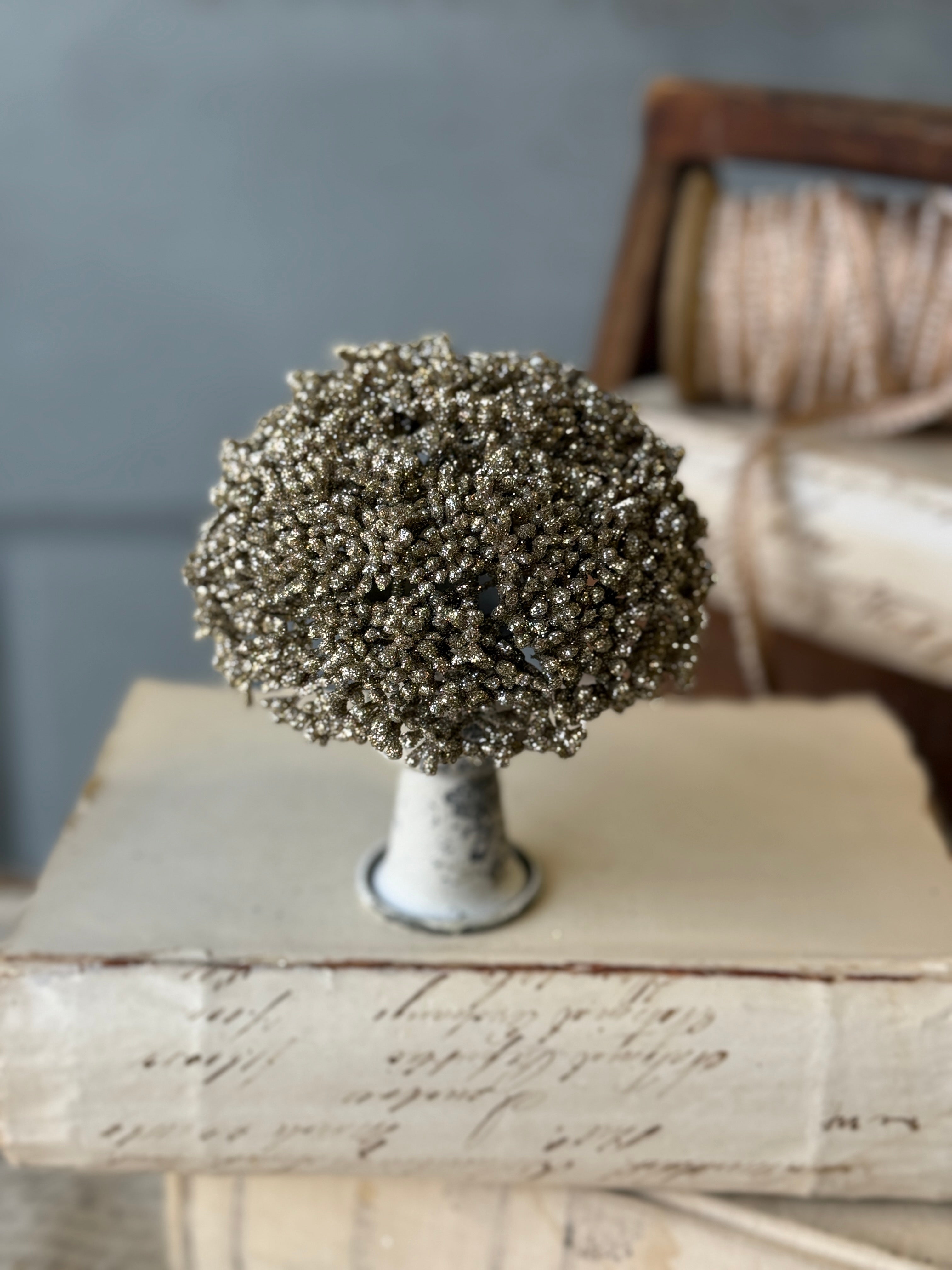 Riots of small leaves course along graceful stems topped with a sheen of mica and glitter to create a serene collection that adds just the right amount of shimmer to your displays.