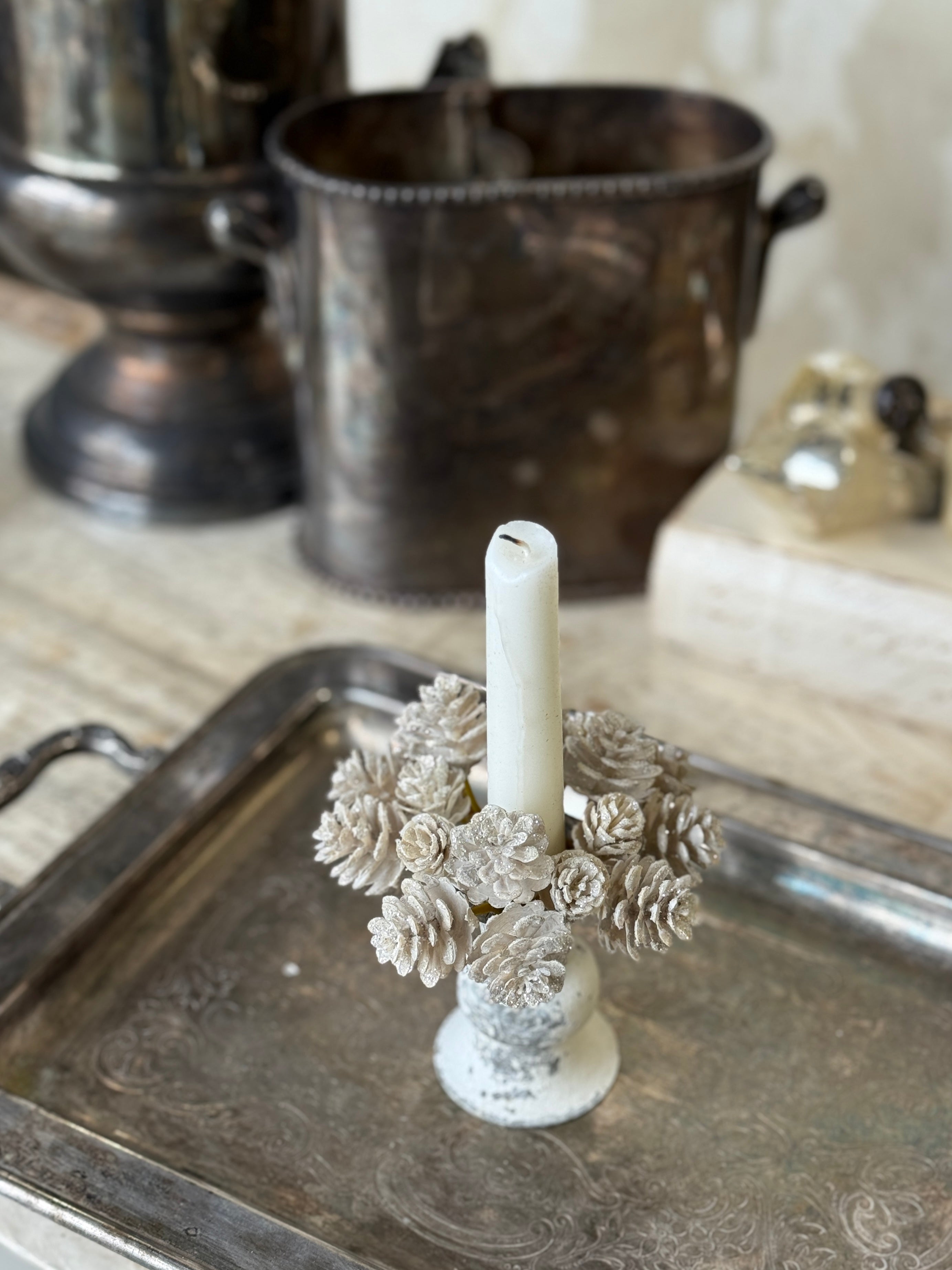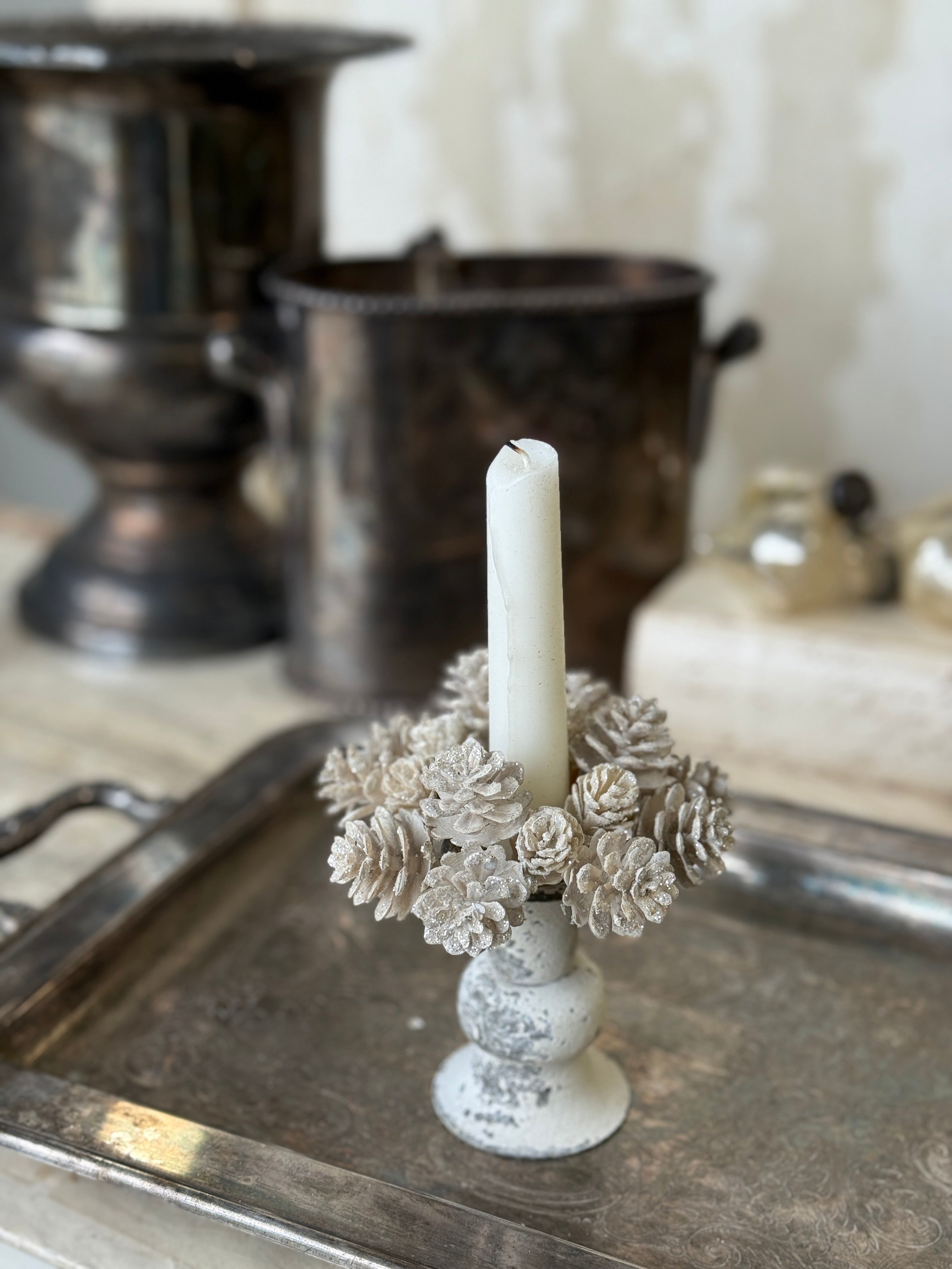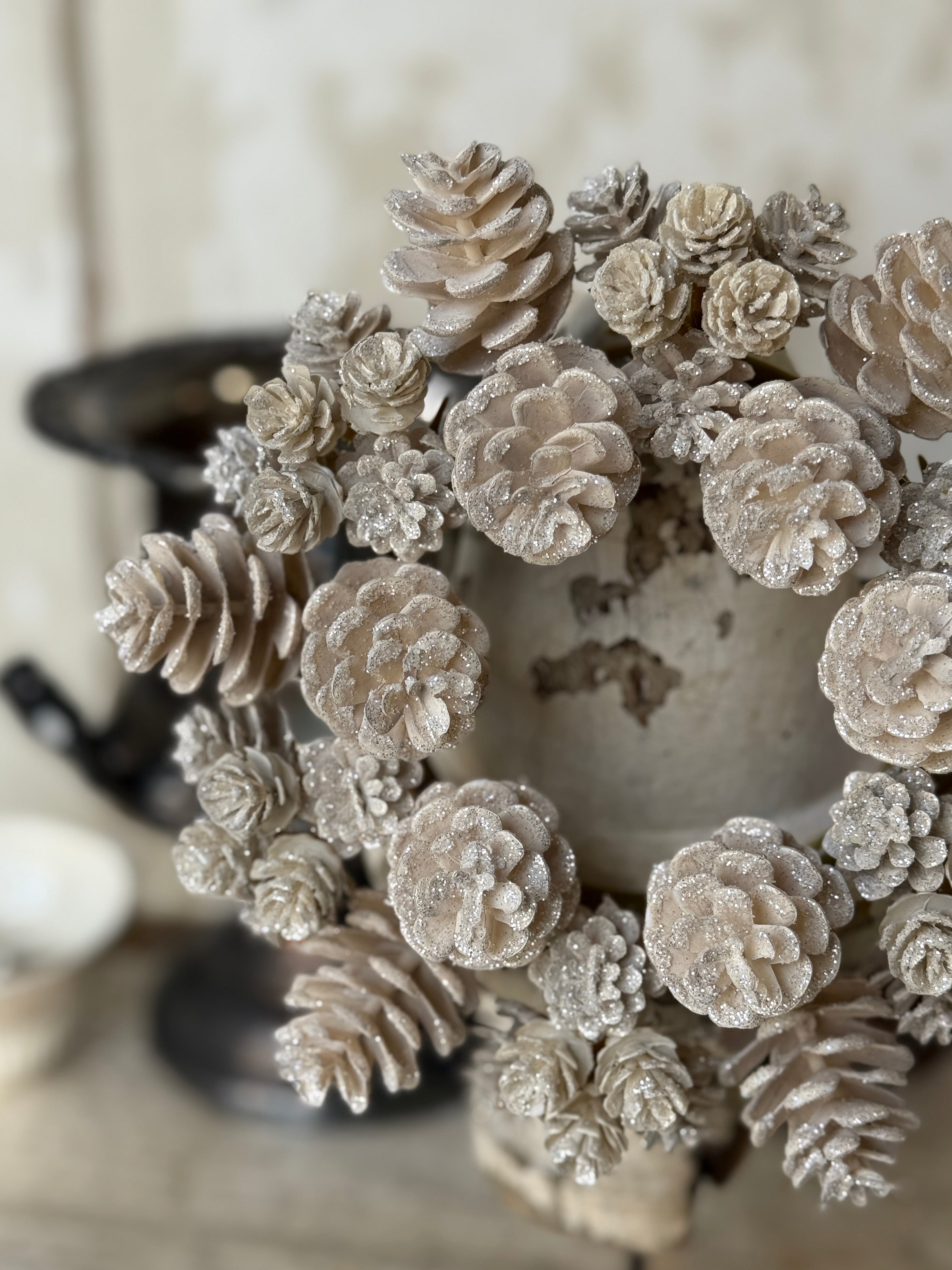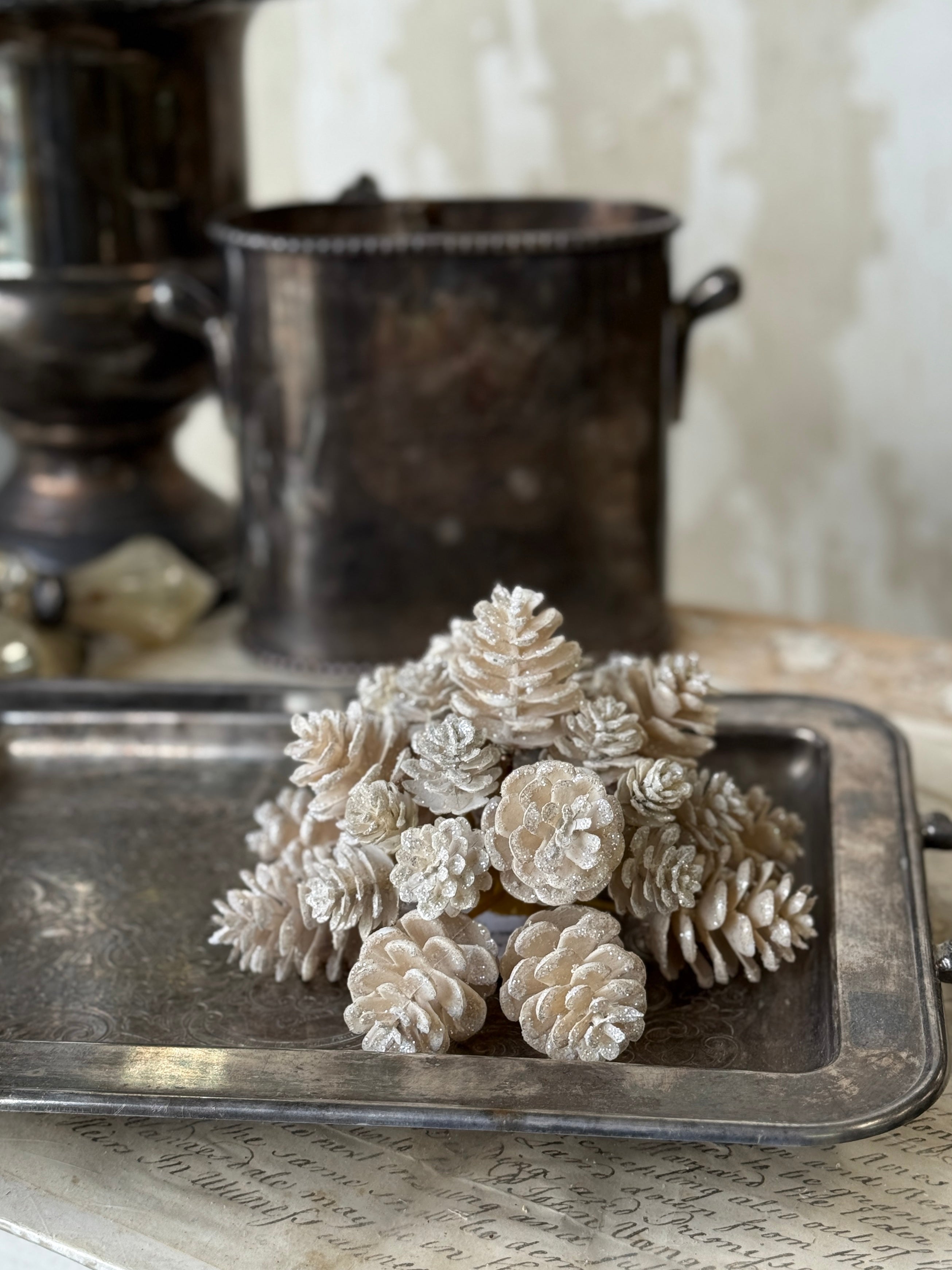 Glittering ashen pine cones add an air of wintery elegance to any display. Pairs effortlessly with all types of decor.