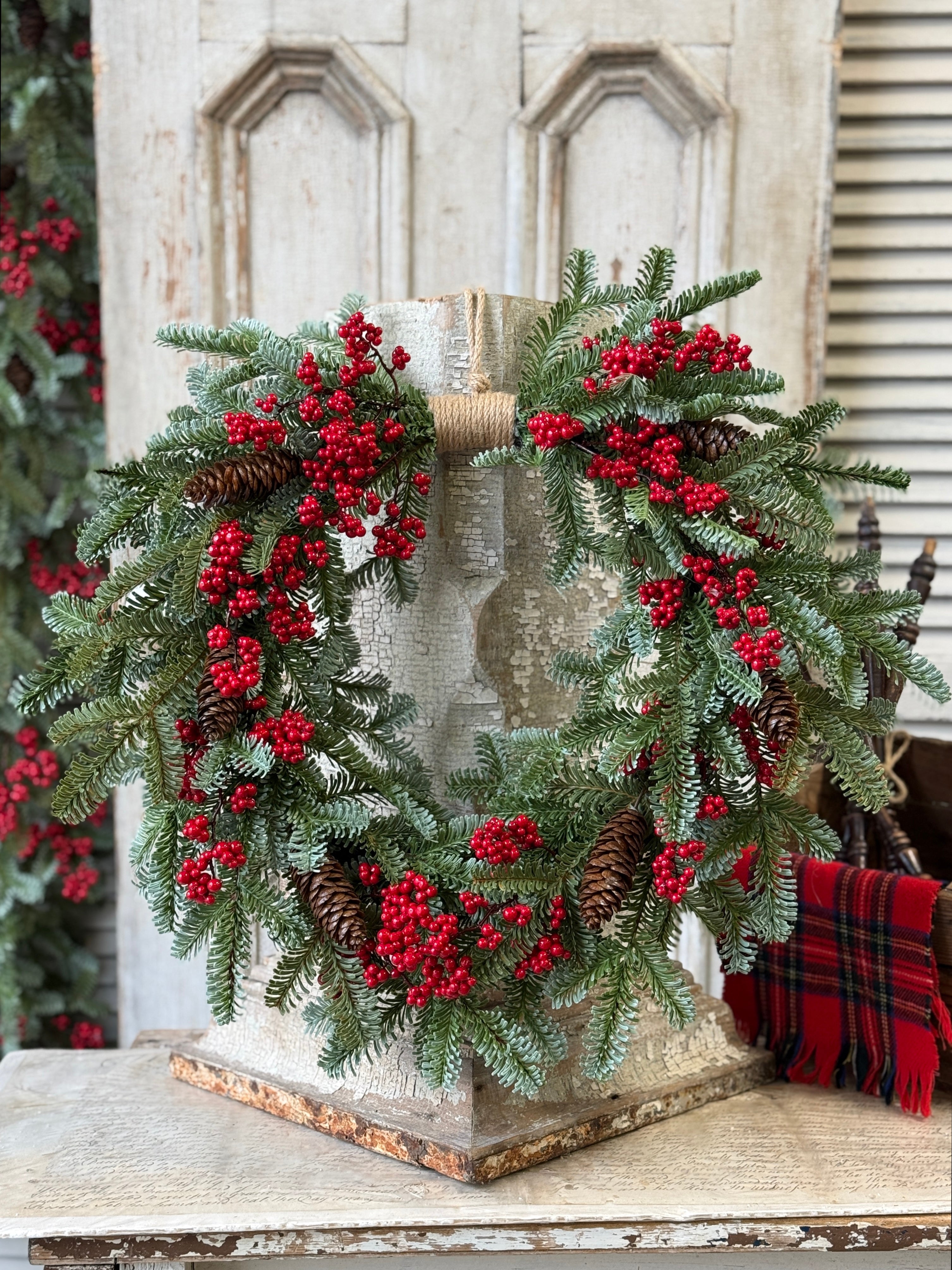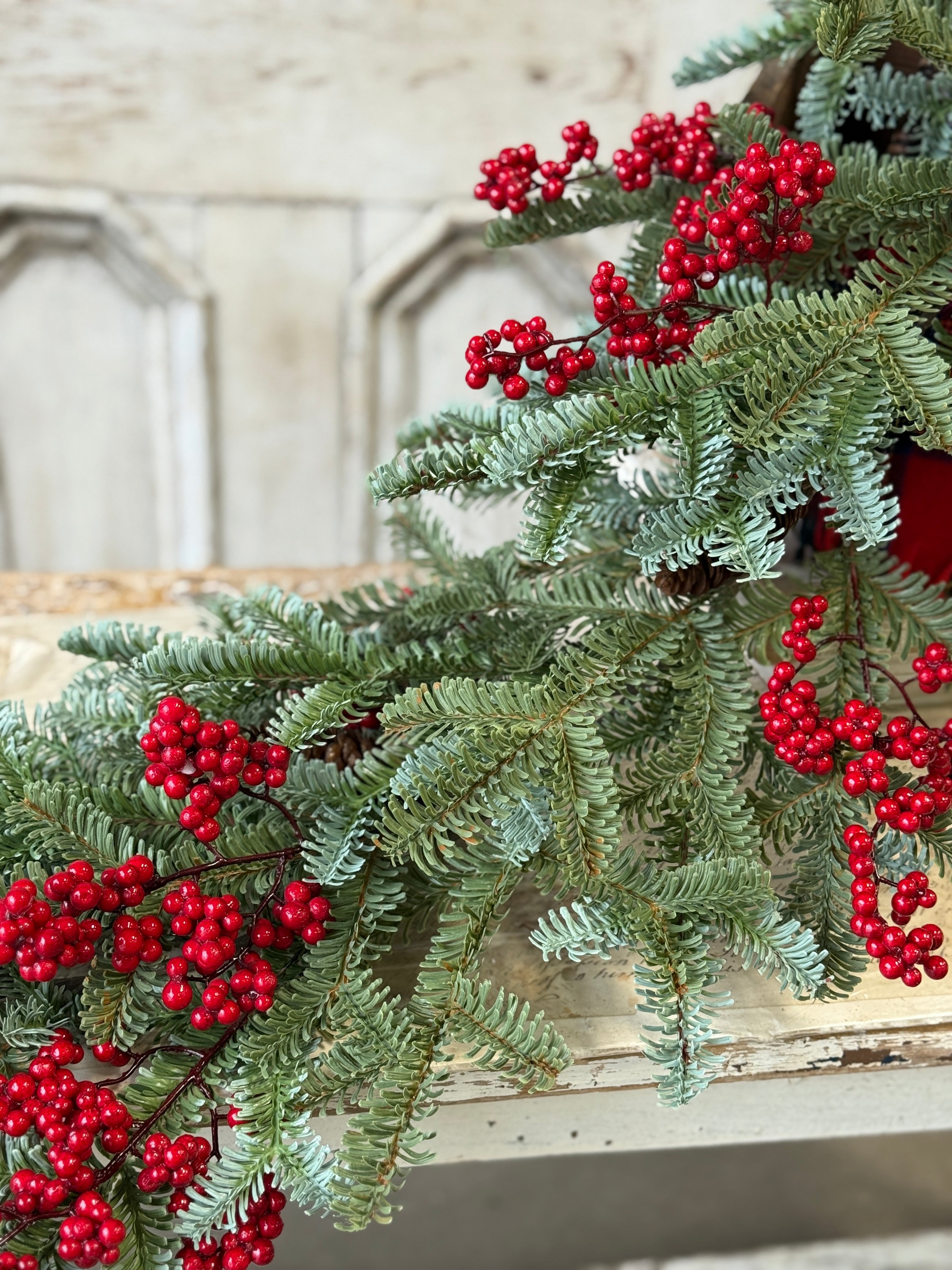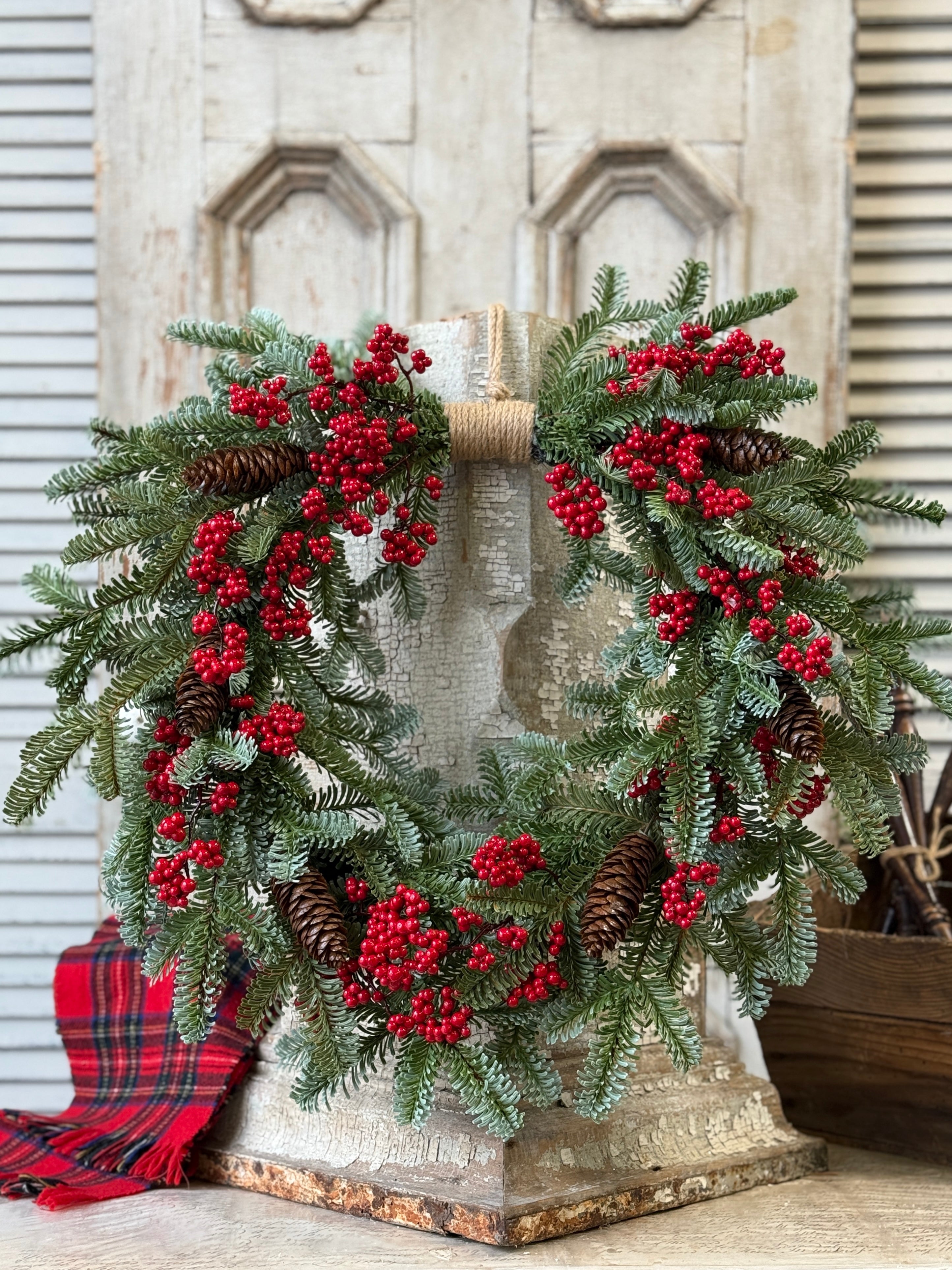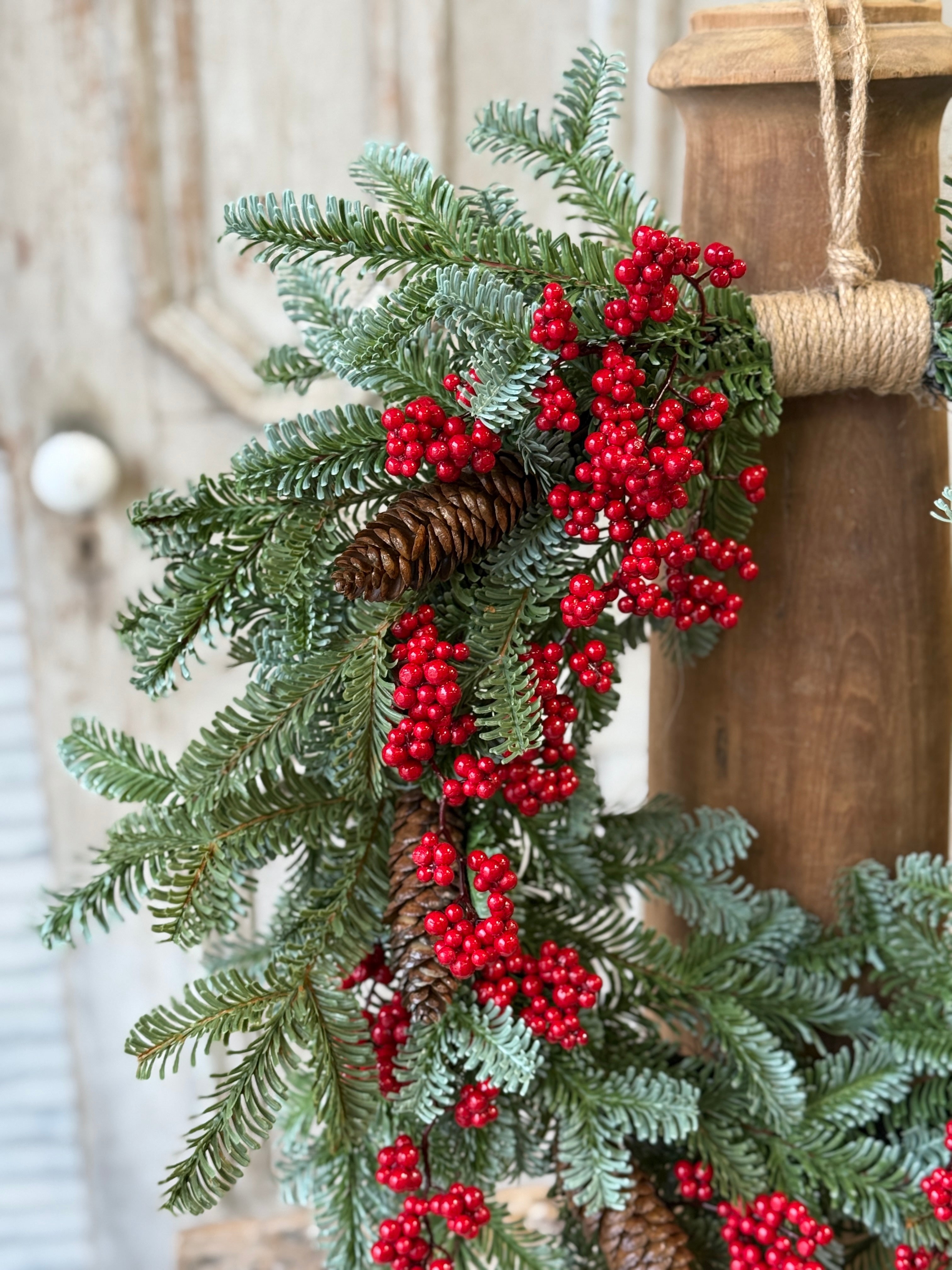 A wonderful collection of spruce peppered with sprigs of red berries and dashed with petite pine cones.