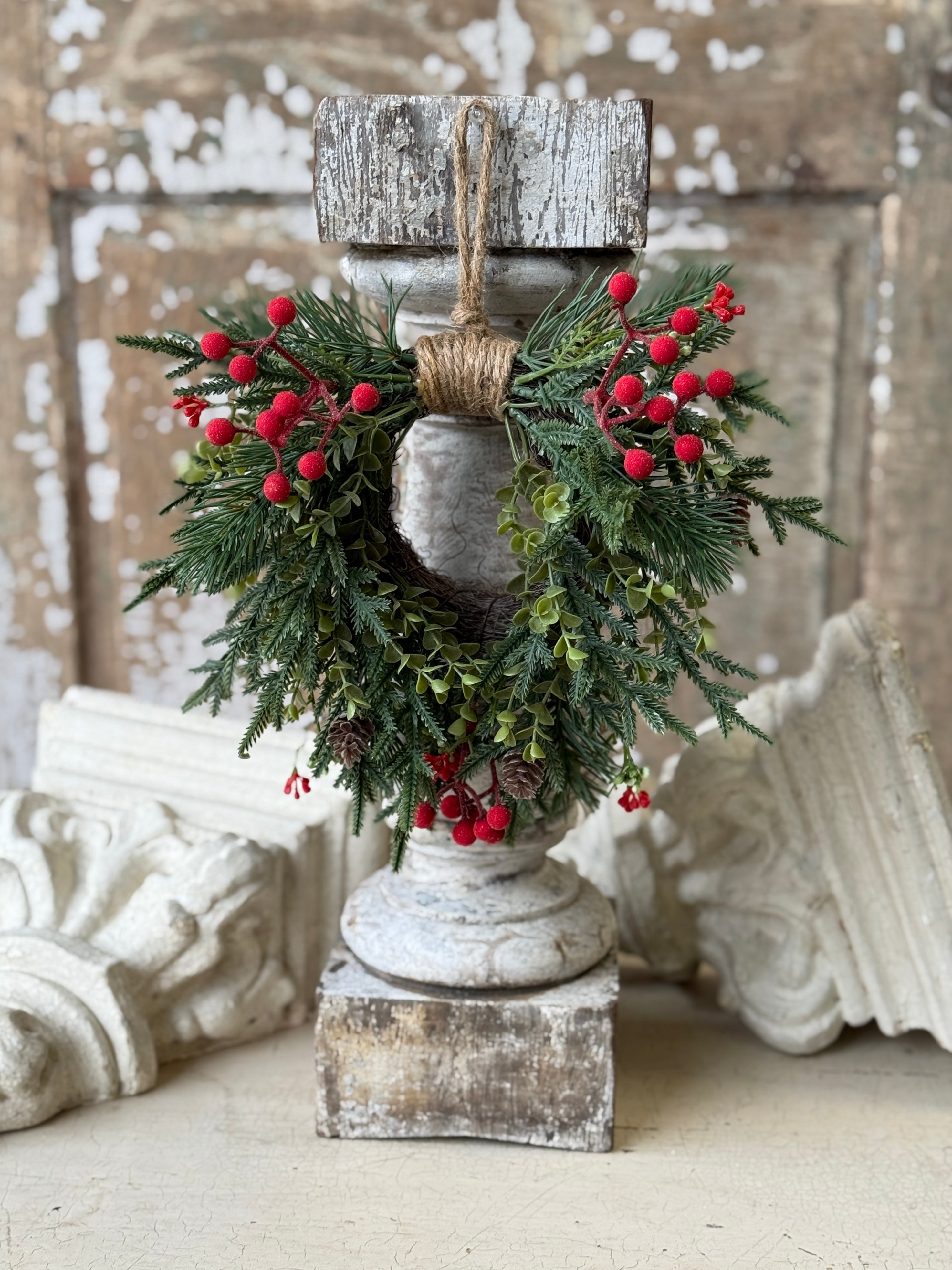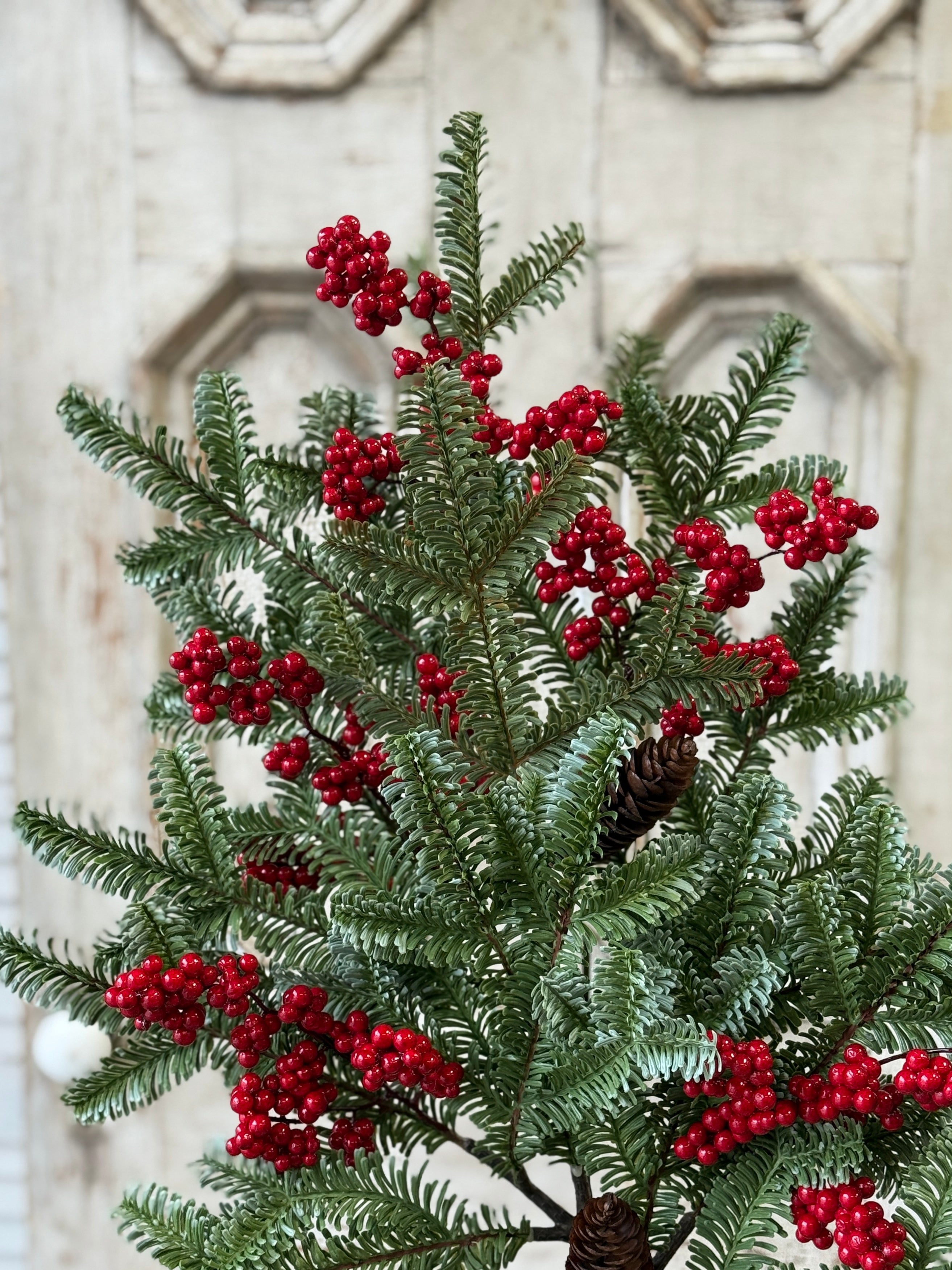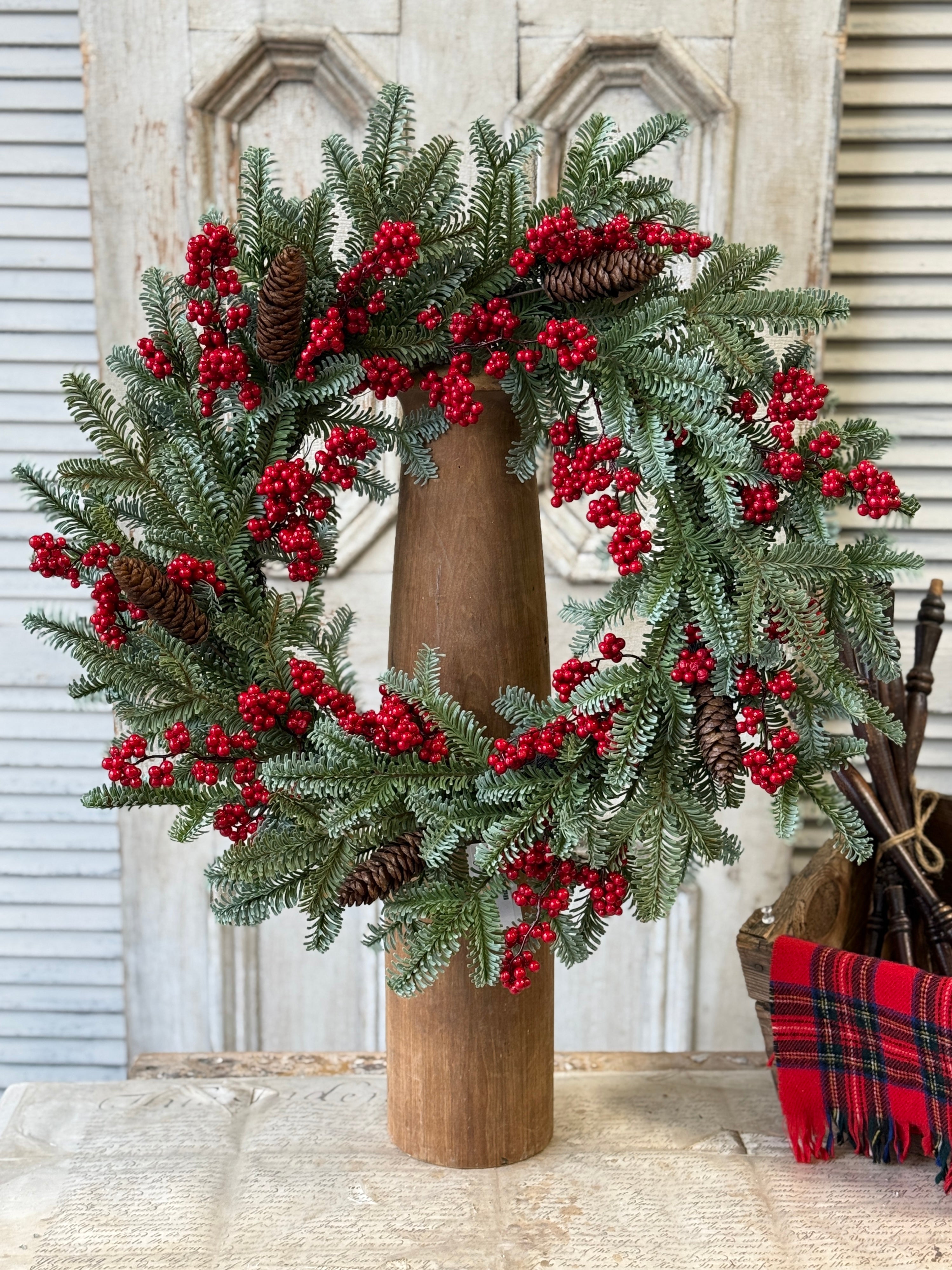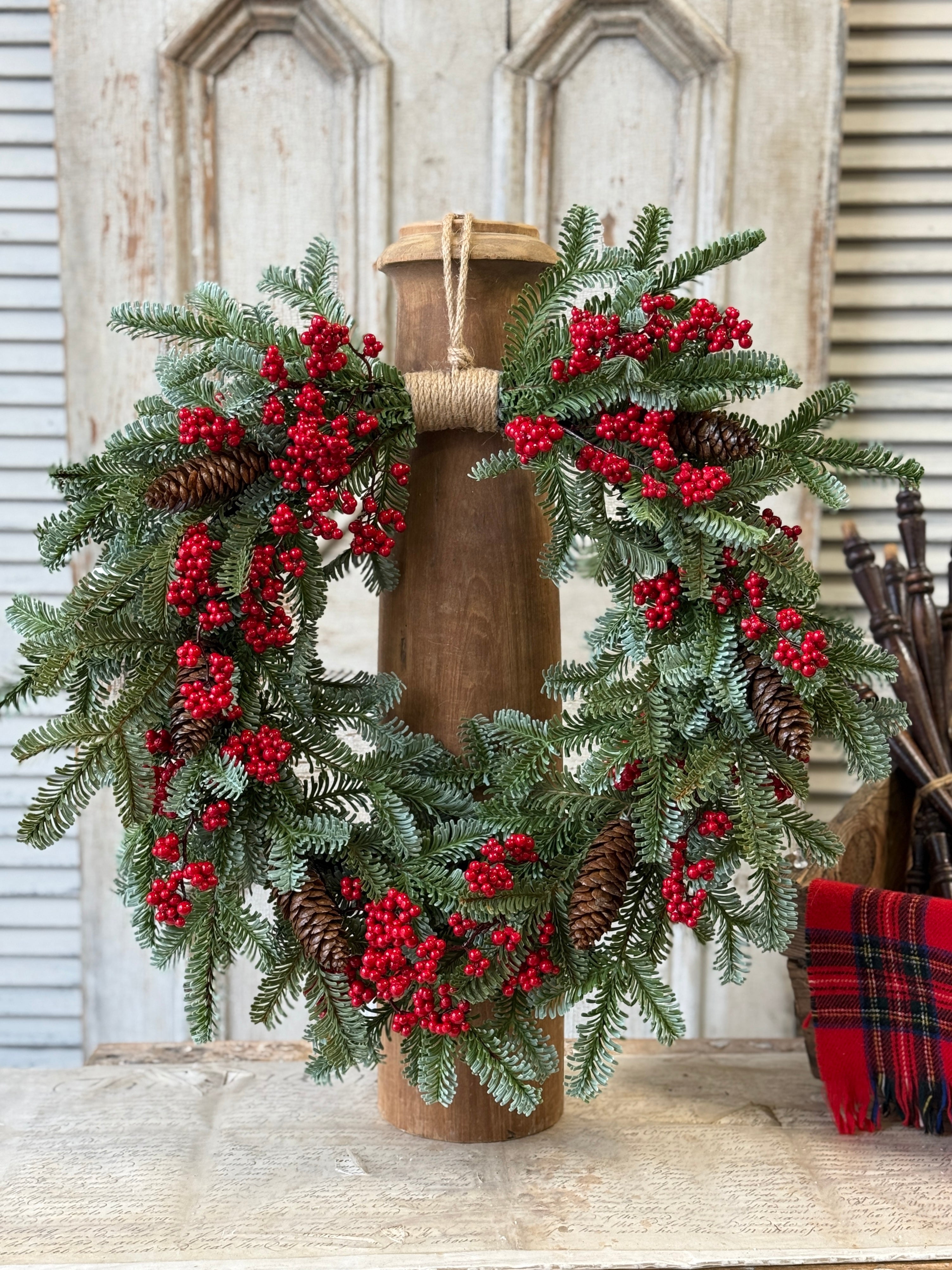 A wonderful collection of spruce peppered with sprigs of red berries and dashed with petite pine cones.