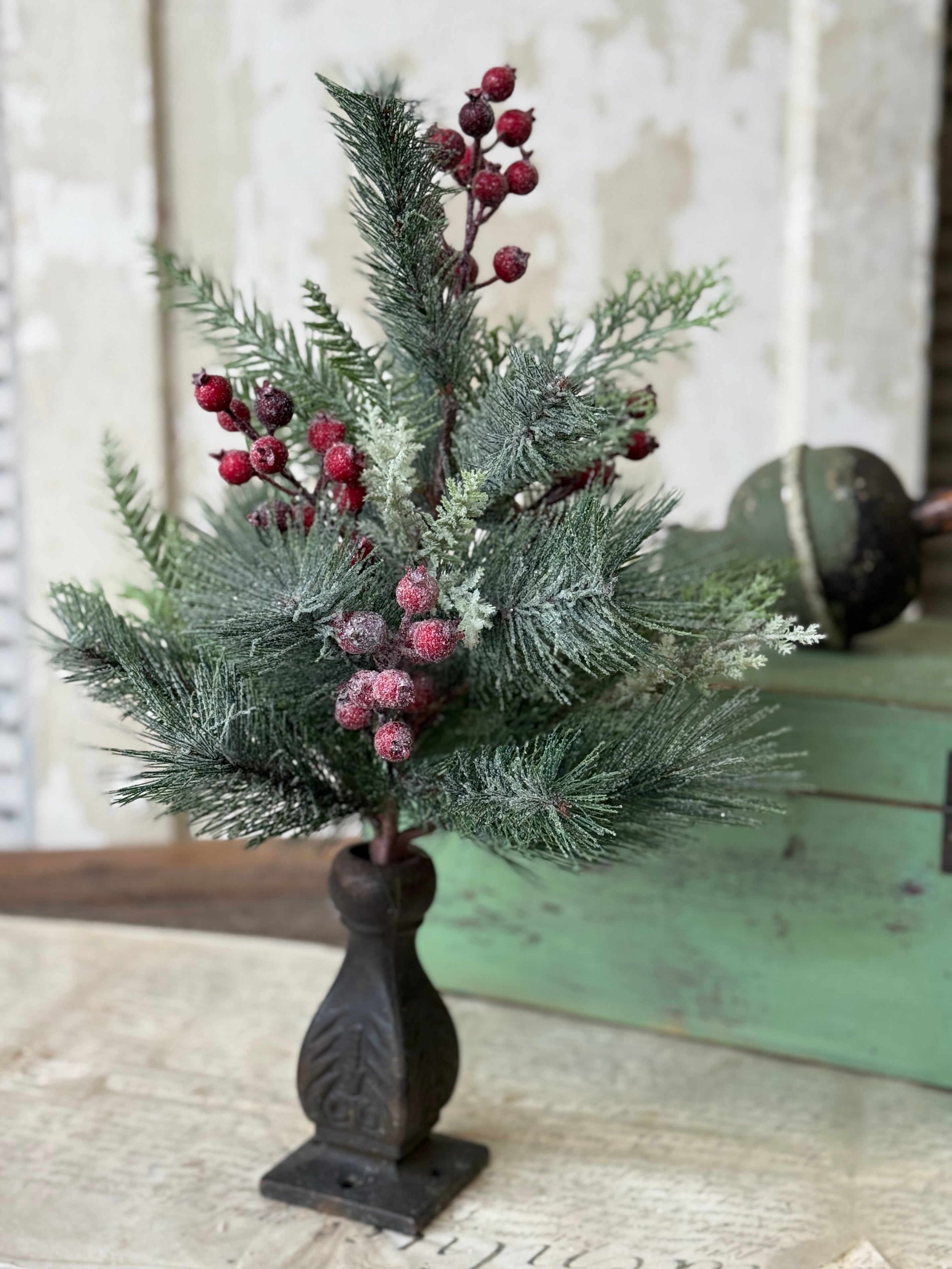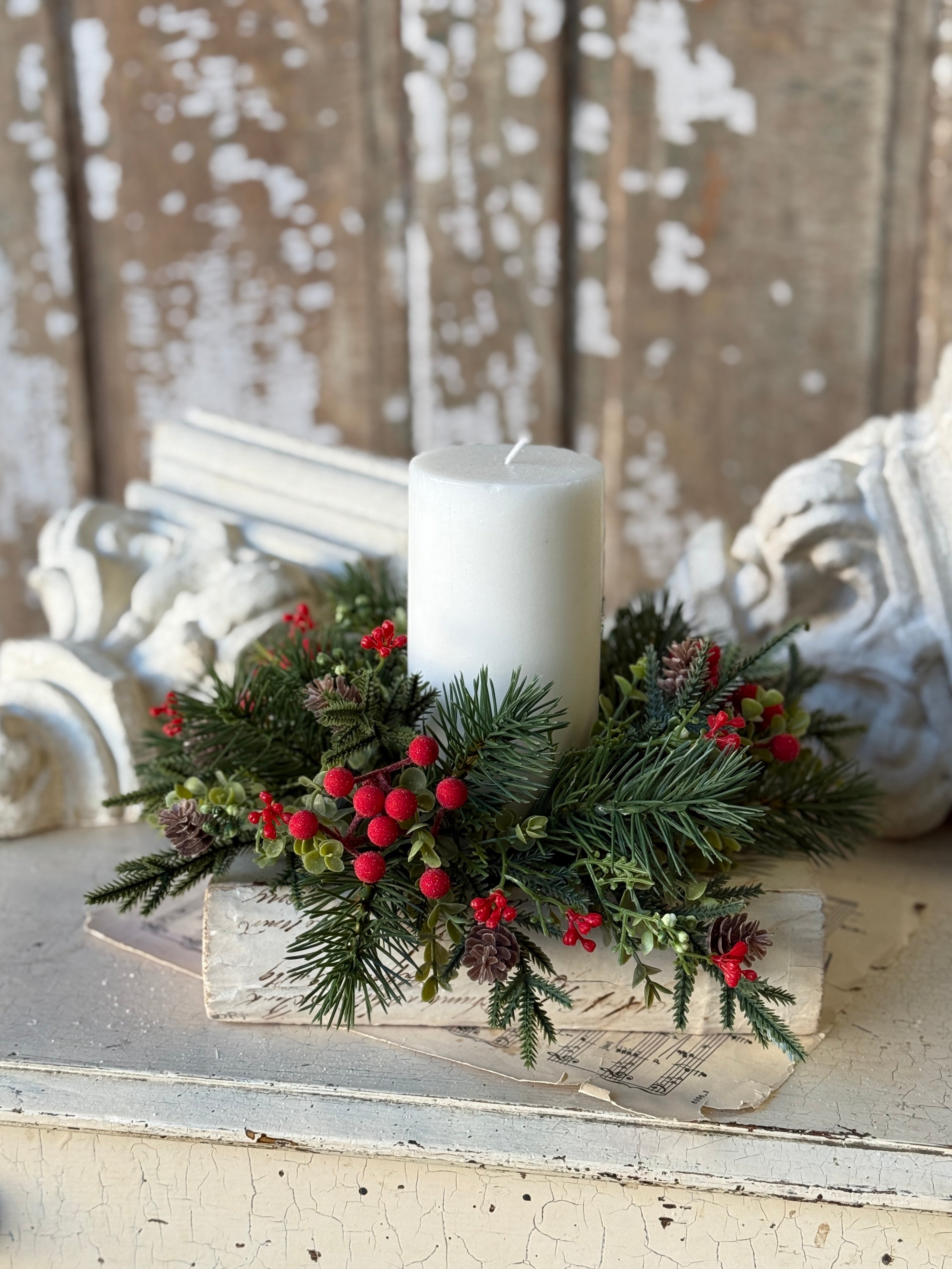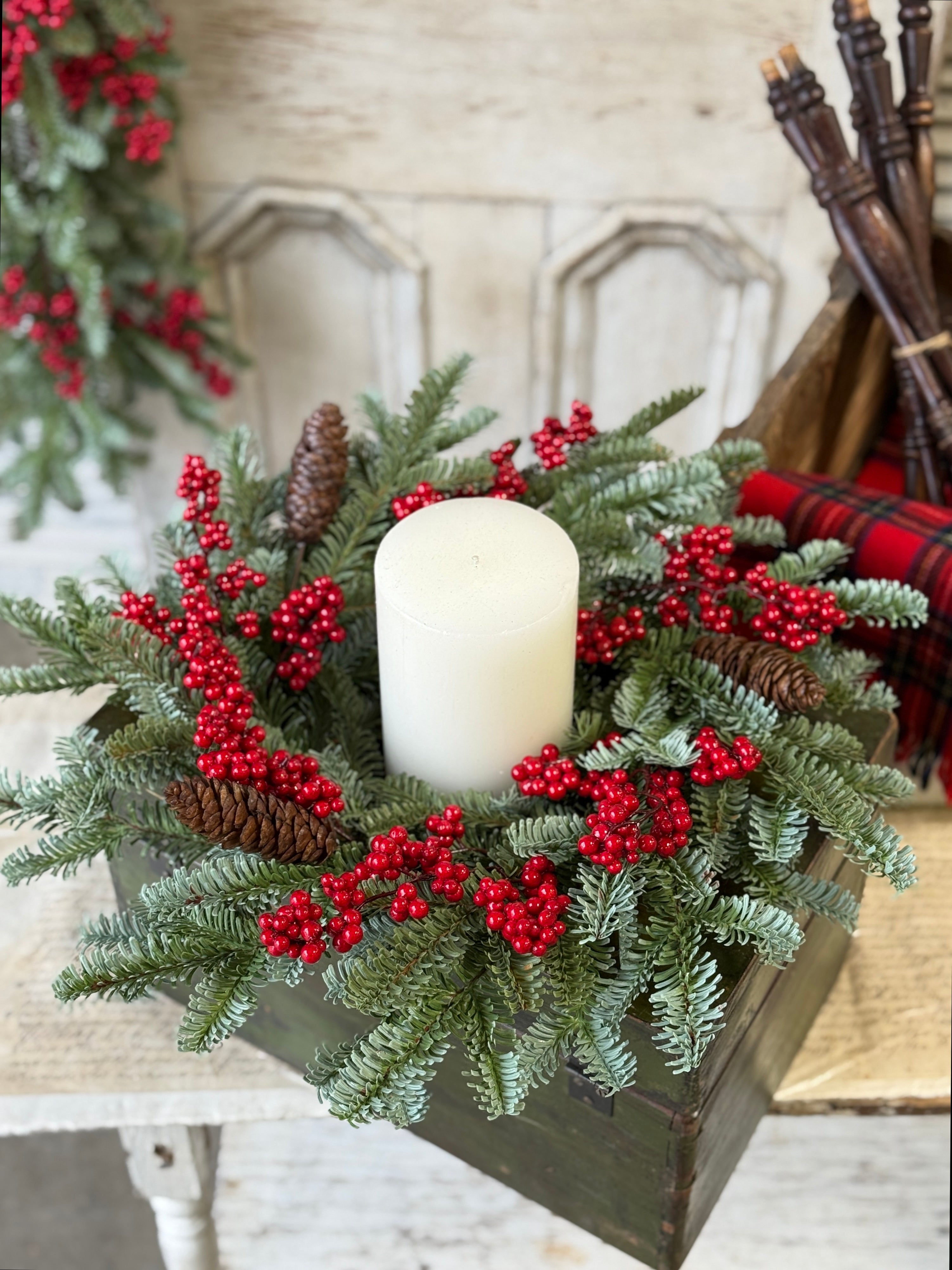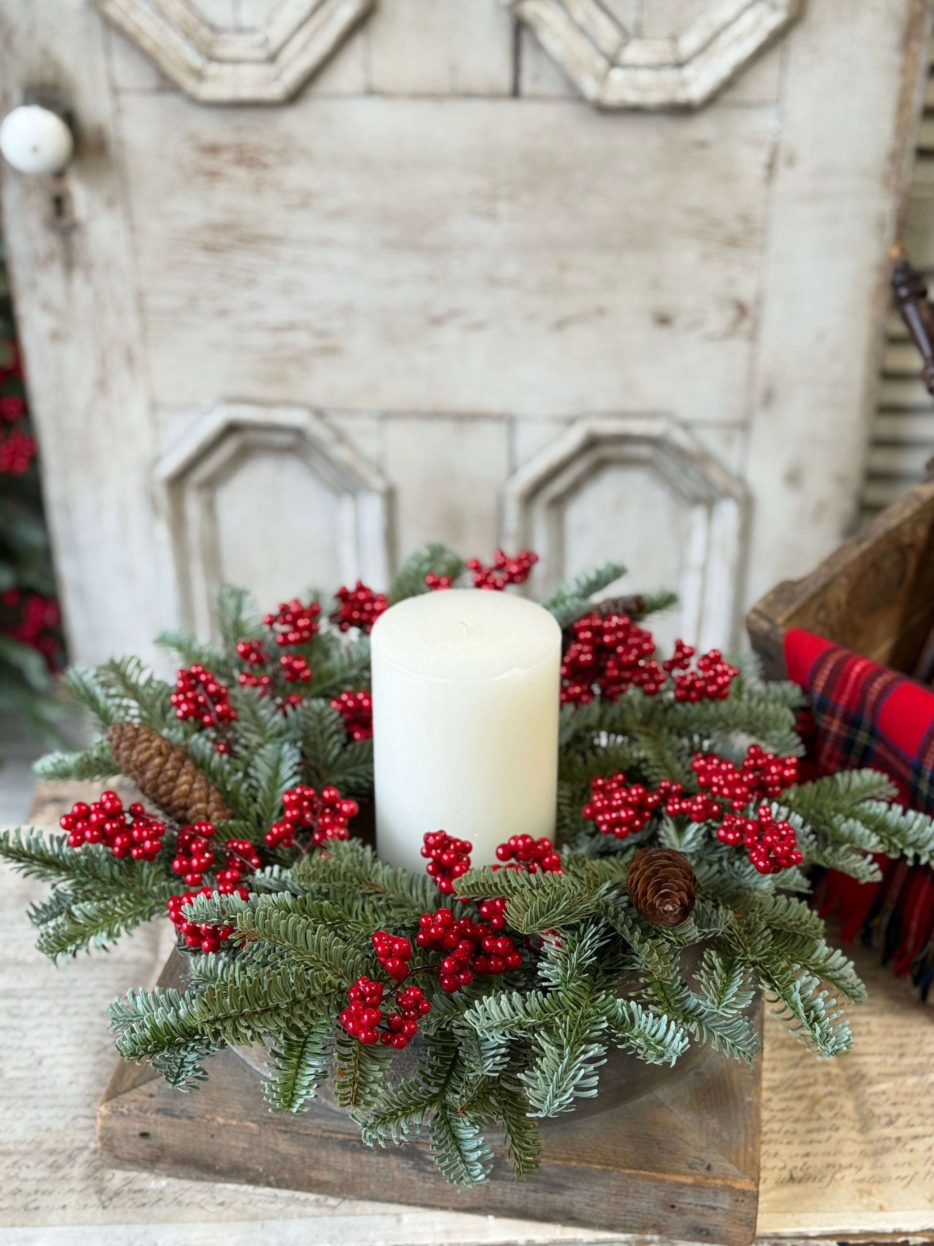 The frosty mixed greenery in this collection sets the stage for eye catching clusters of berries and petite pine cones. Has a wonderfully wintery feel!