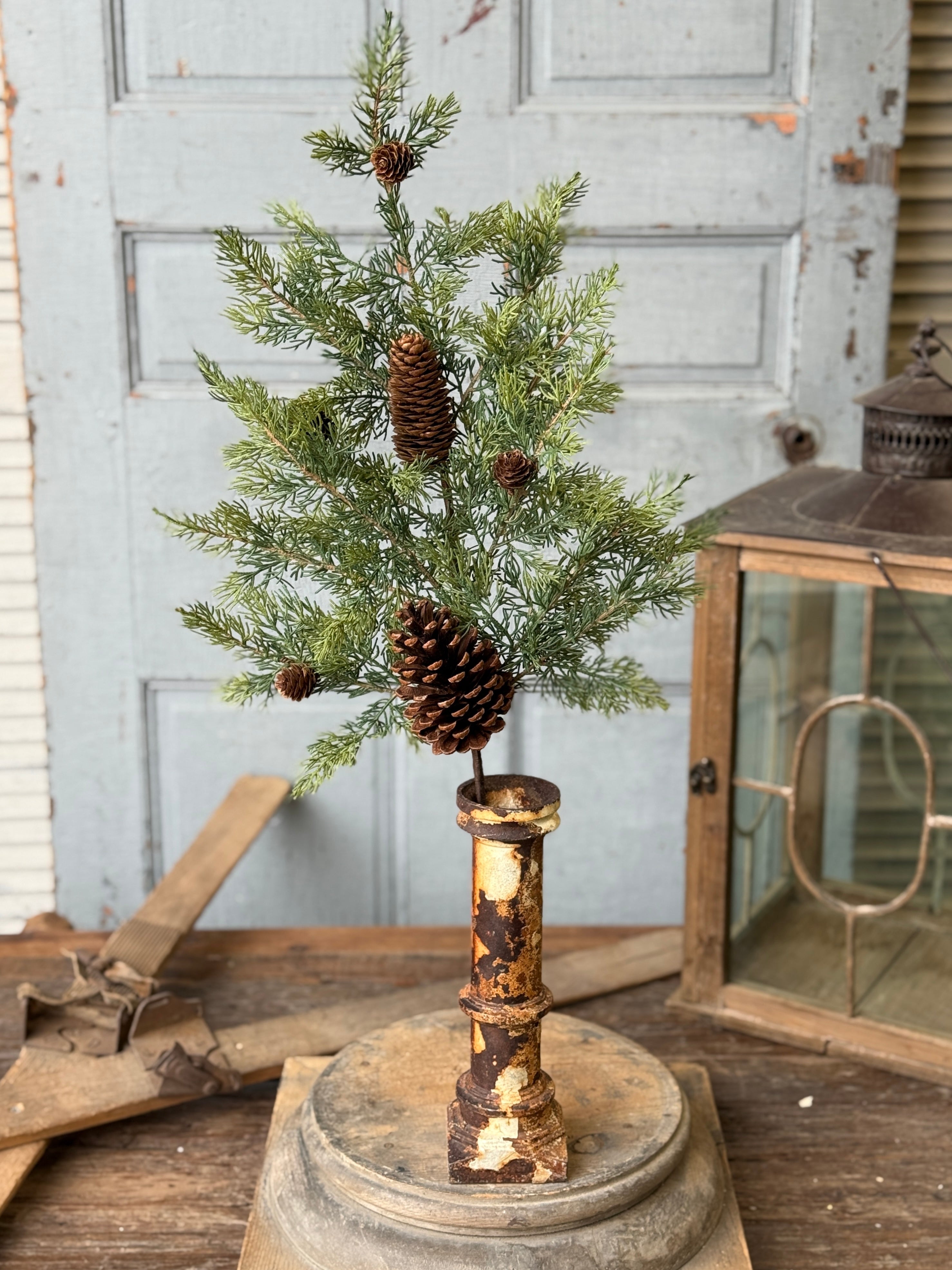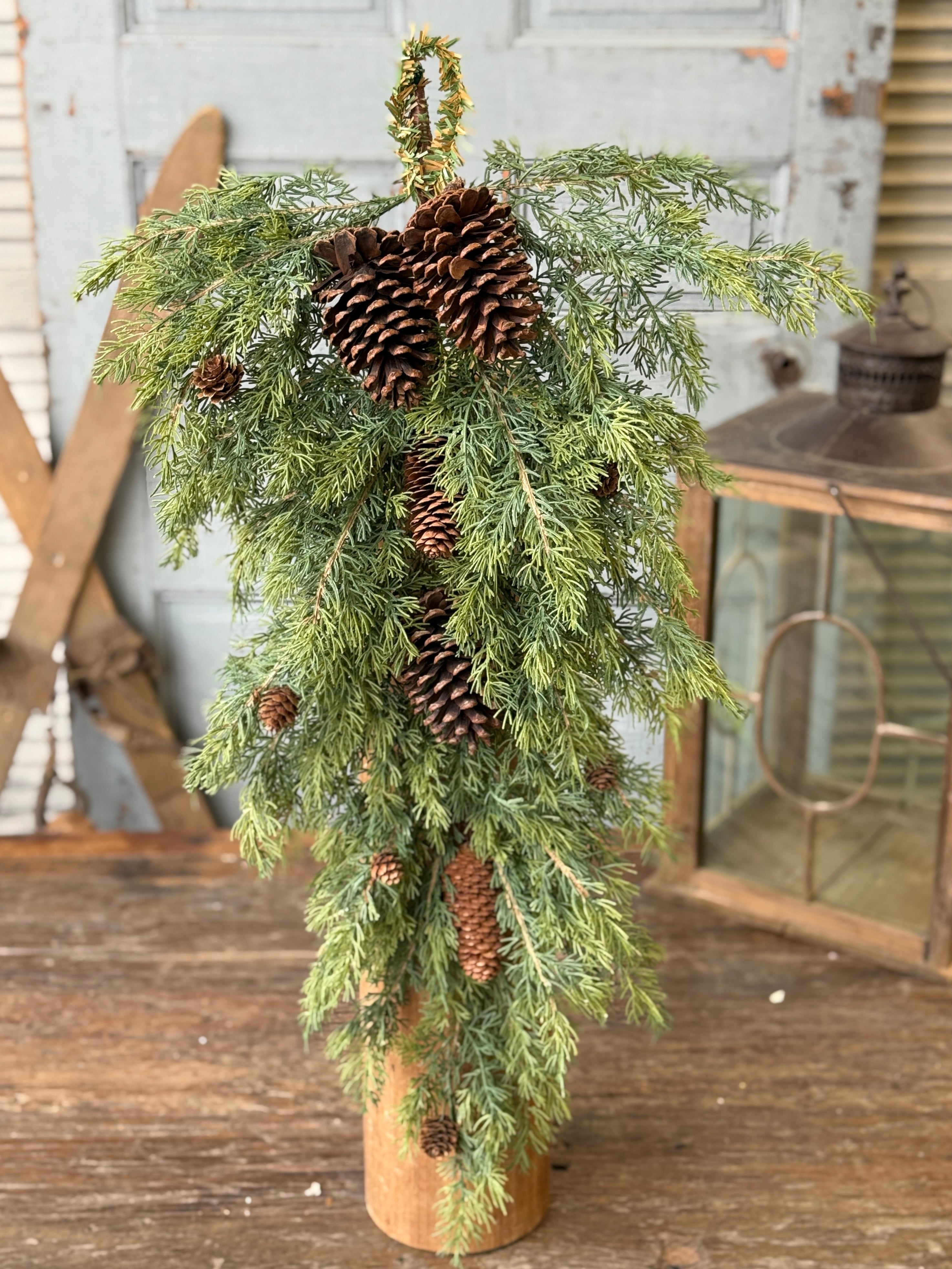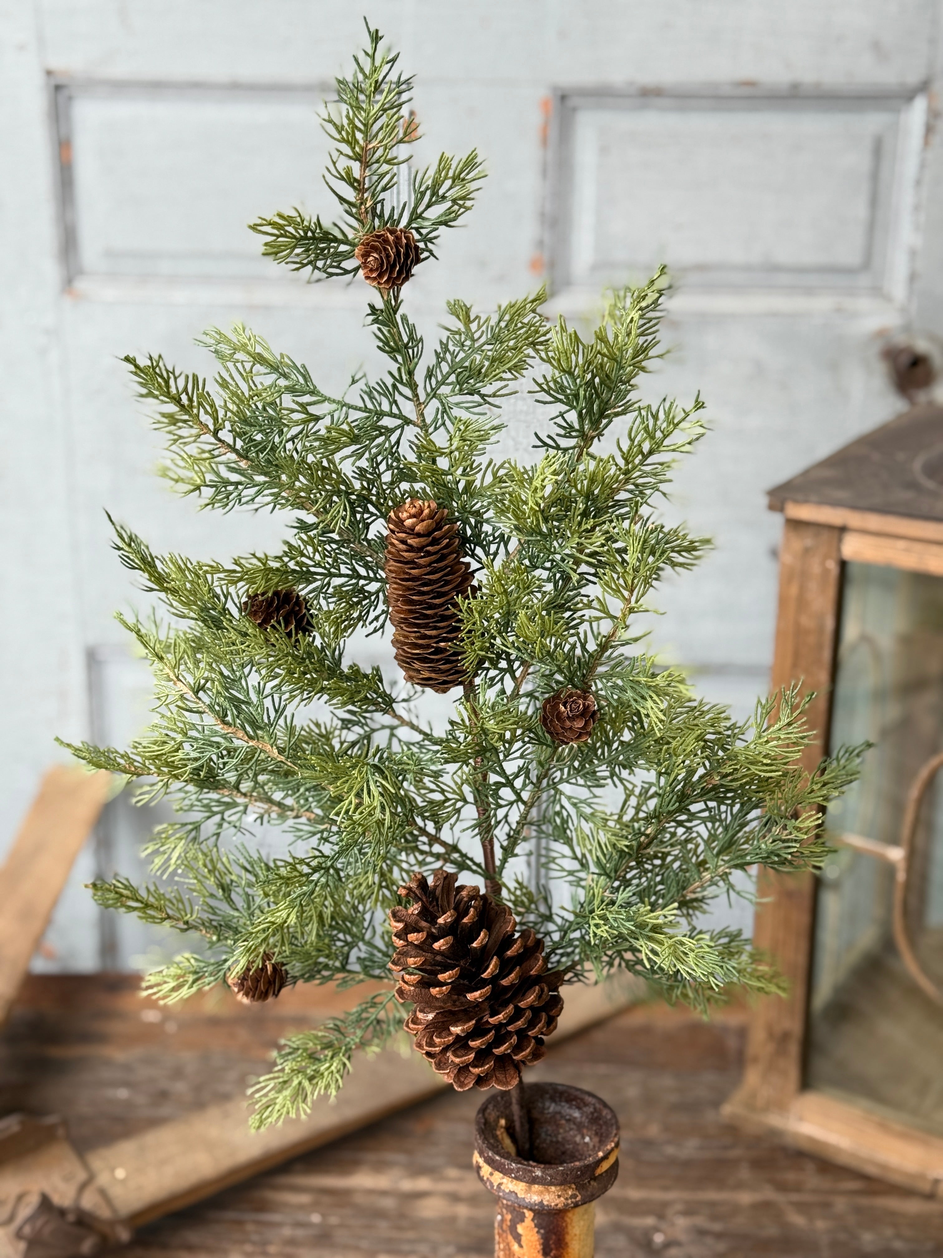 A beautiful and textural collection of greenery featuring broad leaved foliage and natural pine cones. Trees are available in three sizes, each sold separately.