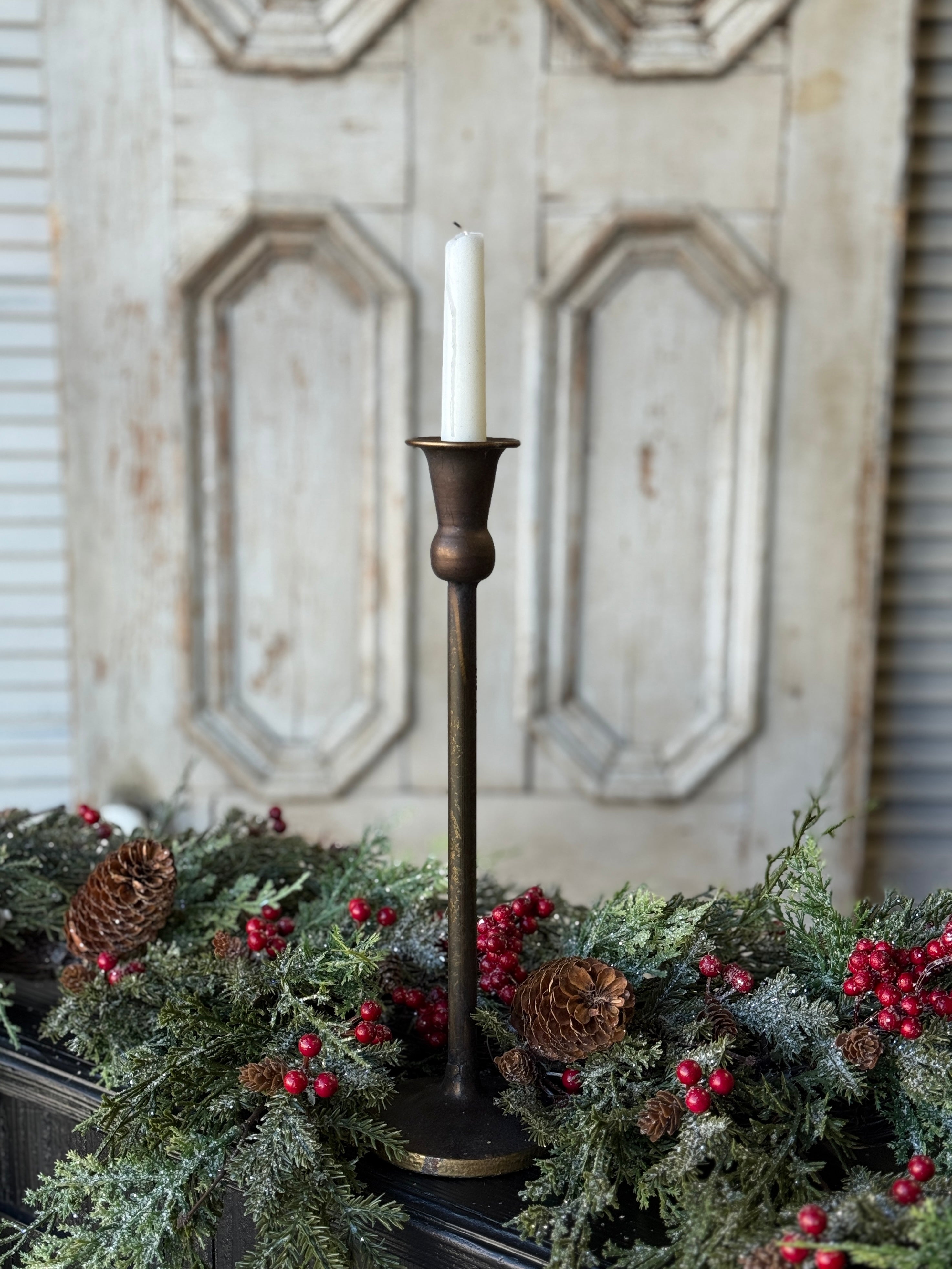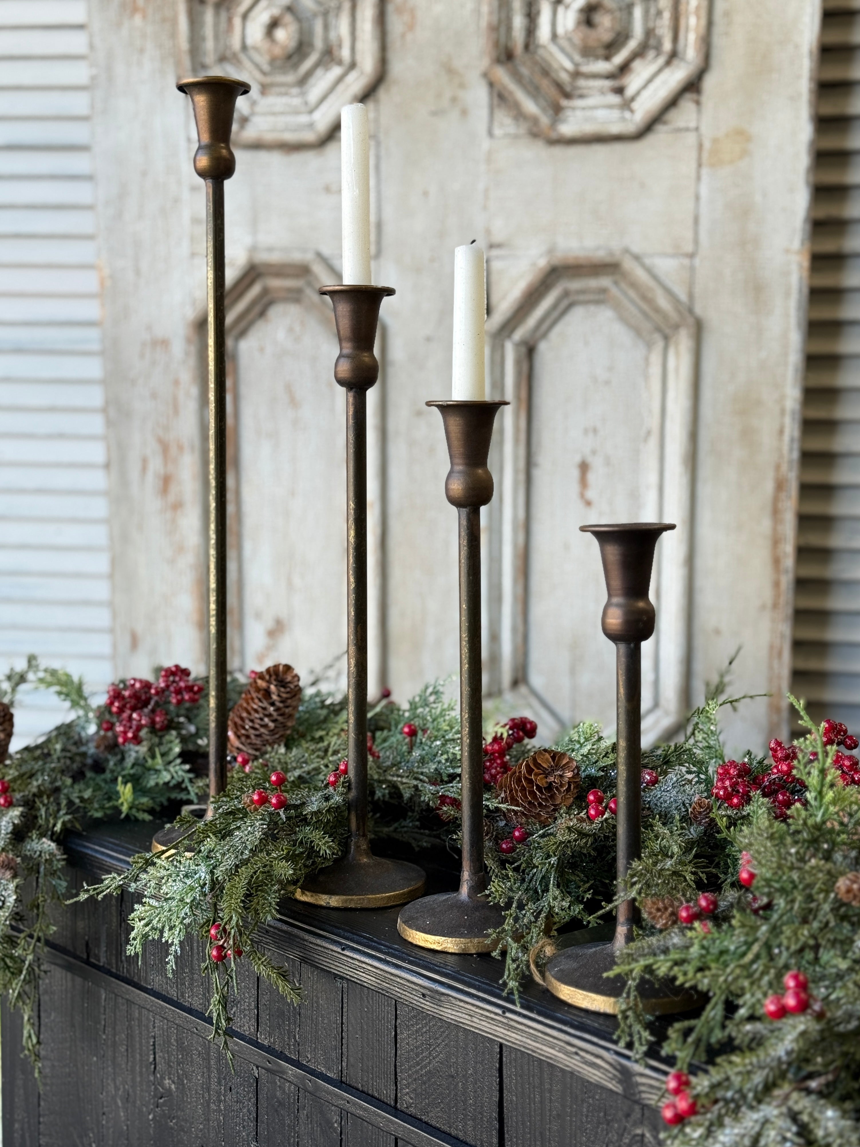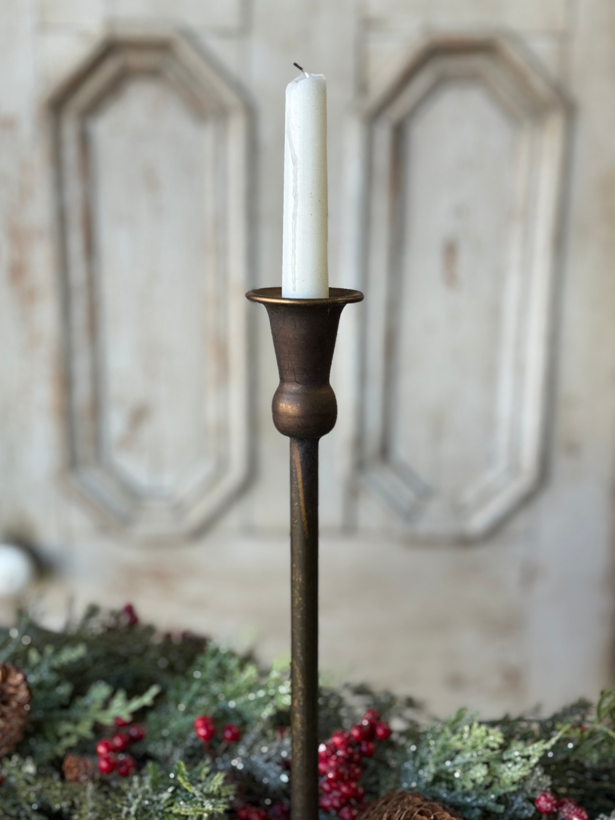 Slender taper holders in a lovely antique brass finish add an elegant feel to any space or season! Available in four sizes, each sold separately.