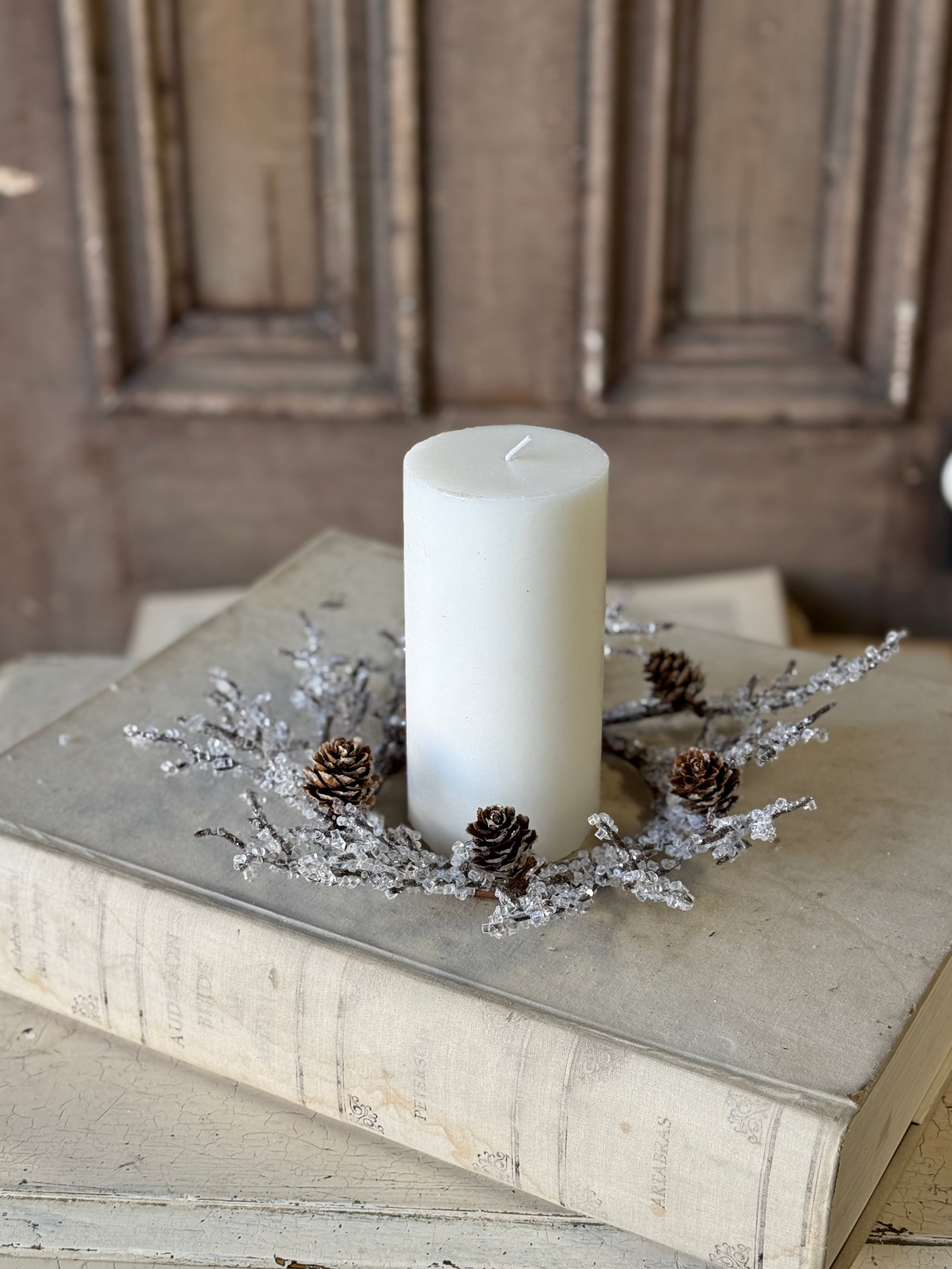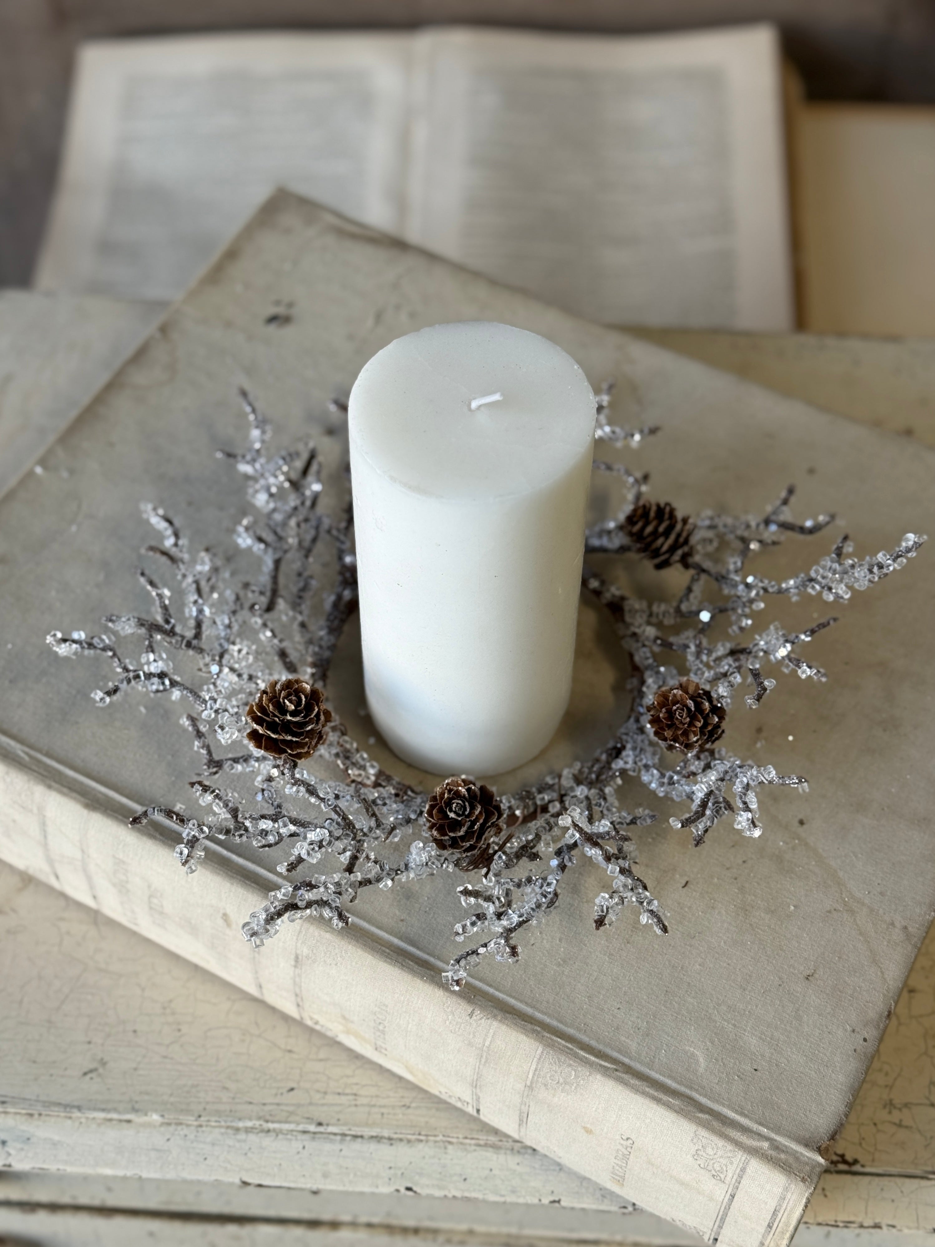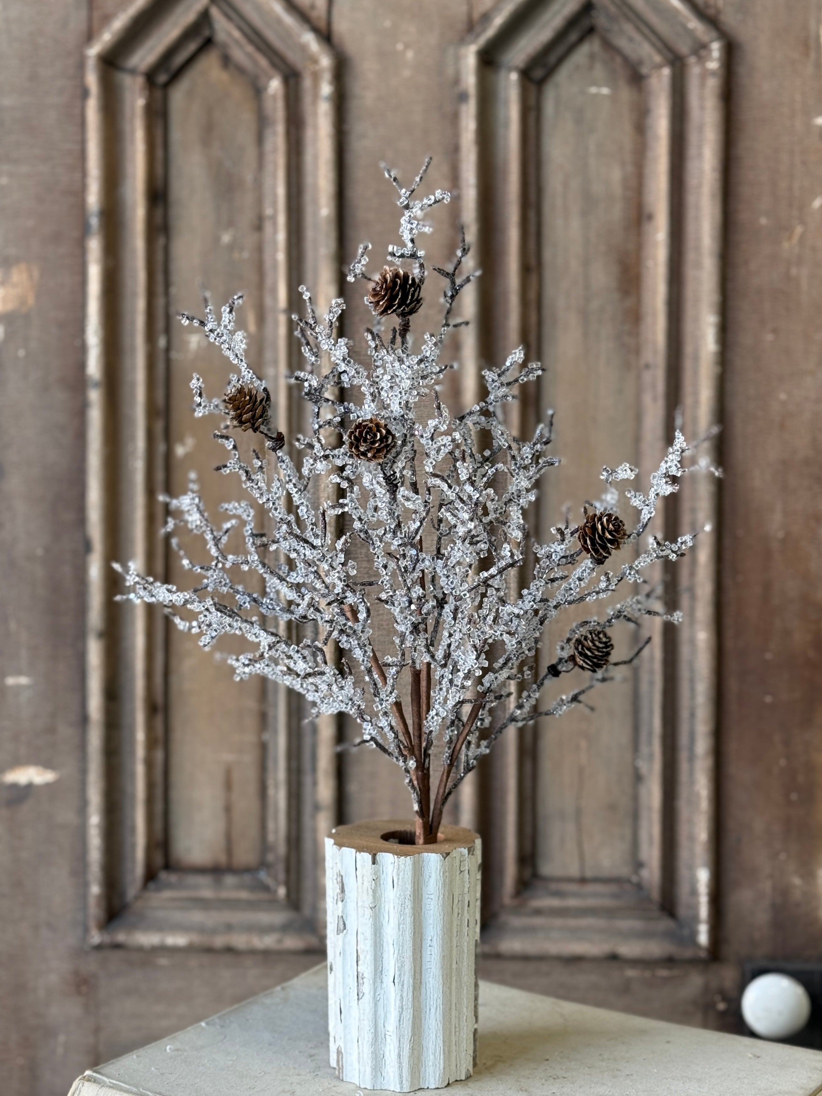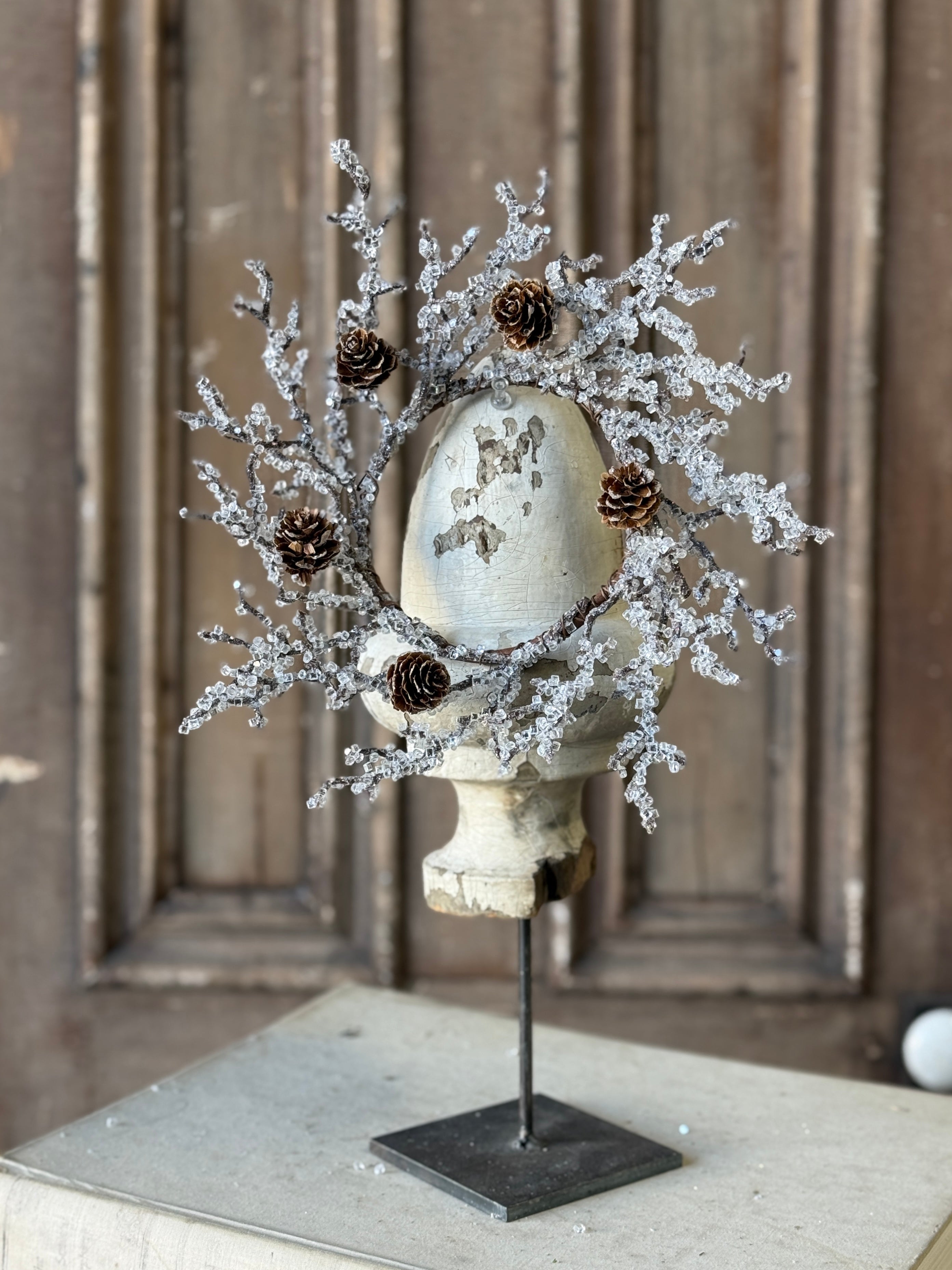 Barren branches woven with ice crystals and laced with small pine cones composes a collection that makes you appreciate the beauty that winter offers.